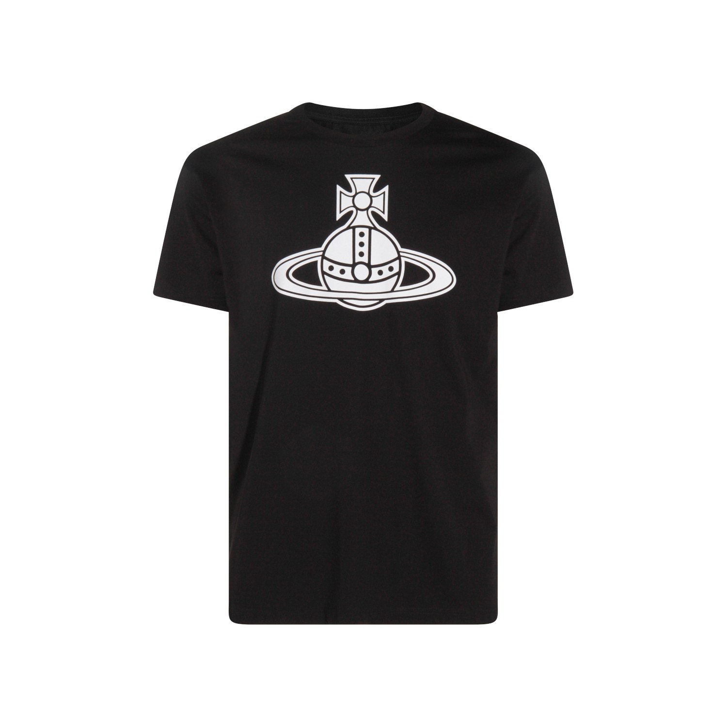 Black cotton t-shirt from Vivienne Westwood featuring round collar, short sleeves, frontal Orb print and regular vestibility.