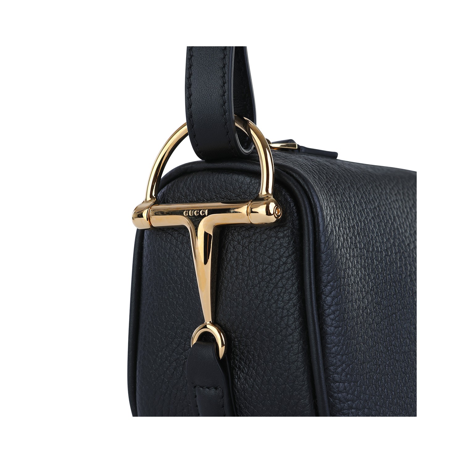 Black leather mini bag from Gucci featuring top adjustable handle, main compartment, zip fastening and gold tone hardware.