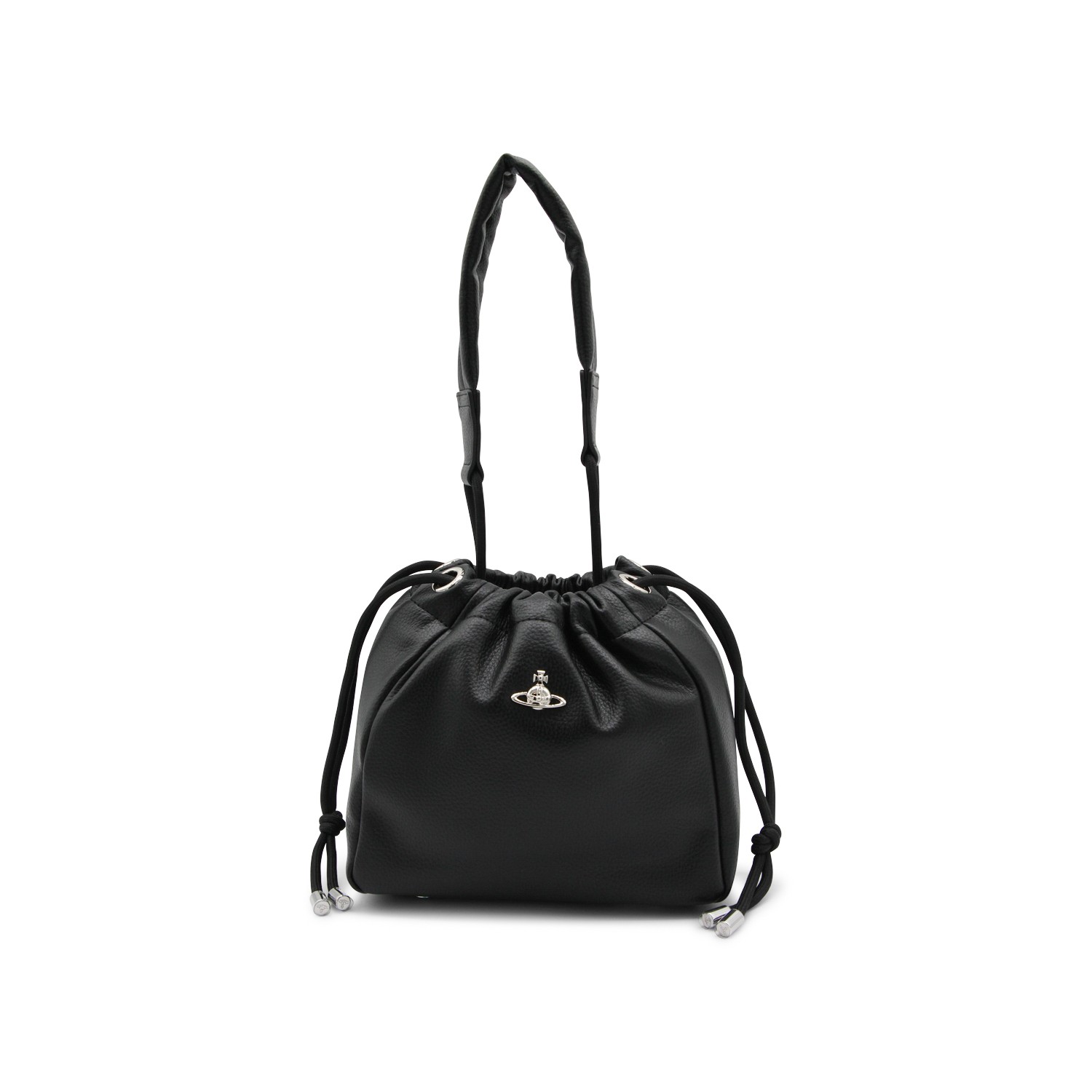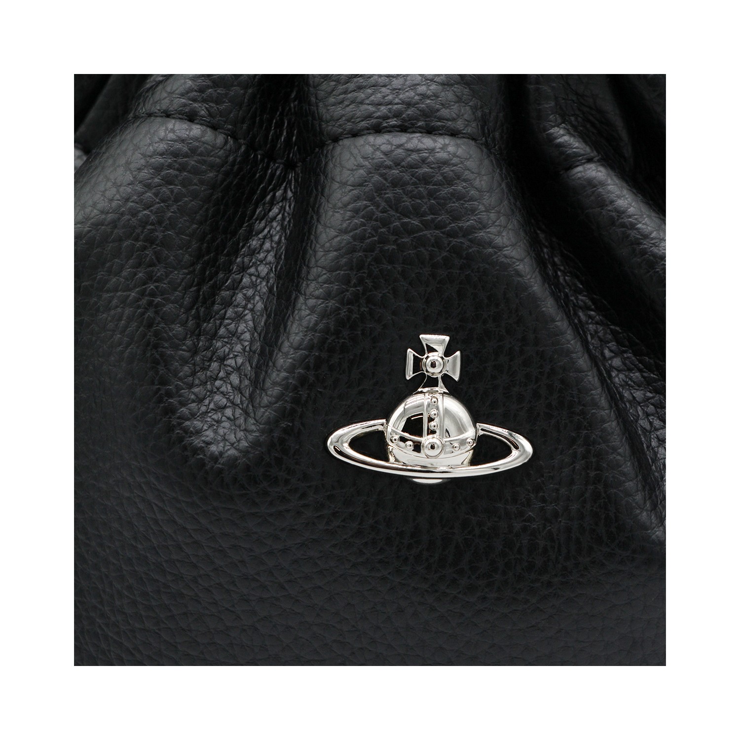 Black satchel from Vivienne Westwood featuring top handle, lace fastening, main compartment and frontal silver tone logo.