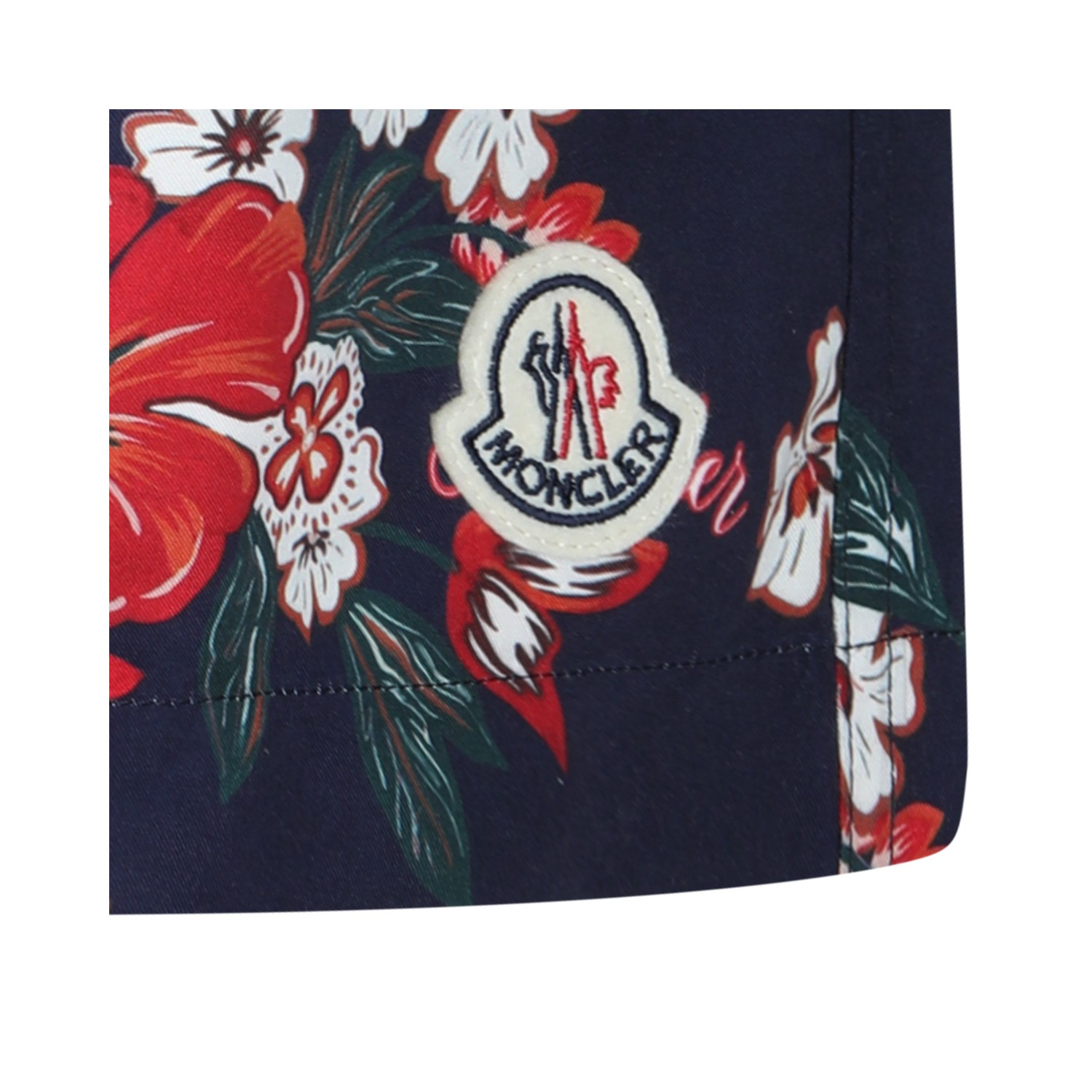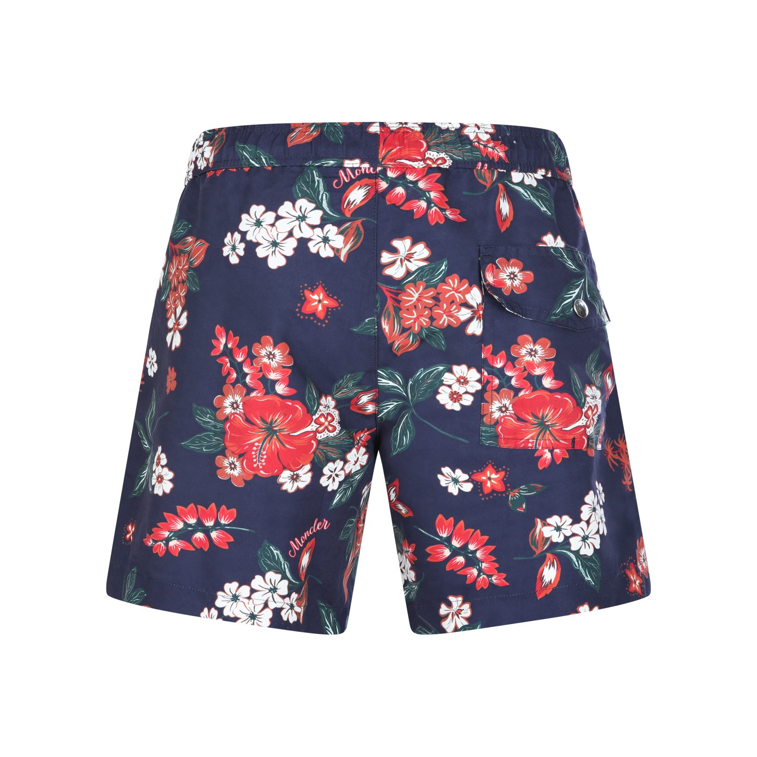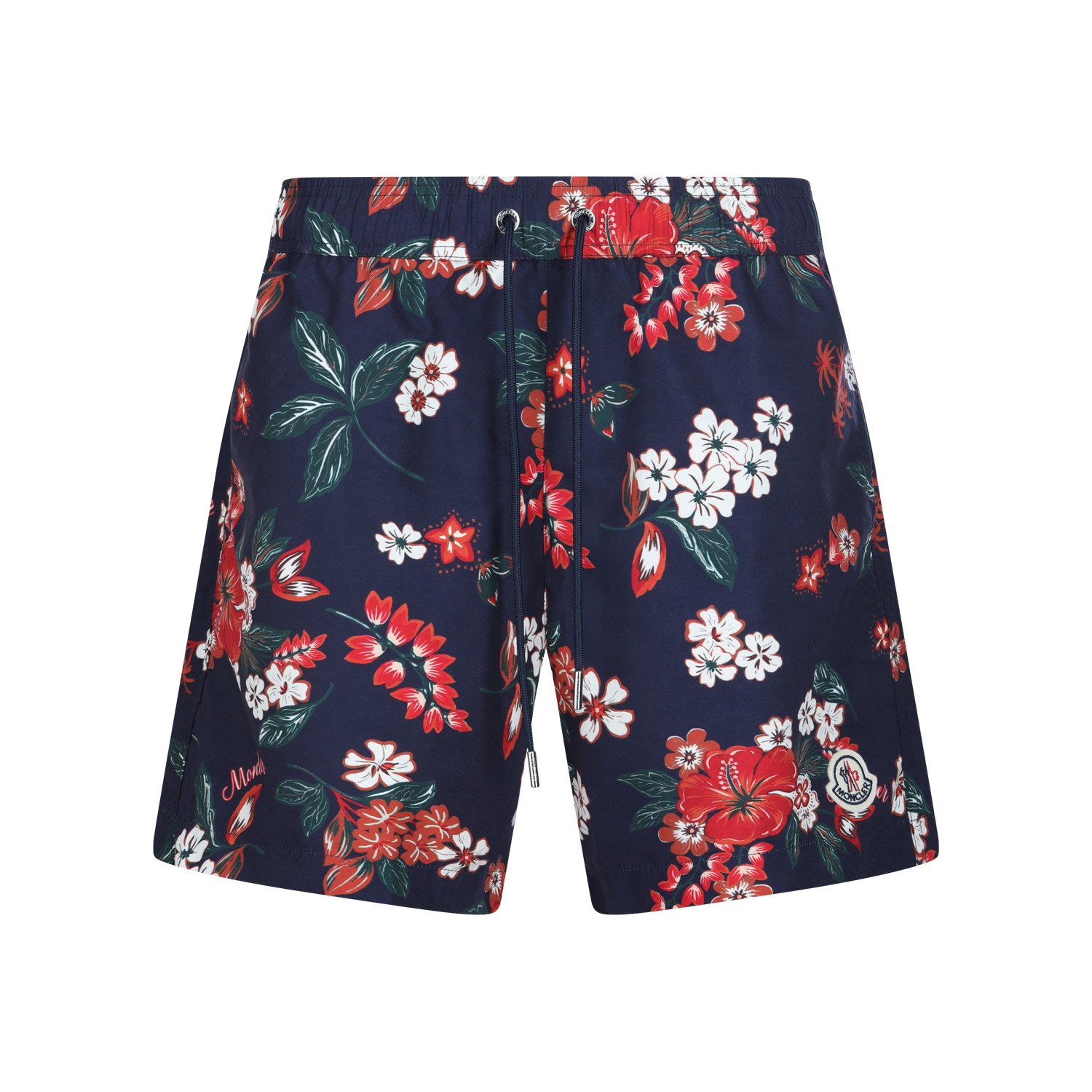 Navy beachwear from Moncler featuring elasticated waist, mid length and all over stamp.