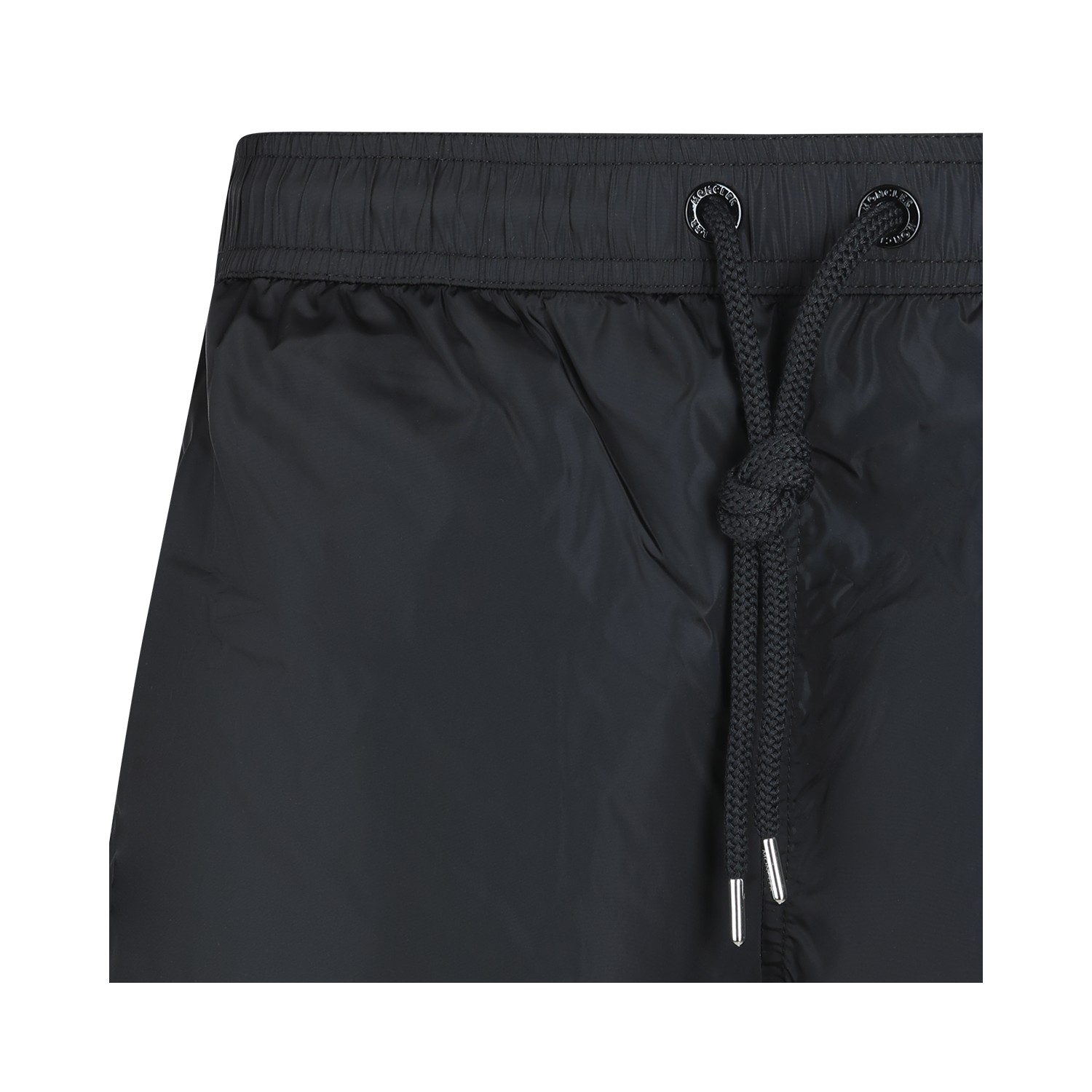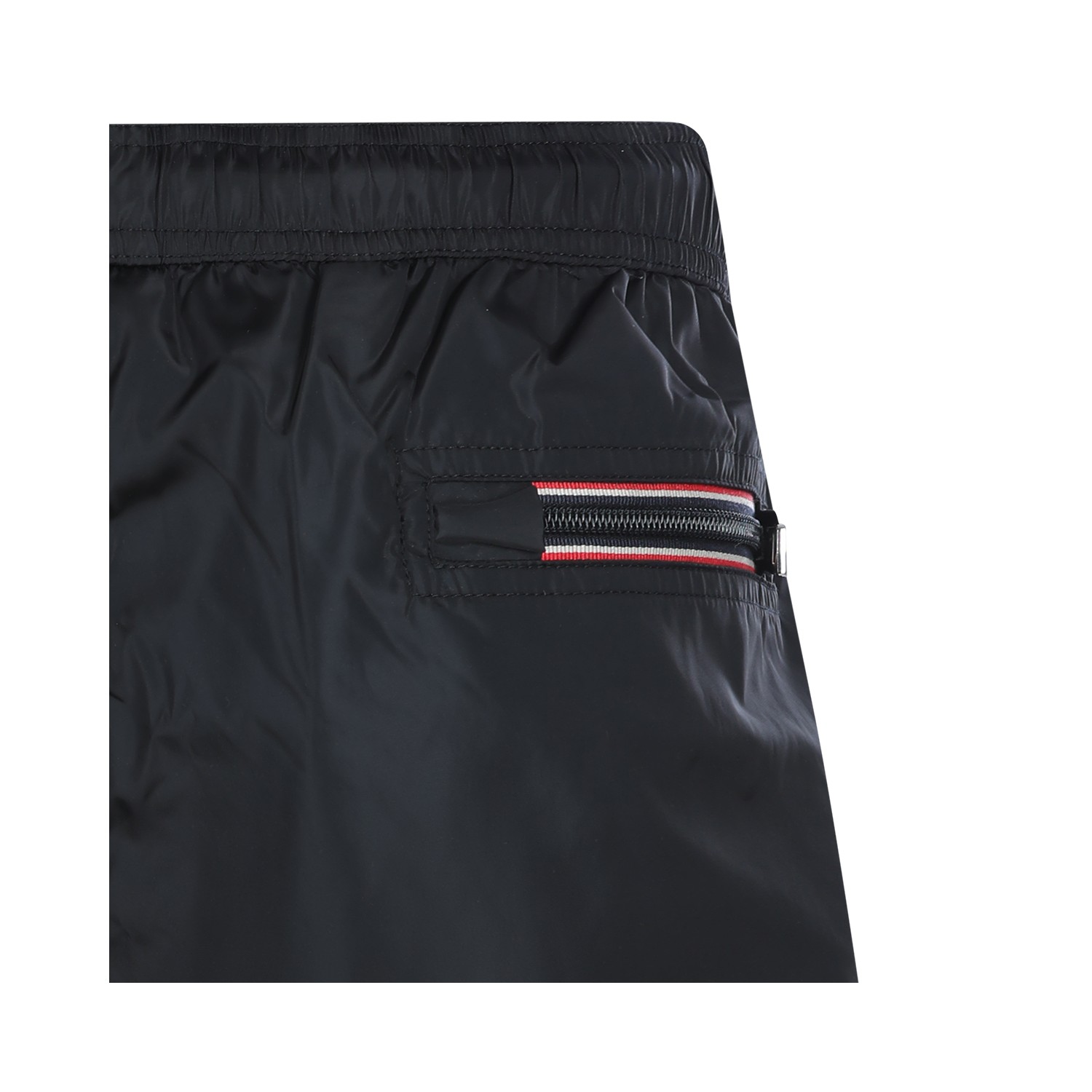 Black beachwear from Moncler featuring elasticatedwais, frontal patch, back pocket and regular vestibility.