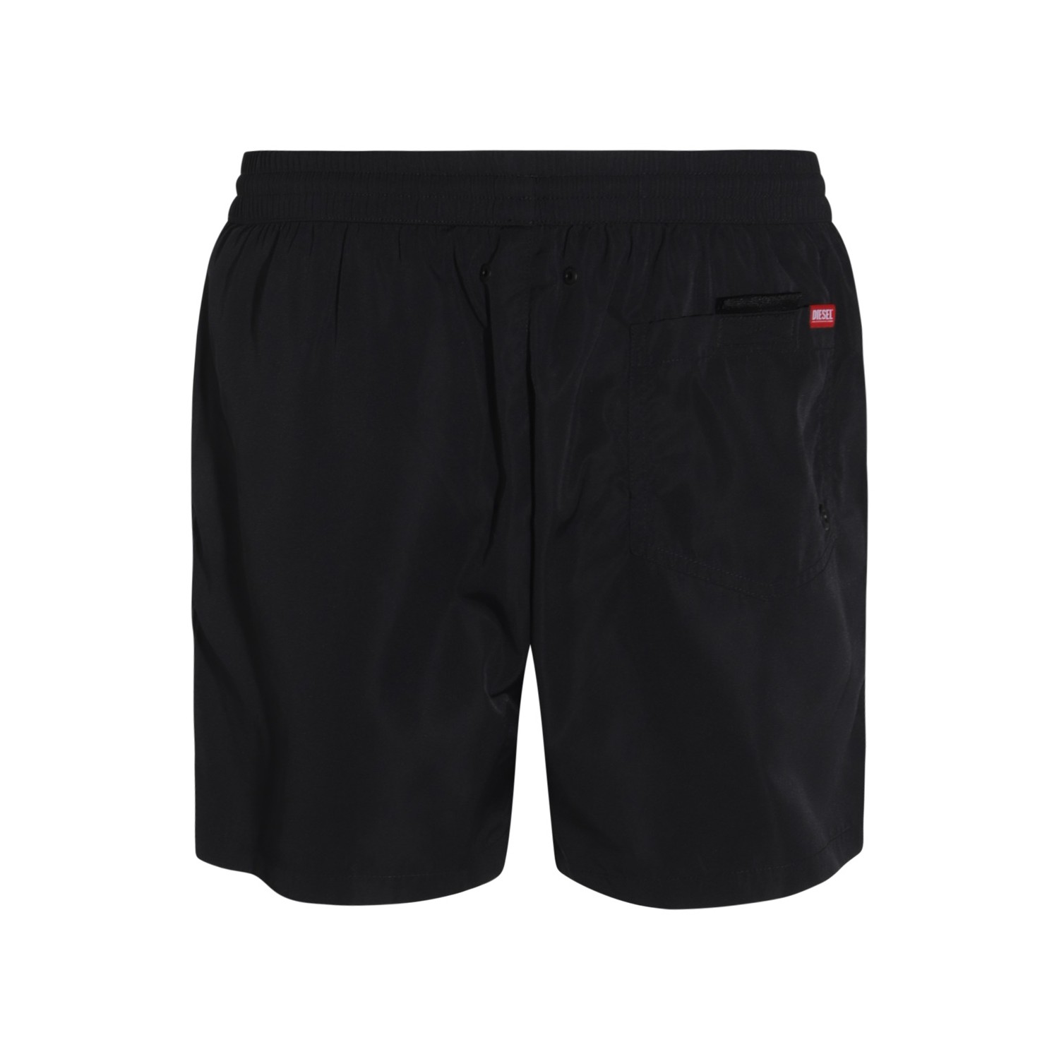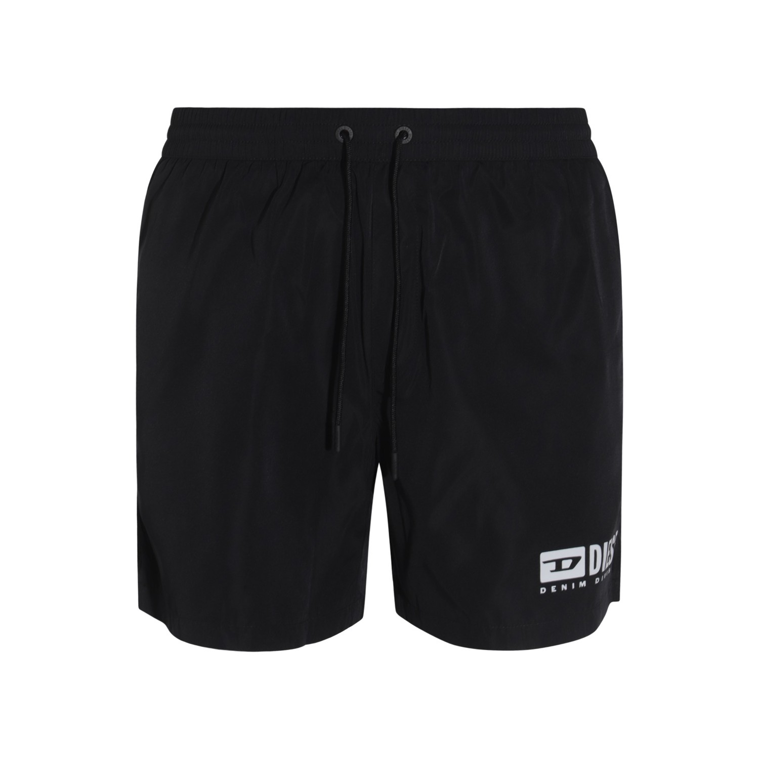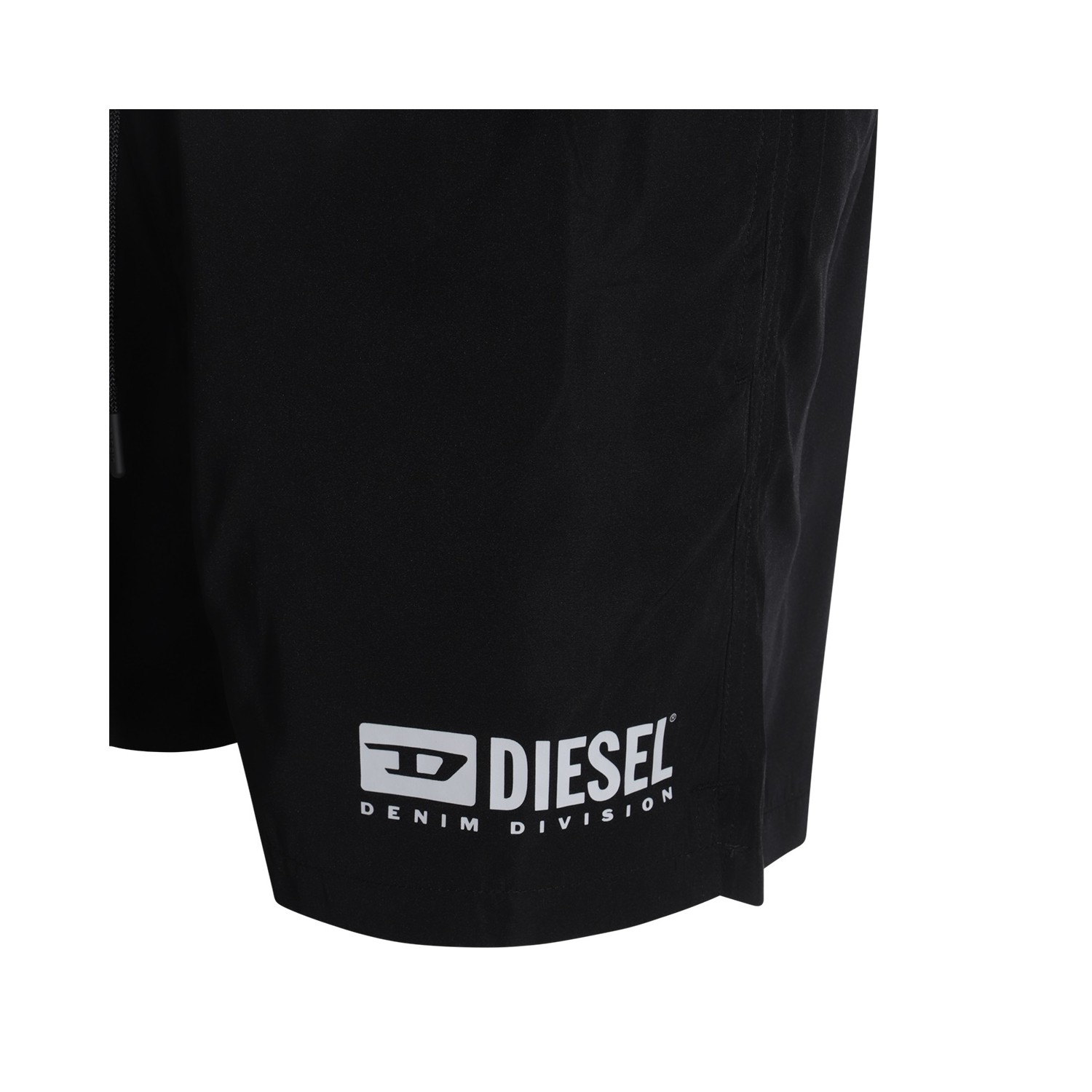 Black beachwear from Diesel featuring elasticated waistband with drawstring, logo print and regular fit.