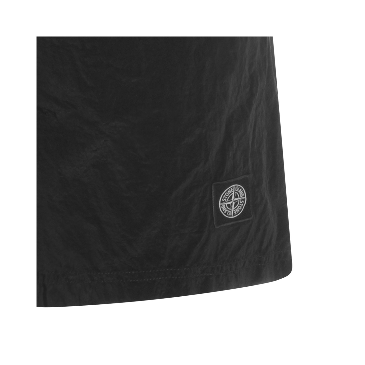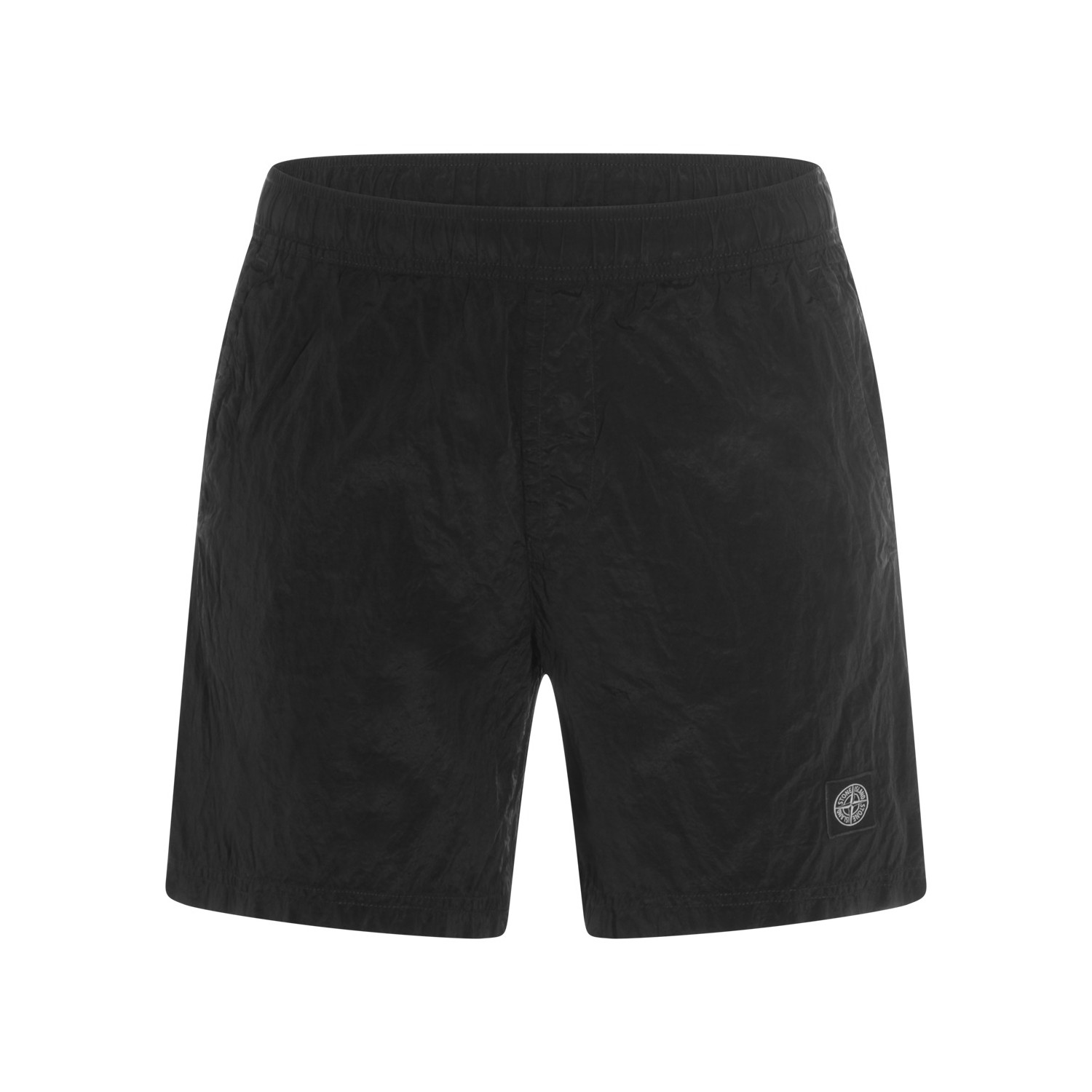 Black beachwear from Stone Island featuring elasticated waist, logo patch and regular fit.