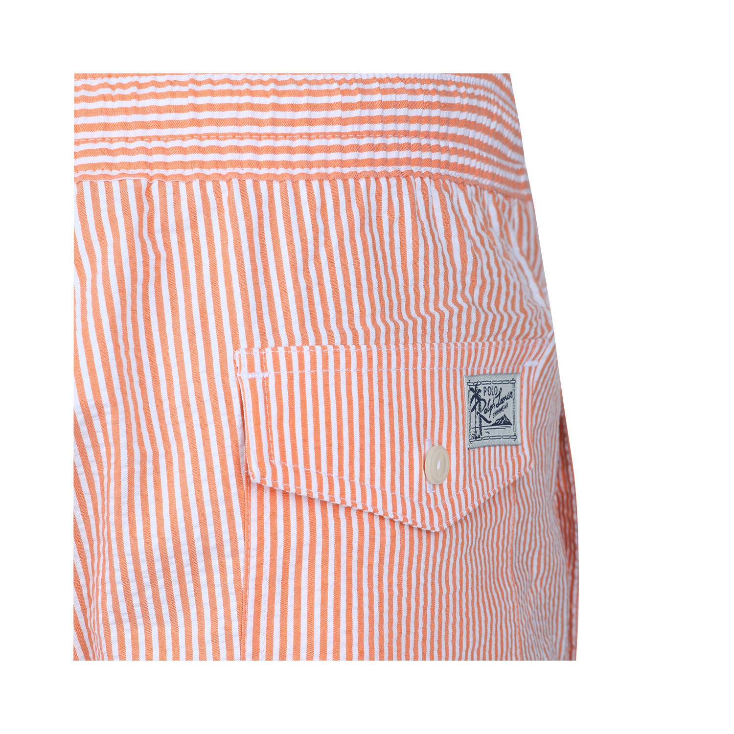Peach cotton beachwear from Polo Ralph Lauren featuring elasticated waist with drawstring, striped details and regular fit.