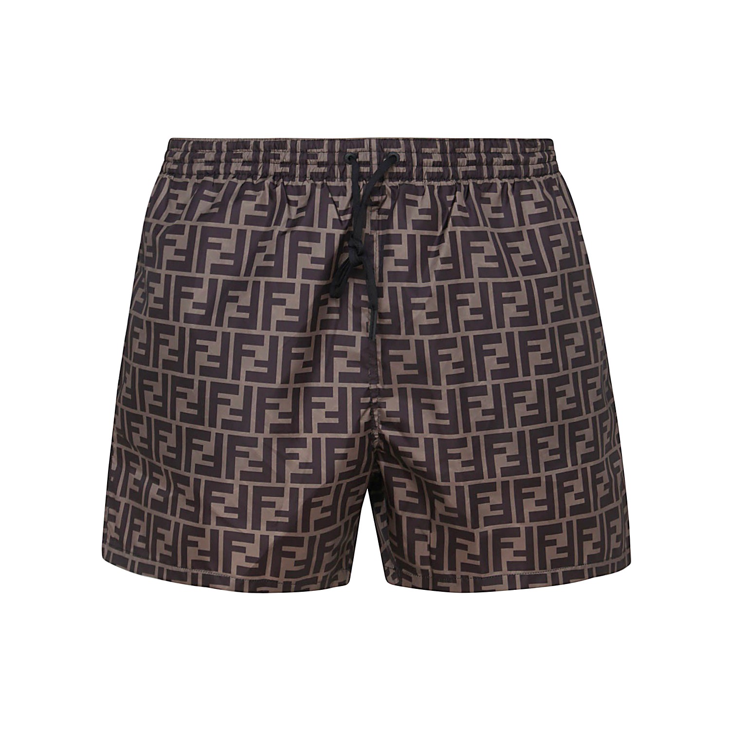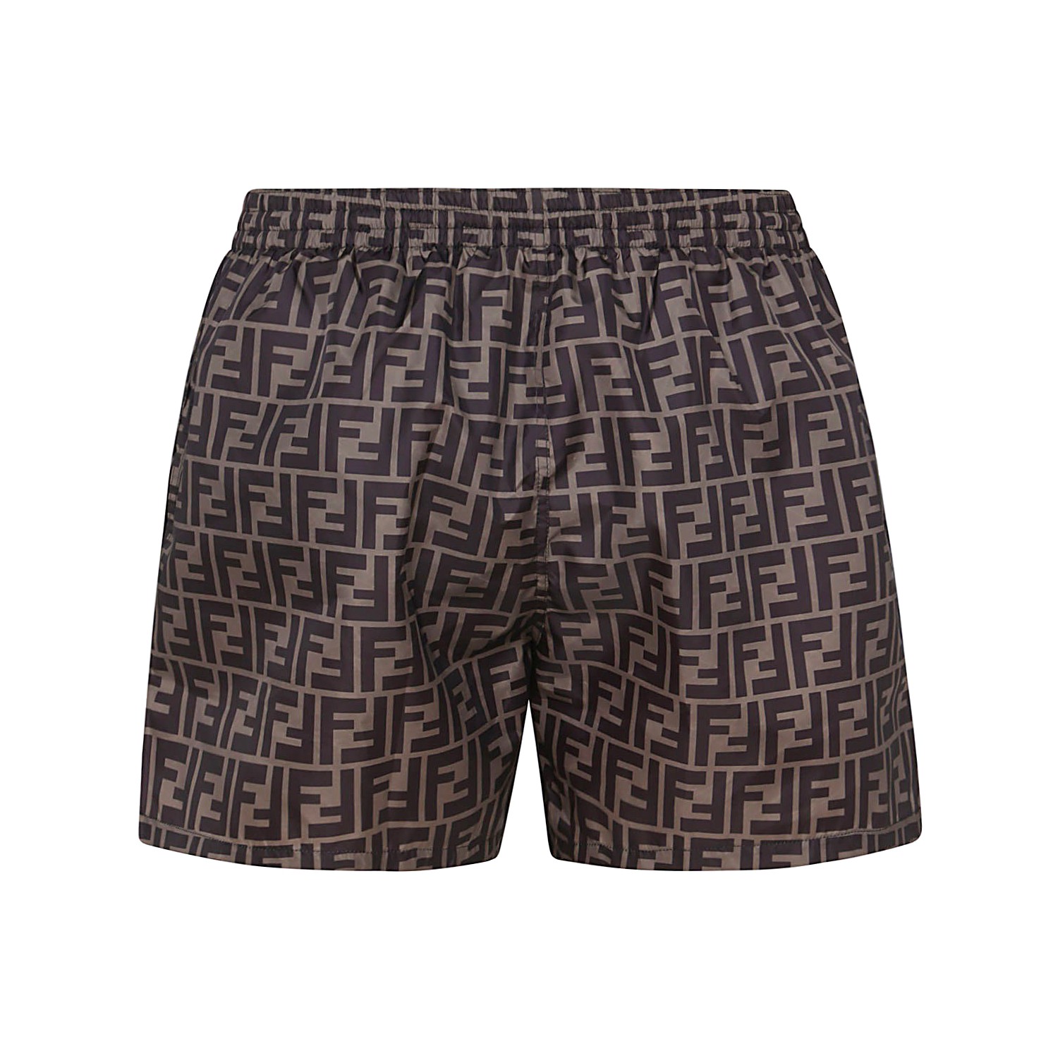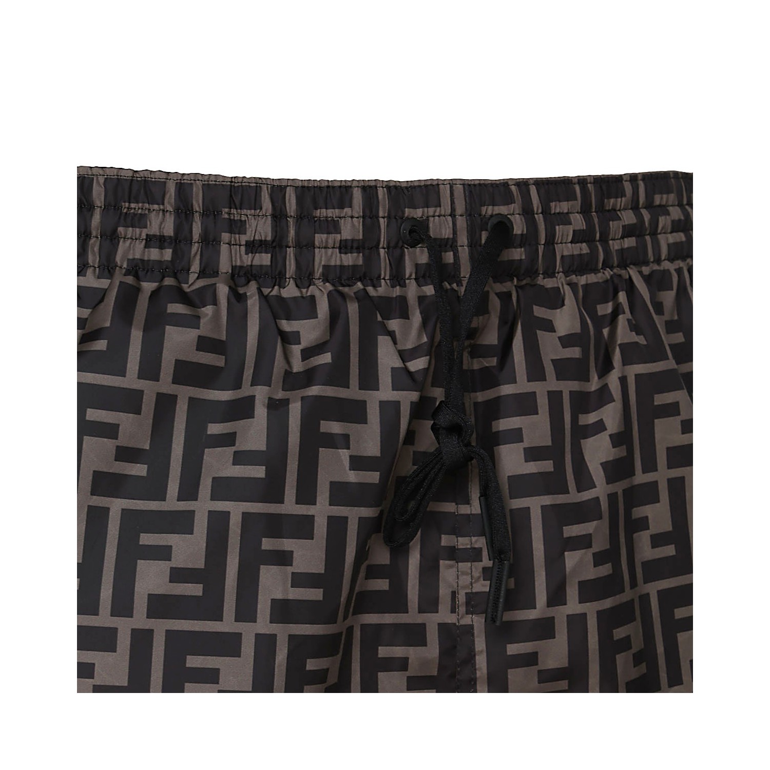 Tobacco beachwear from Fendi featuring elastic waist, mid length and all-over monogram.
