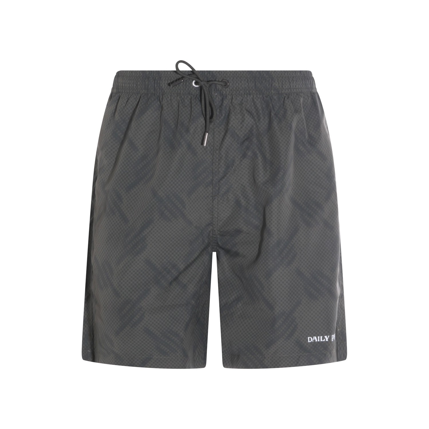 Grey beachwear from Daily Paper featuring elasticated waistand, drawstring, logo and regular fit.