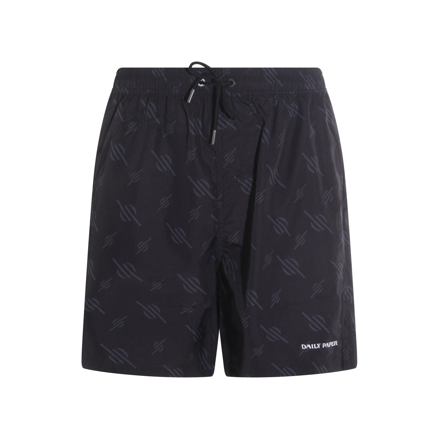 Black beachwear from Daily Paper featuring elasticated waistband, drawstring, logo and regular fit.