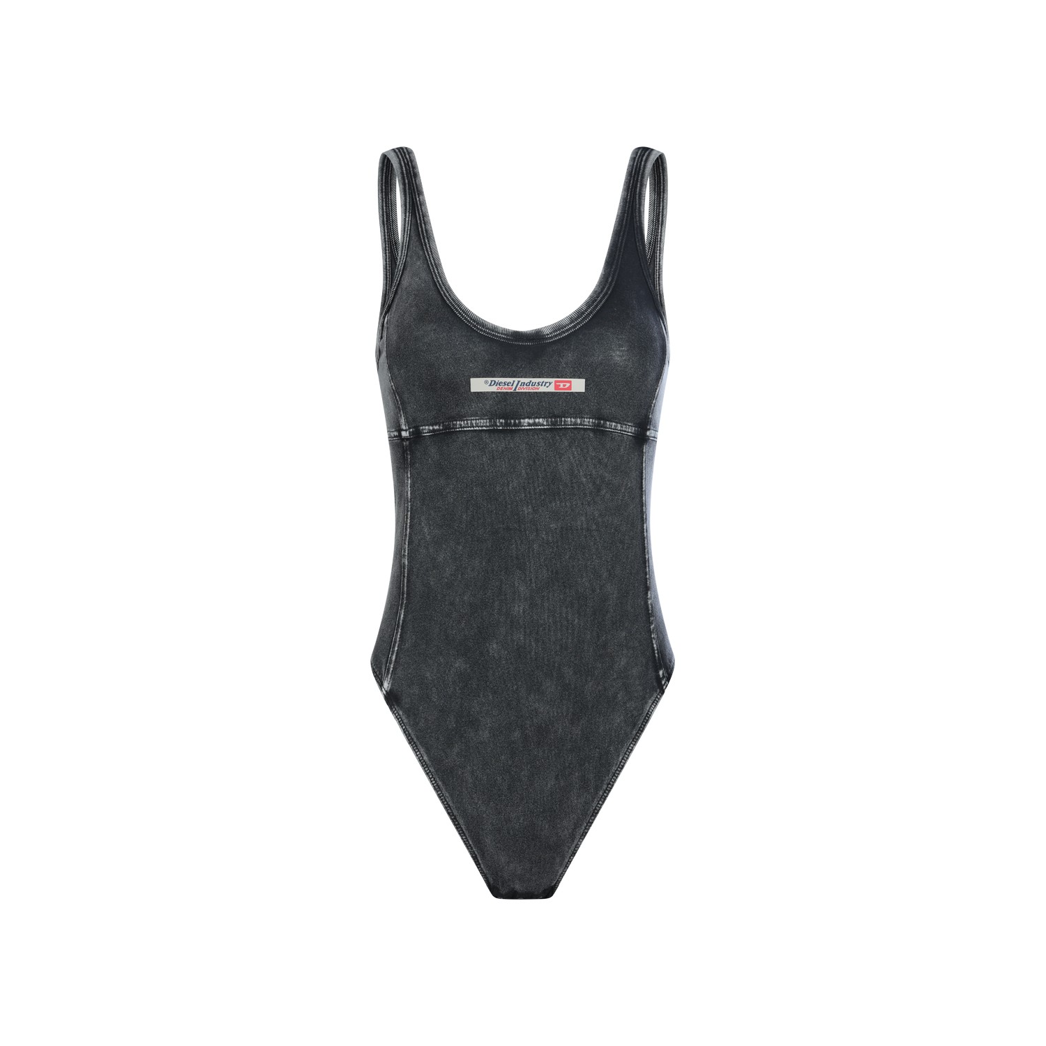 Black beachwear from Diesel featuring round neck, sleeveless and frontal logo.