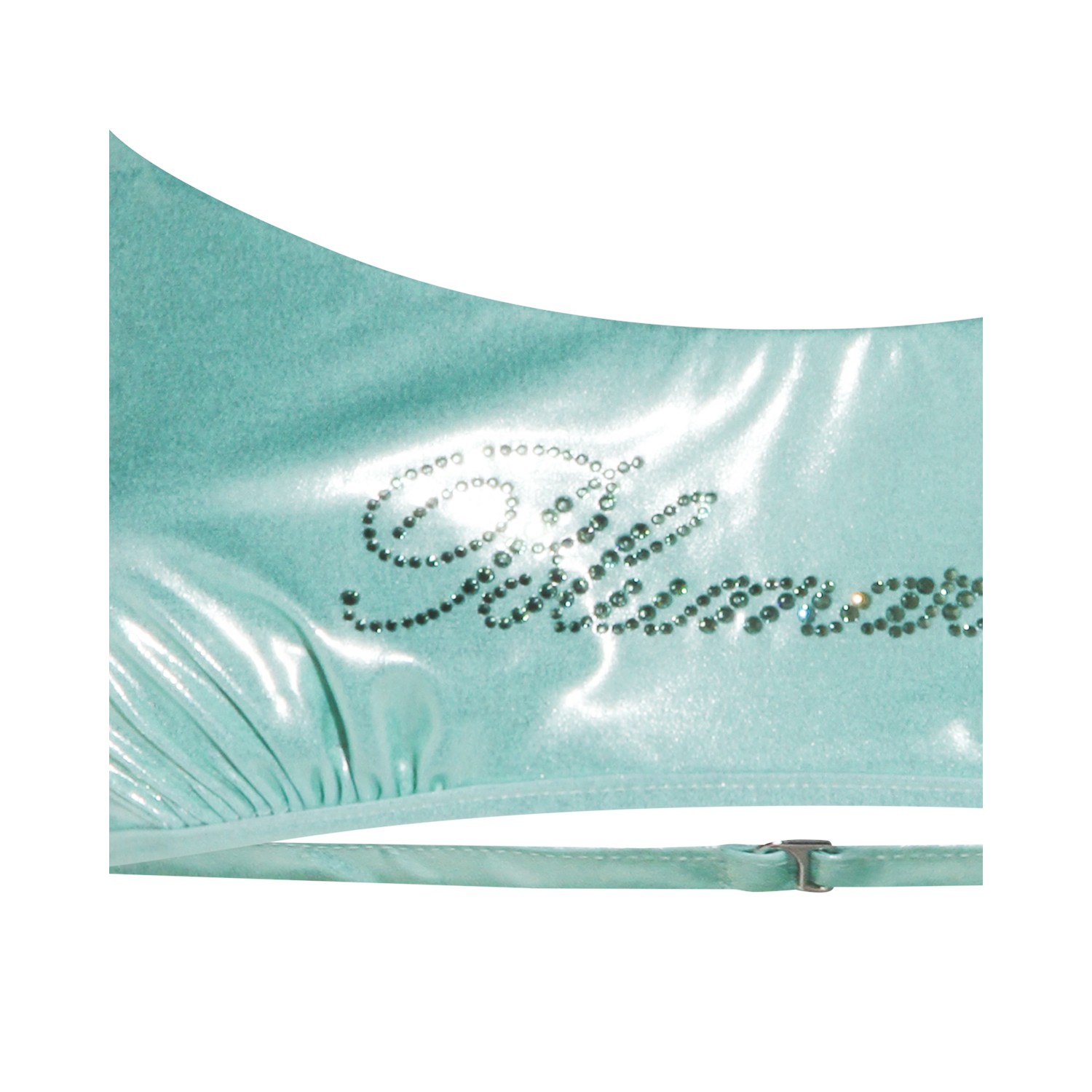 Green top beachwear from Blumarine featuring round neckline, adjustable straps, back fastening and stitched logo.