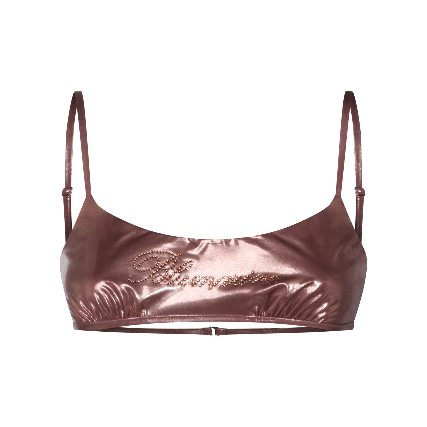 Brown top beachwear from Blumarine featuring round neckline, adjustable straps, back fastening and stitched logo.