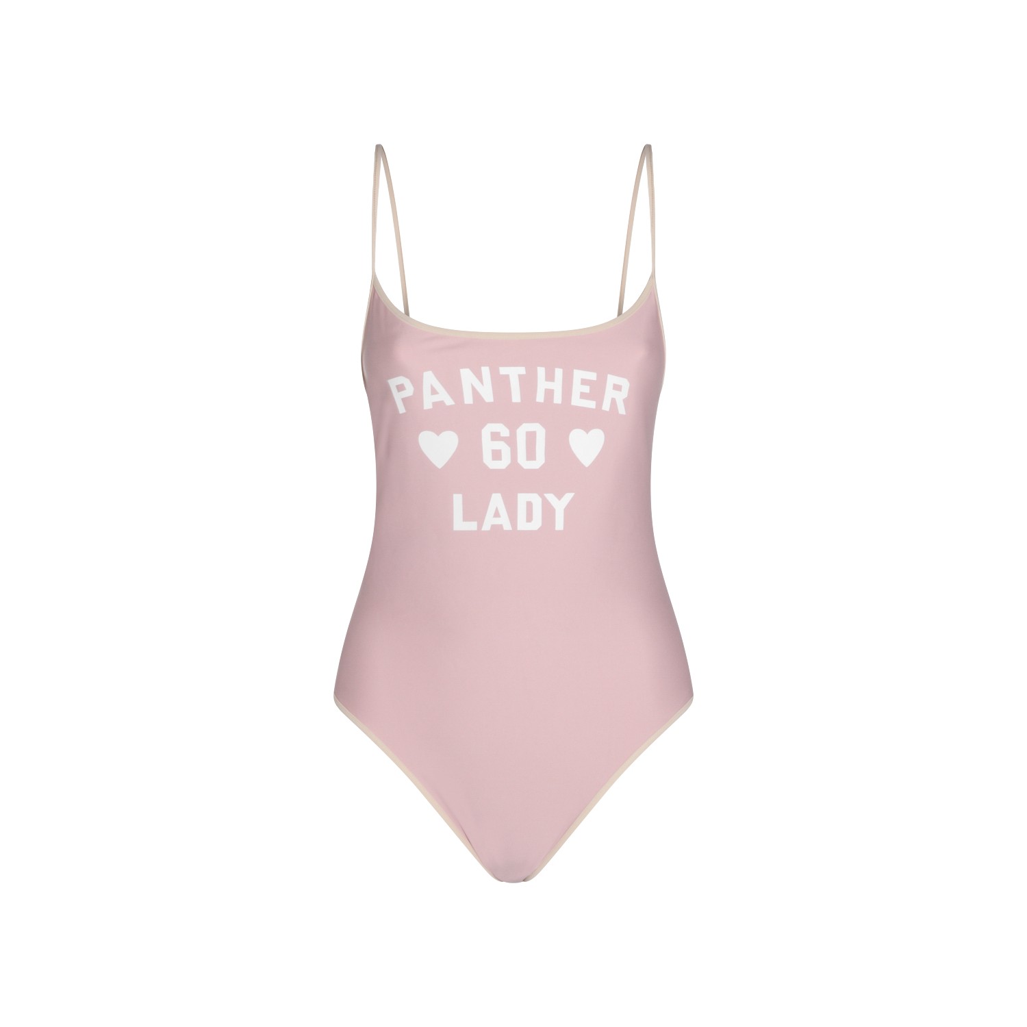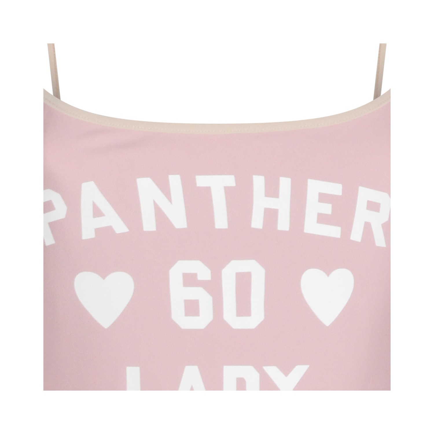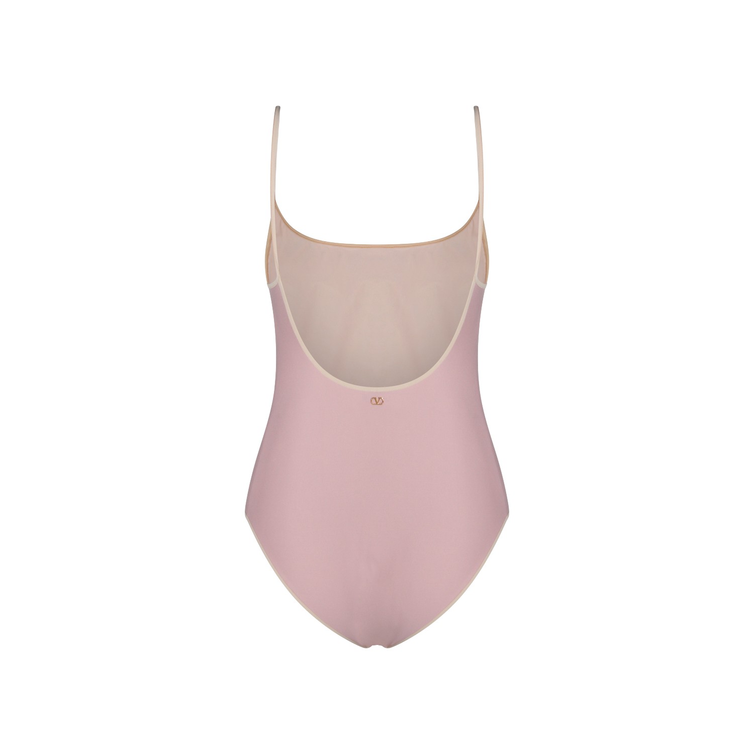 Pink swimsuit from Valentino featuring round deep collar, thin straps and elasticated fit.