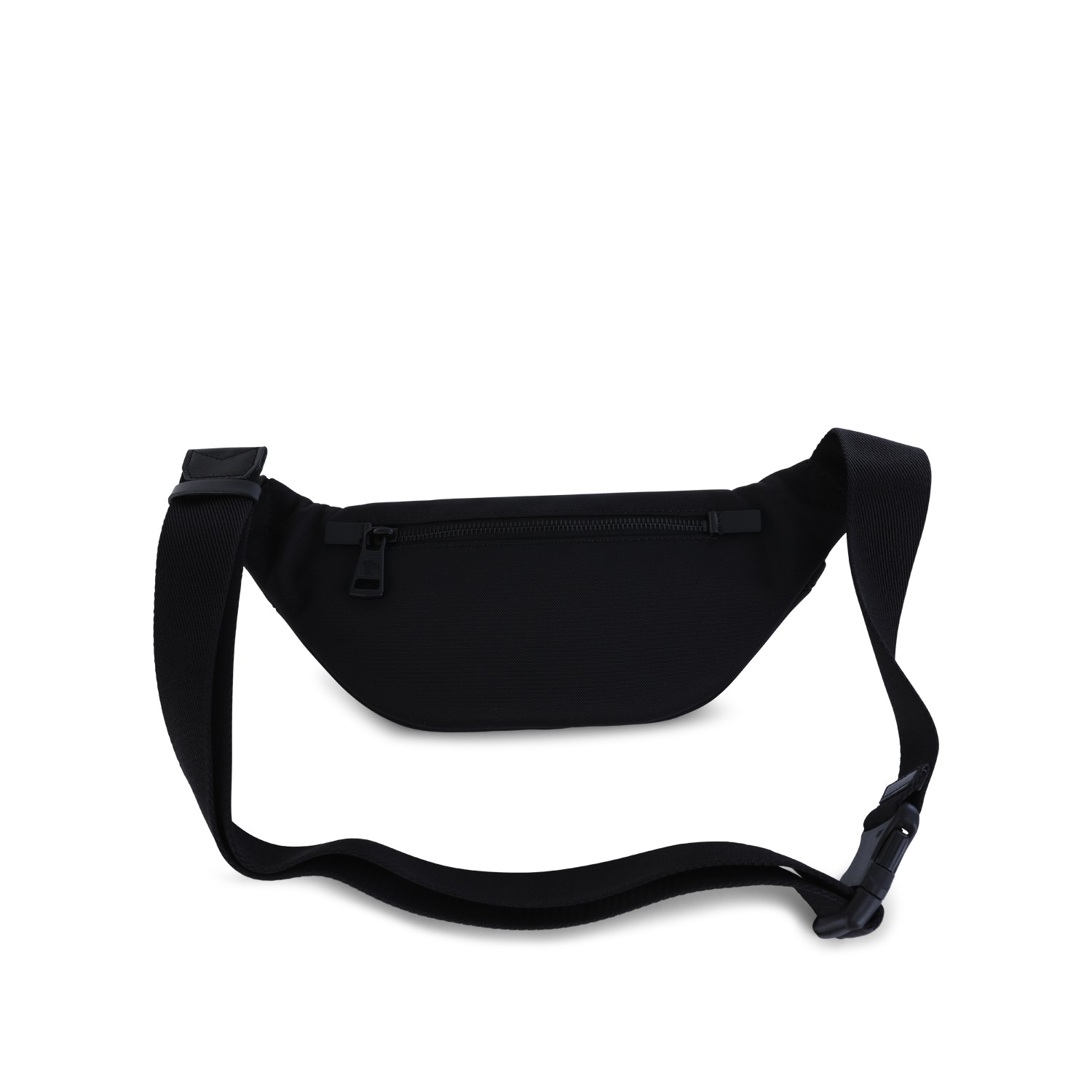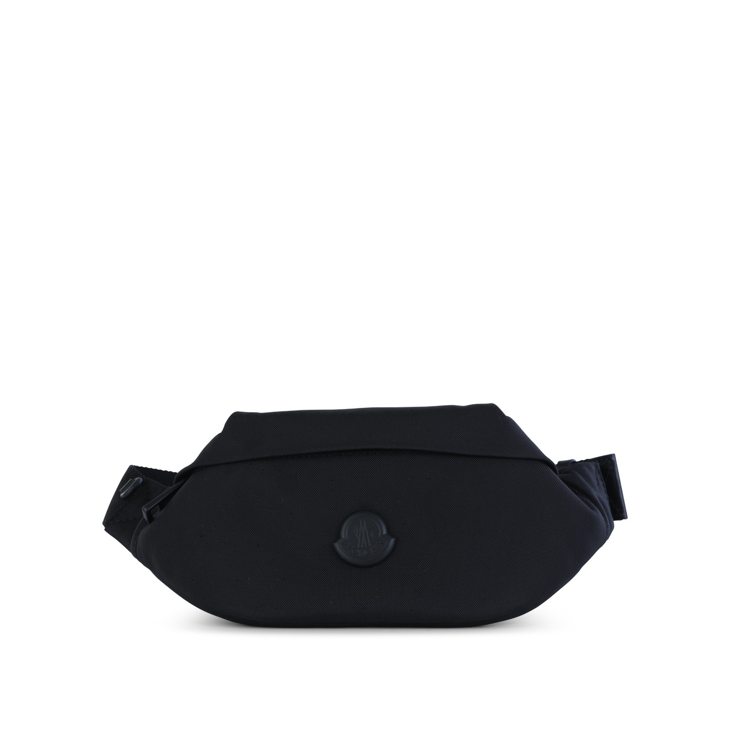 Black cotton belt bag from Moncler featuring adjustable size, zip fastening, main compartment and frontal logo.