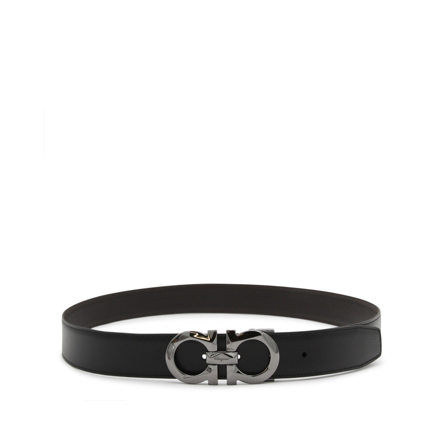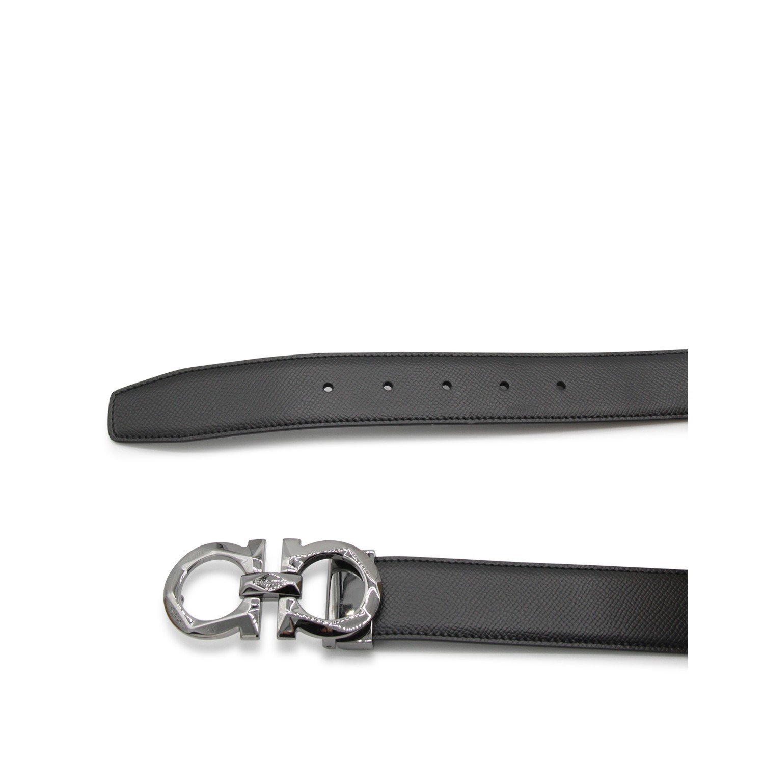 Black leather belt from Ferragamo featuring frontal silver tone hardware, regular vestibility and holes.