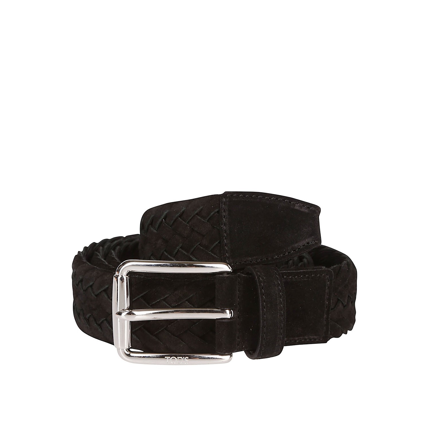 Black suede belt from Tod's featuring a woven design, adjustable fit and silver-tone buckle fastening.