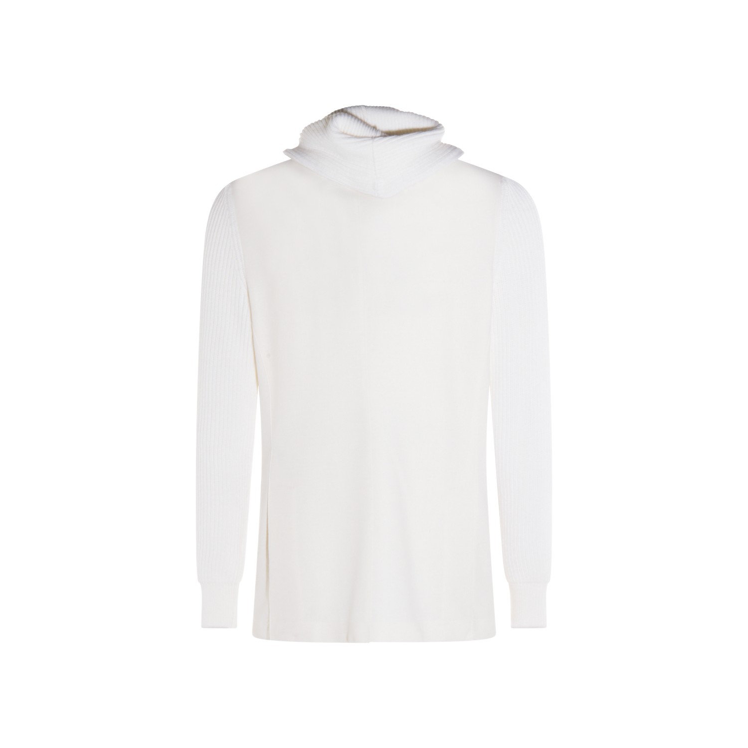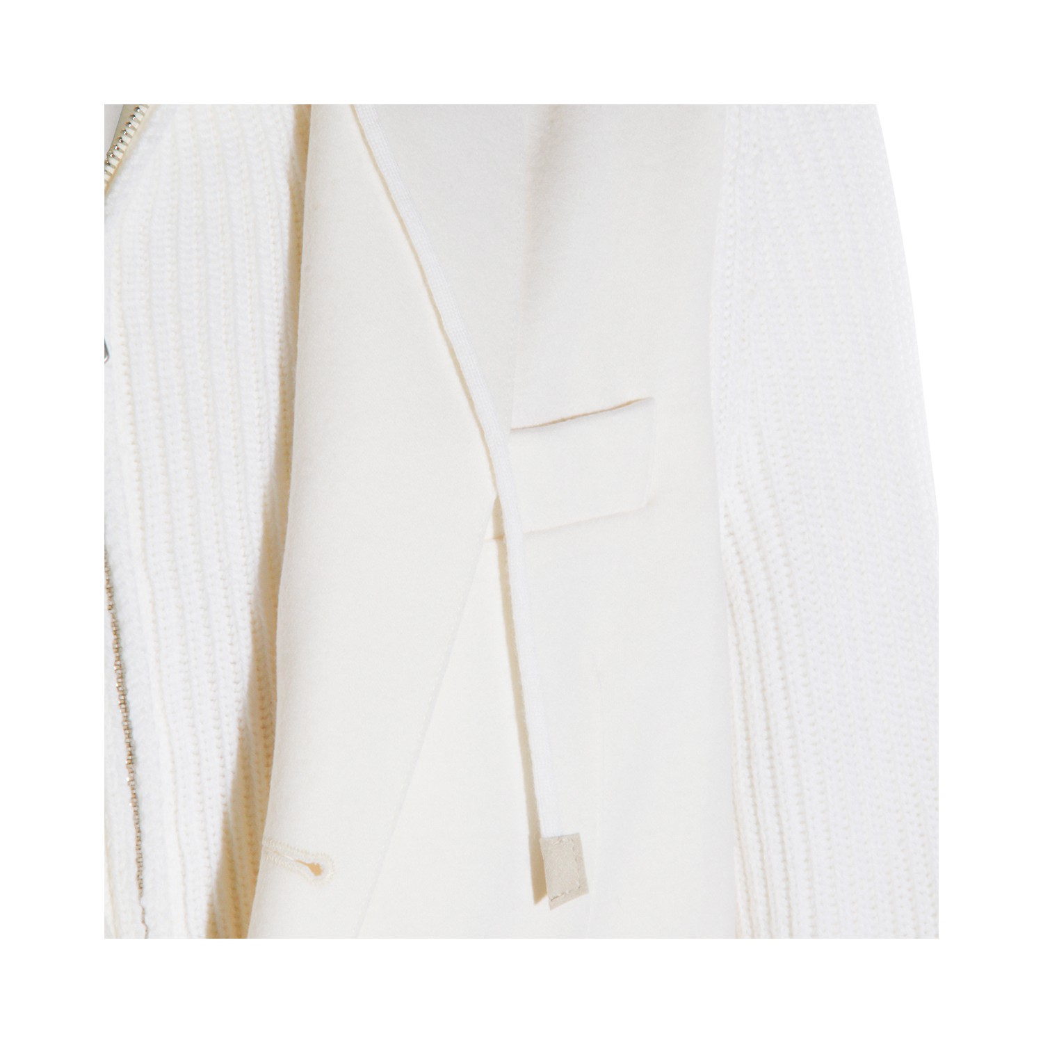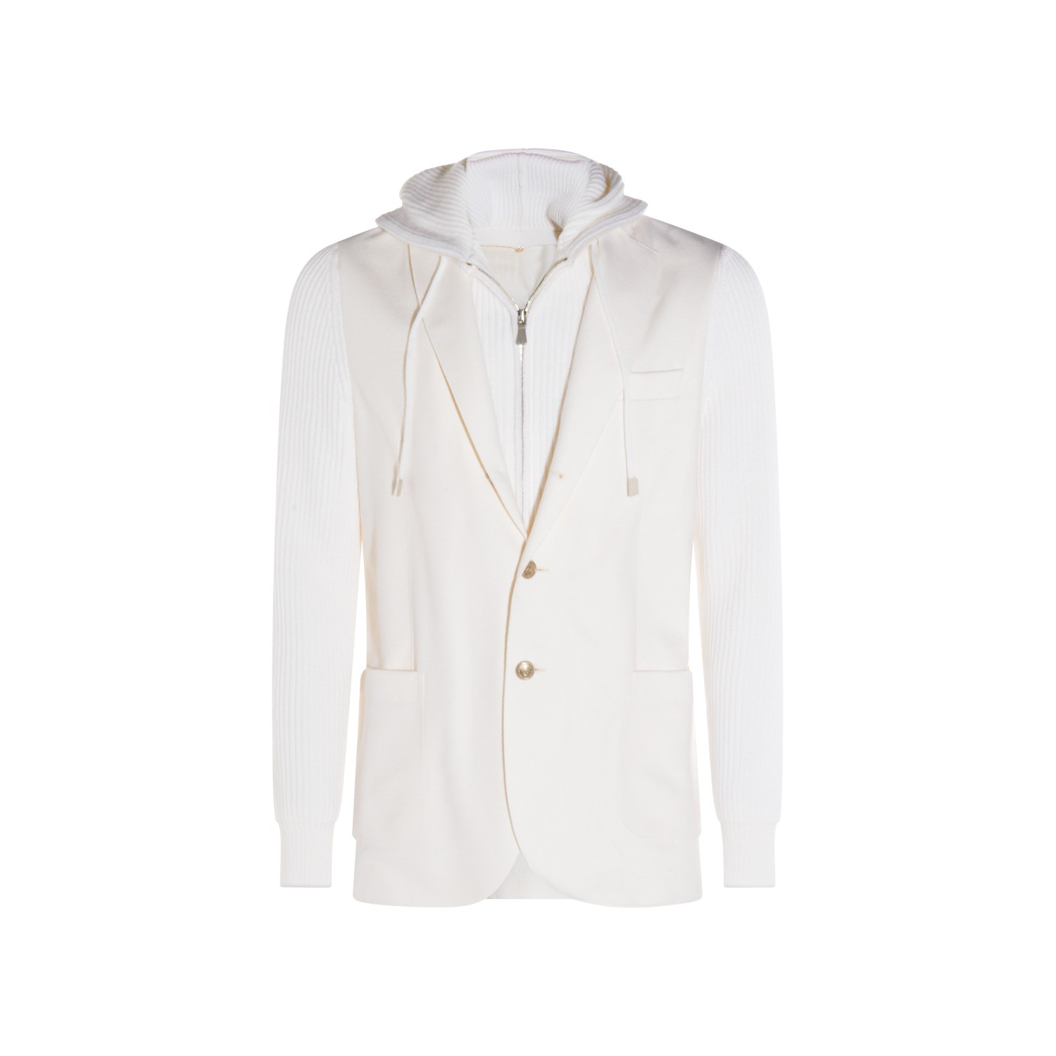 Ivory wool blazer from Eleventy featuring long sleeves, hood, zip fastening, ribbed hems and regular fit.