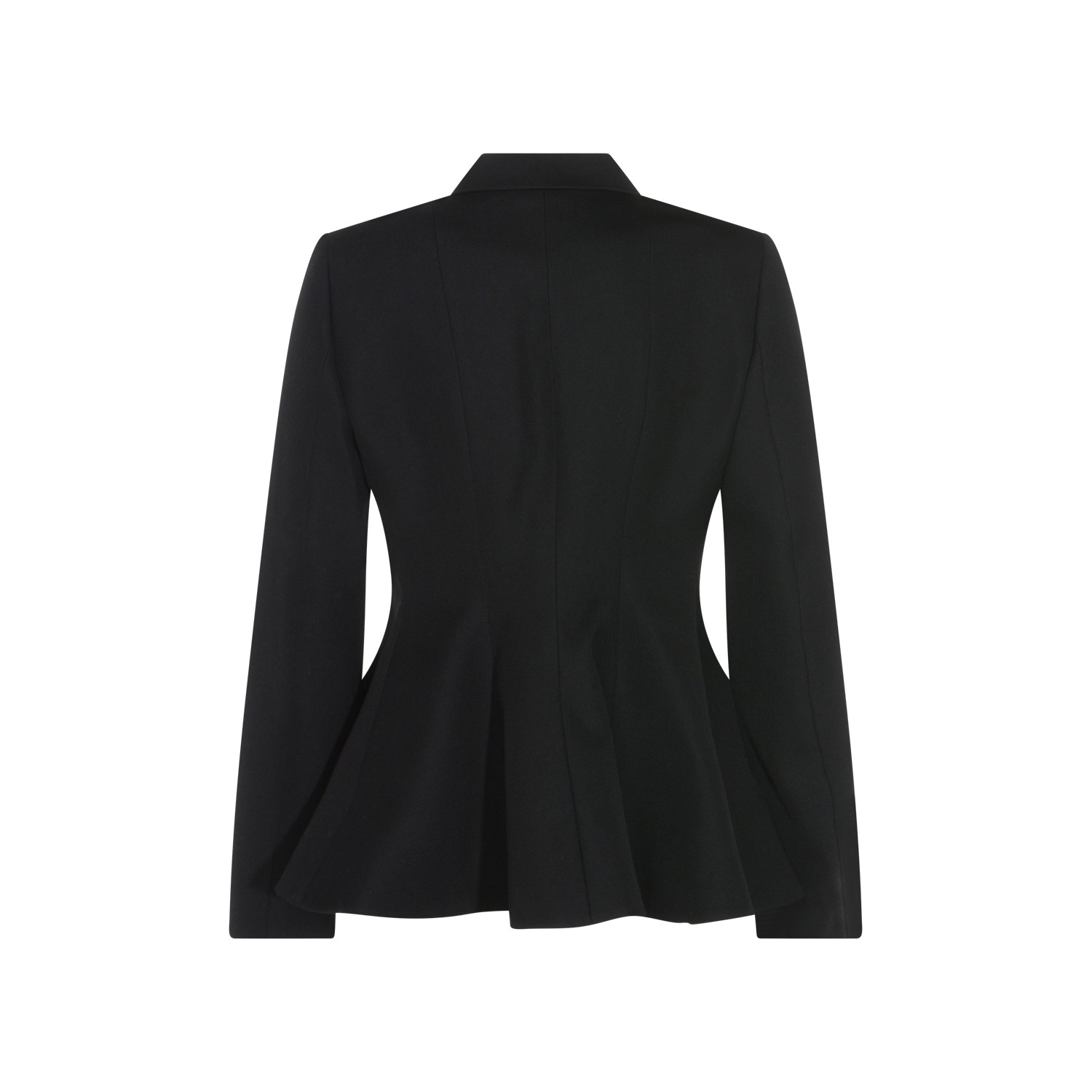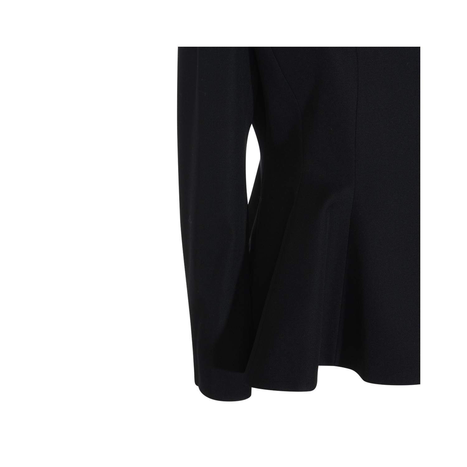 Black wool blazer from Fendi featuring lapel collar, long sleeves, double breasted, hidden closure and regular vestibility.