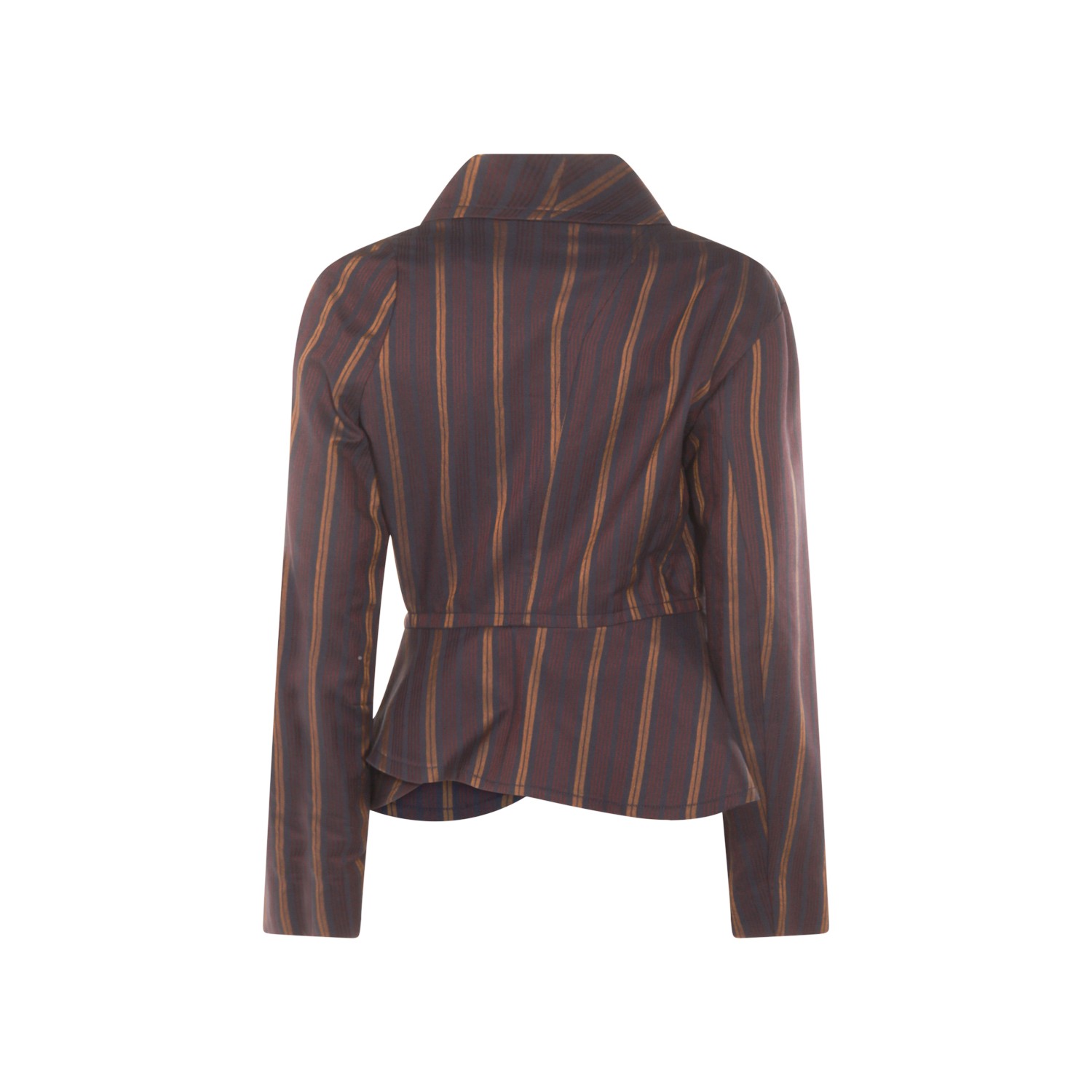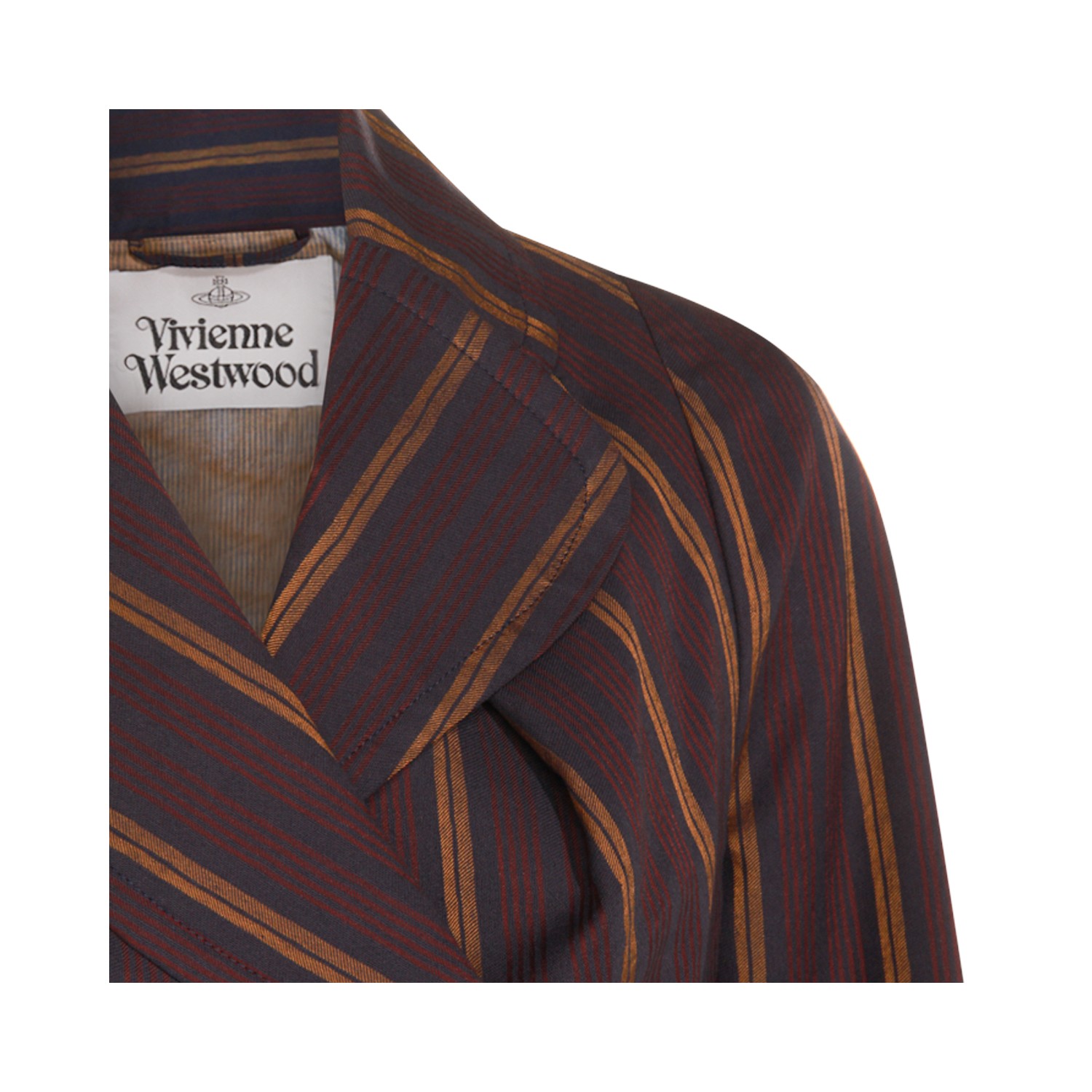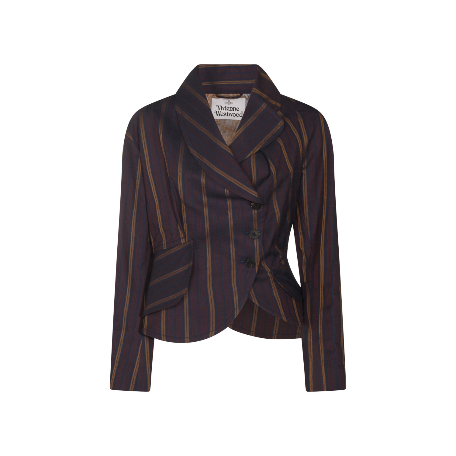 Blue cotton blazer from Vivienne Westwood featuring lapel collar, long sleeves, striped details, asymmetrical closure and regular vestibility.