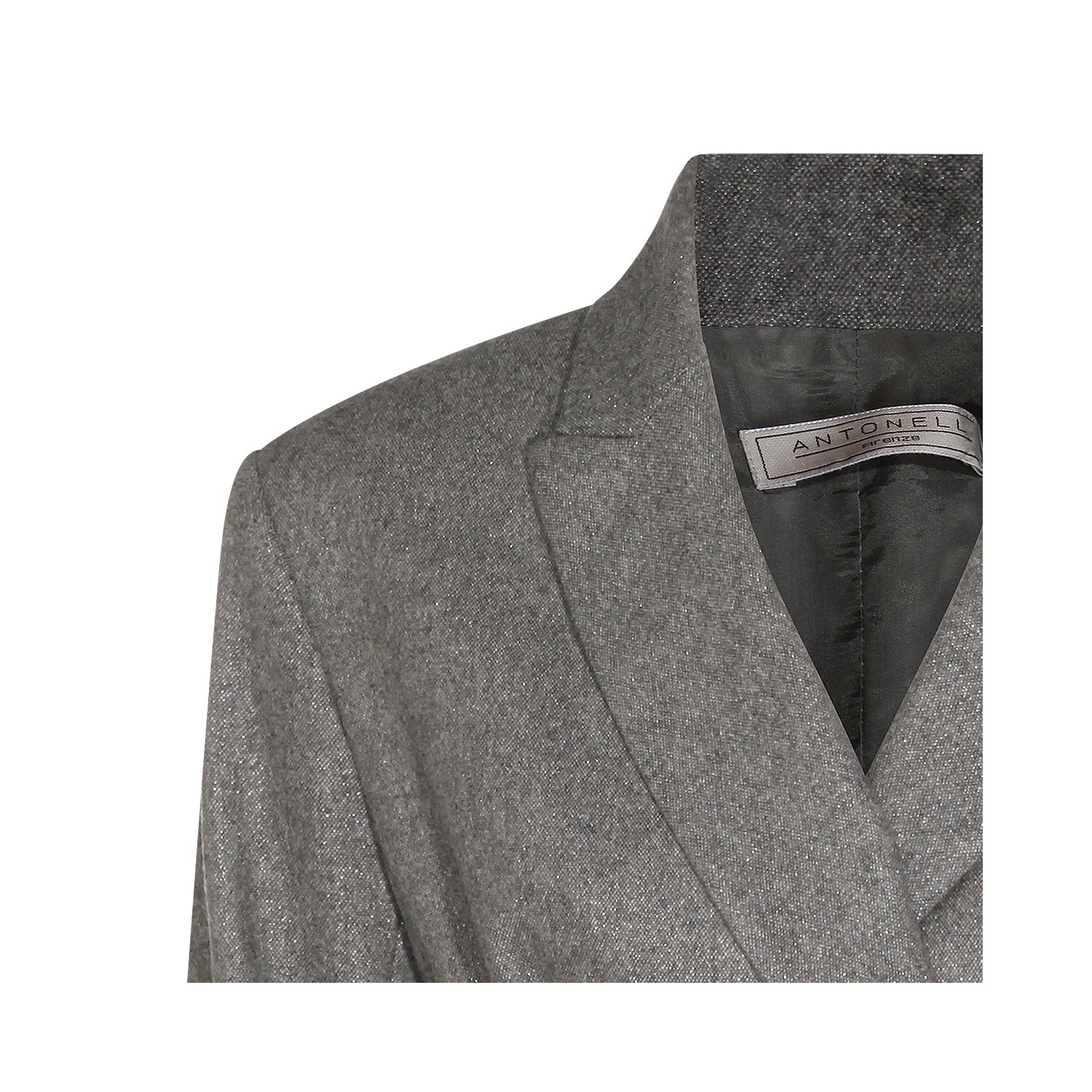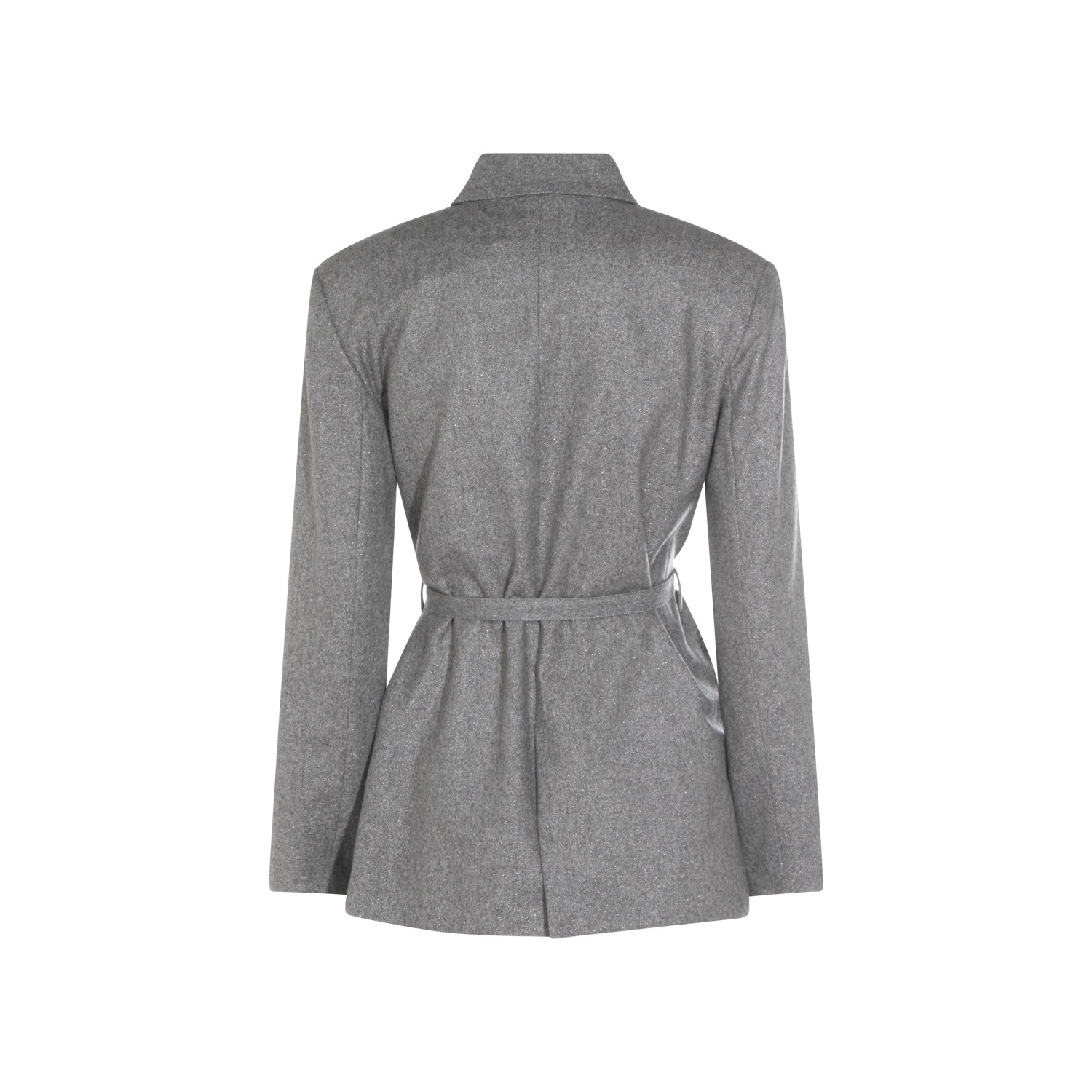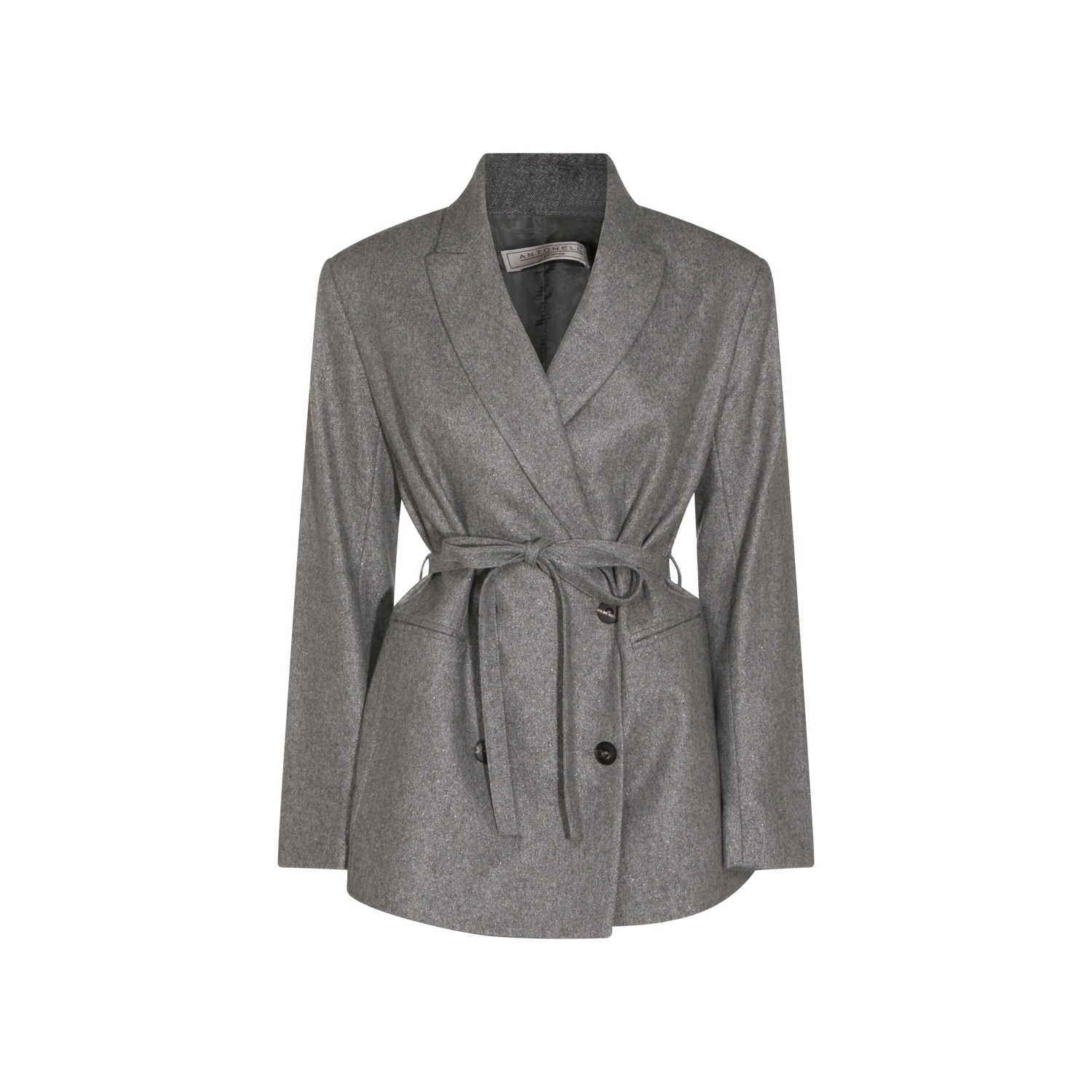 Grey wool blazer from Antonelli Firenze featuring lapel collar, long sleeves, frontal fastening, belt waist and regular vestibility.