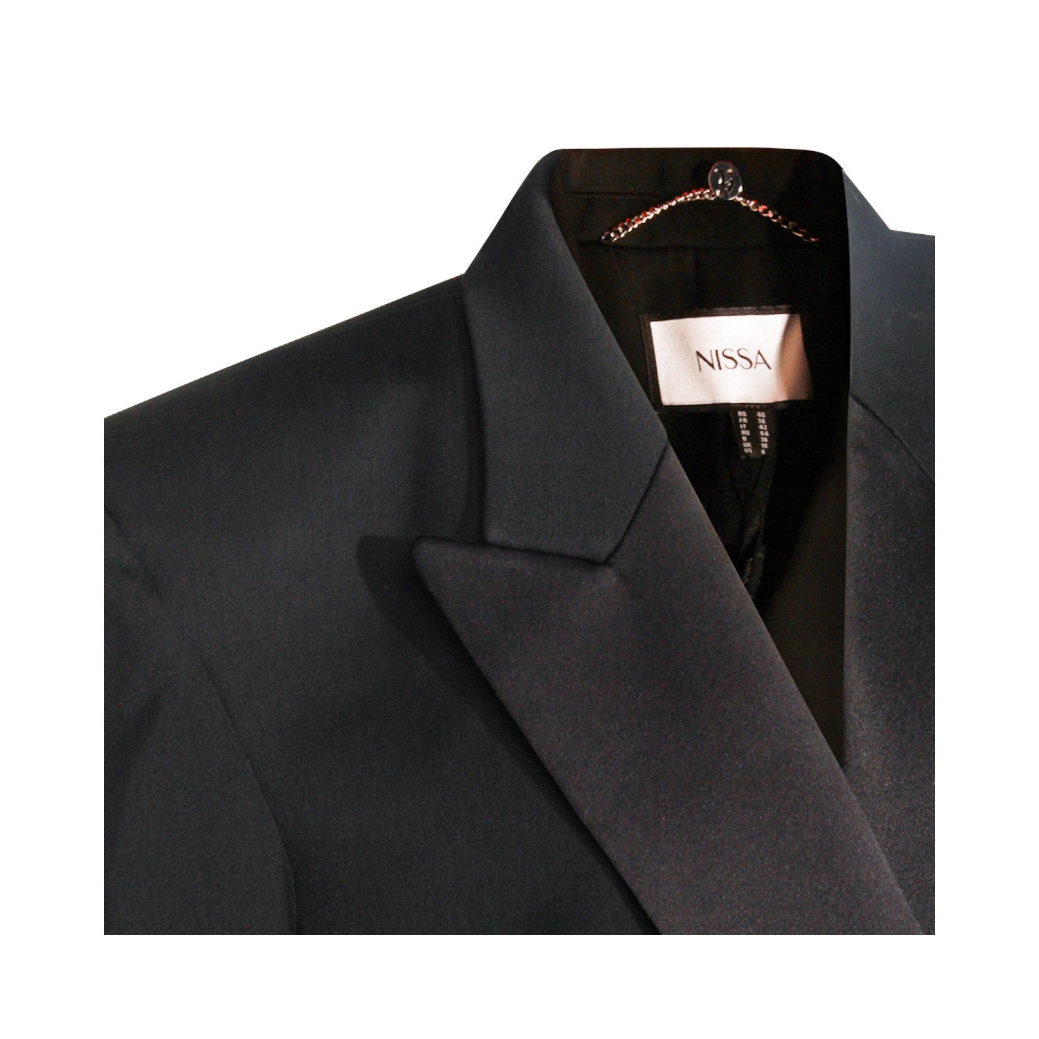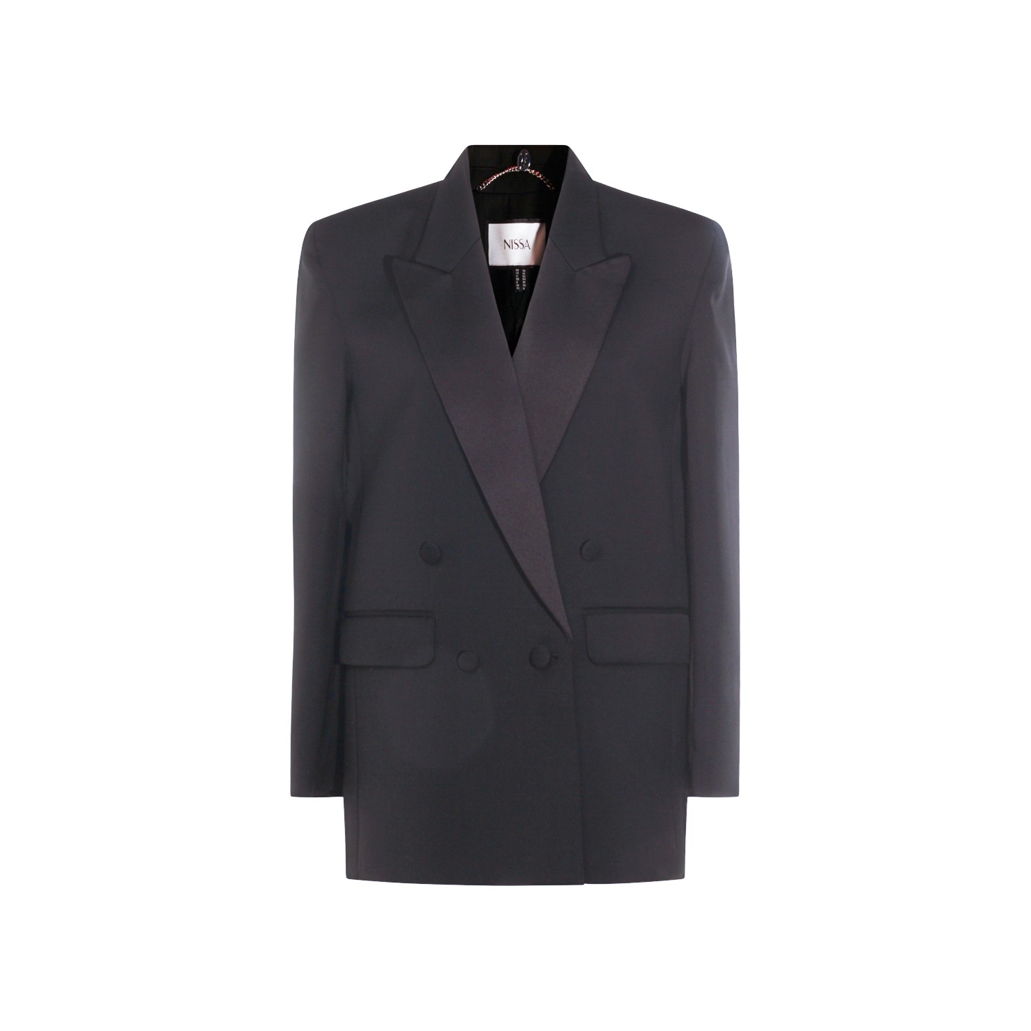 Black blazer from Nissa featuring long sleeves, pockets, double breasted fastening and regular vestibility.