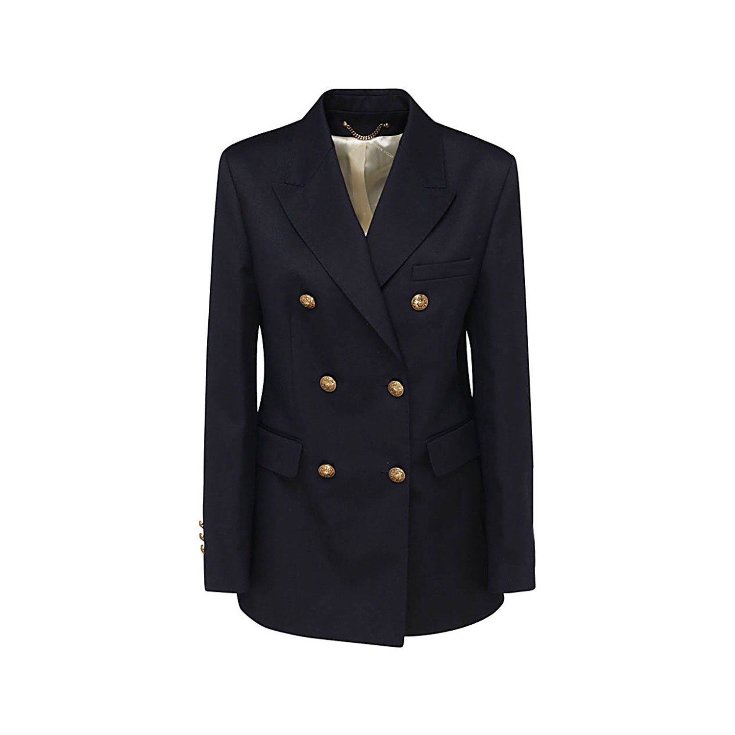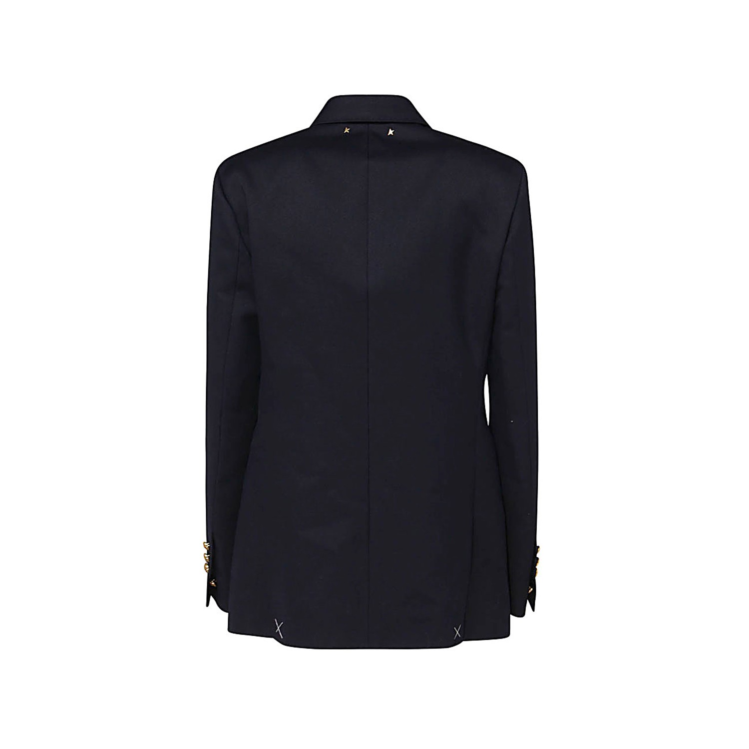 Dark blue blazer from Golden Goose featuring long sleeves, double breasted fastening, gold tone buttons, pockets and regular vestibility.