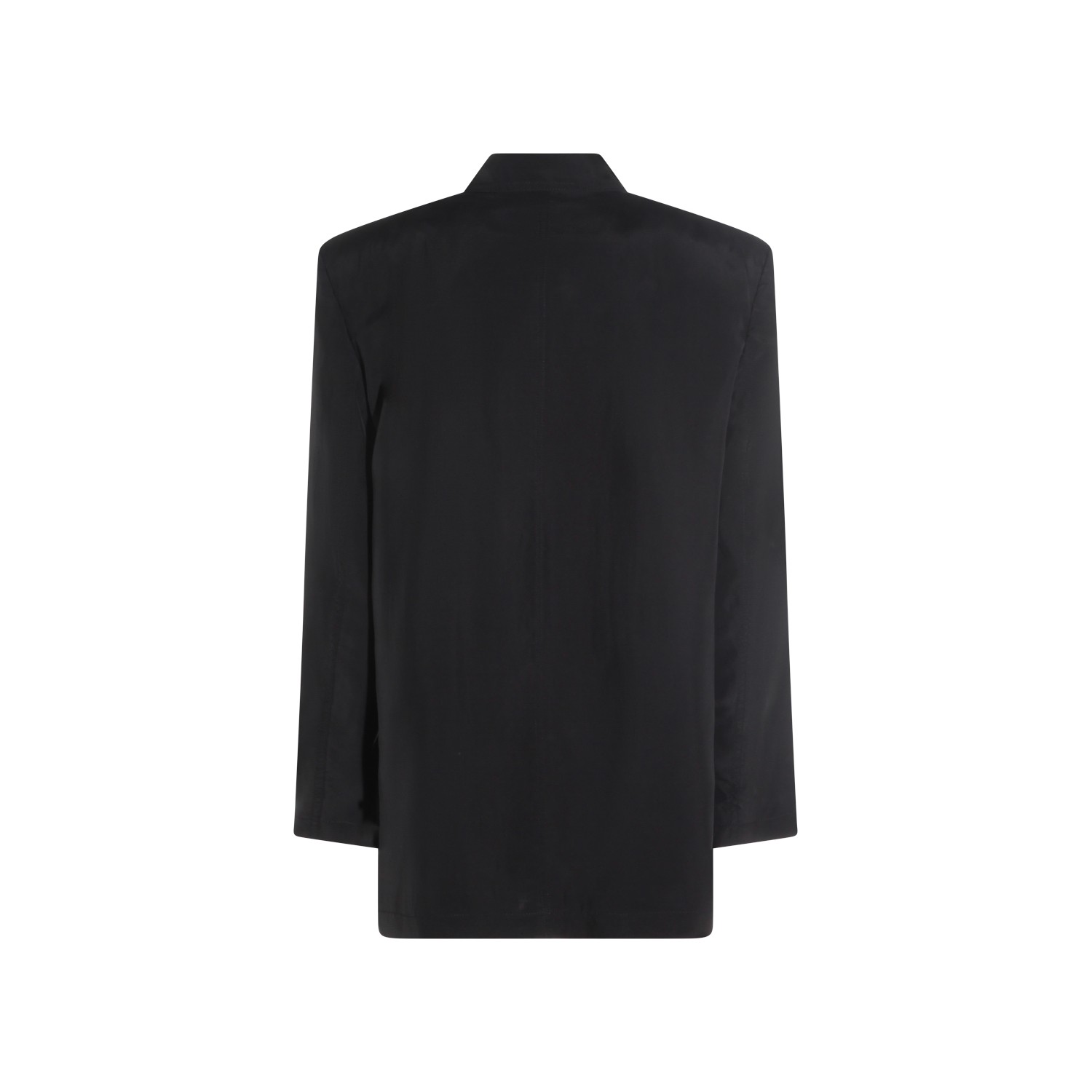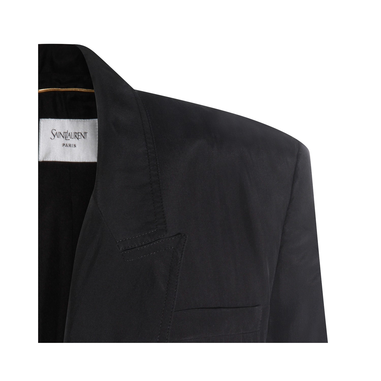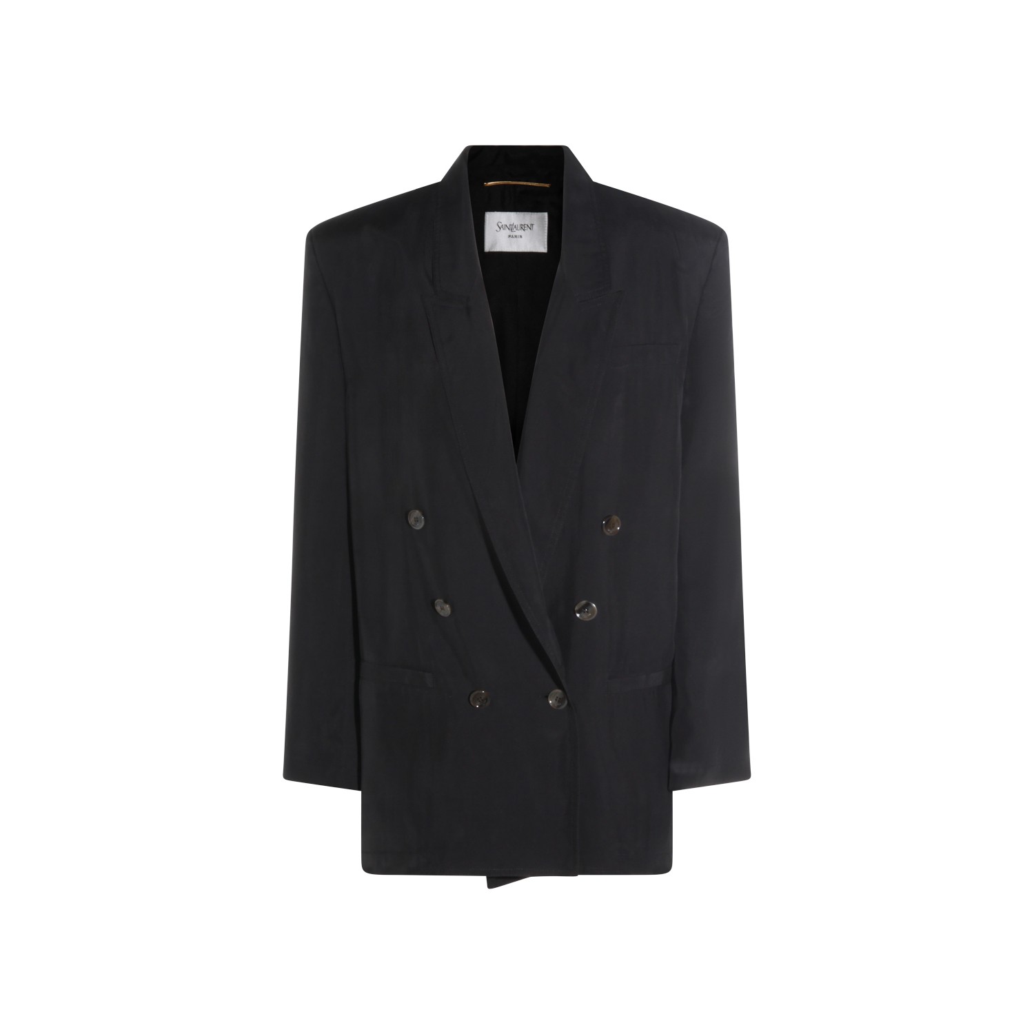 Black silk blazer from Saint Laurent featuring long sleeves, double fastening with buttons and regular vestibility.