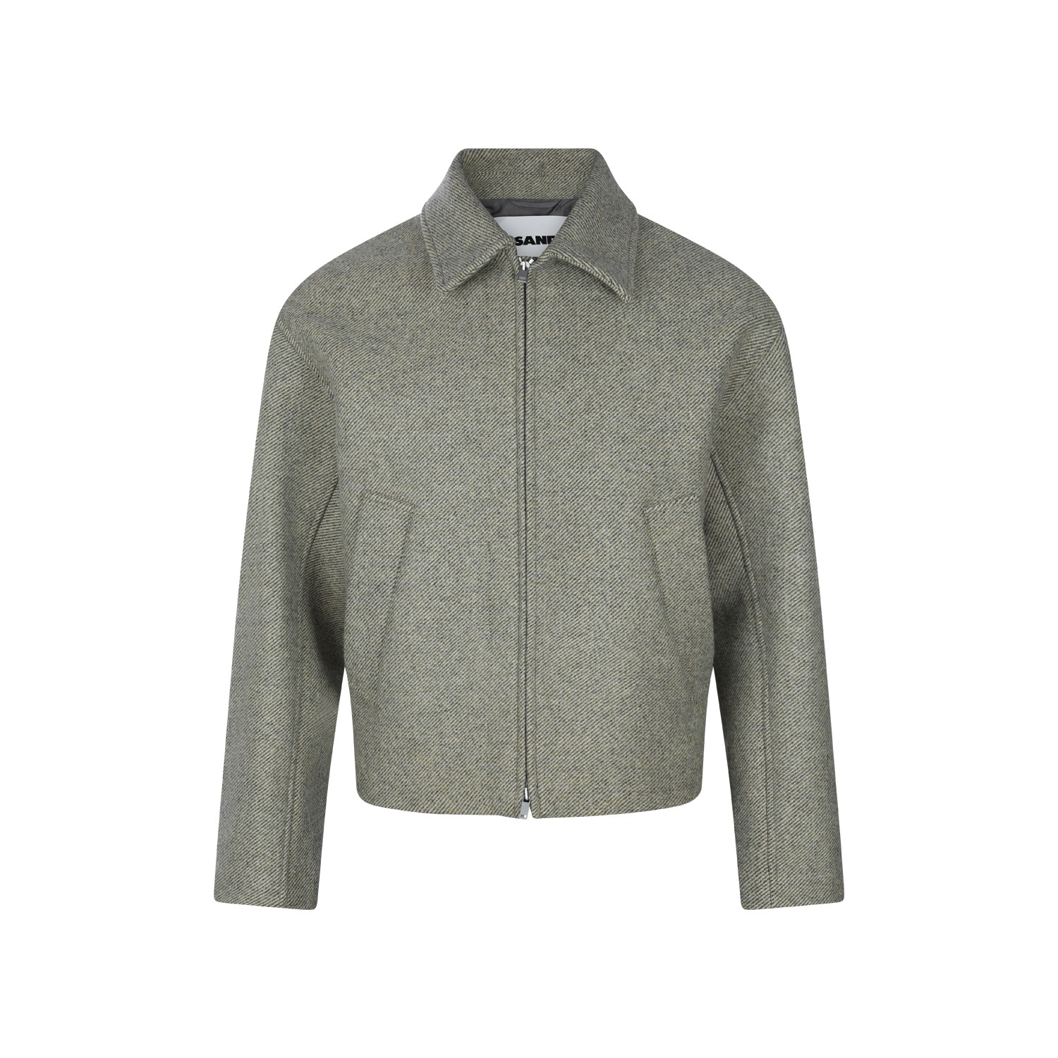 Light green wool casual jacket from Jil Sander featuring classic collar, long sleeves, zip fastening, pockets and regular vestibility.