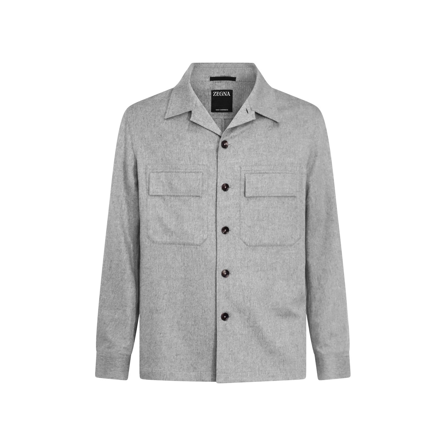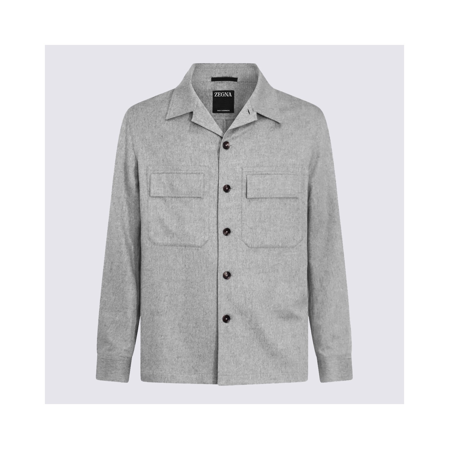 Light grey cashmere casual jacket from Zegna featuring classic collar, long sleeves, frontal buttons fastening, chest pockets and regular vestibility.