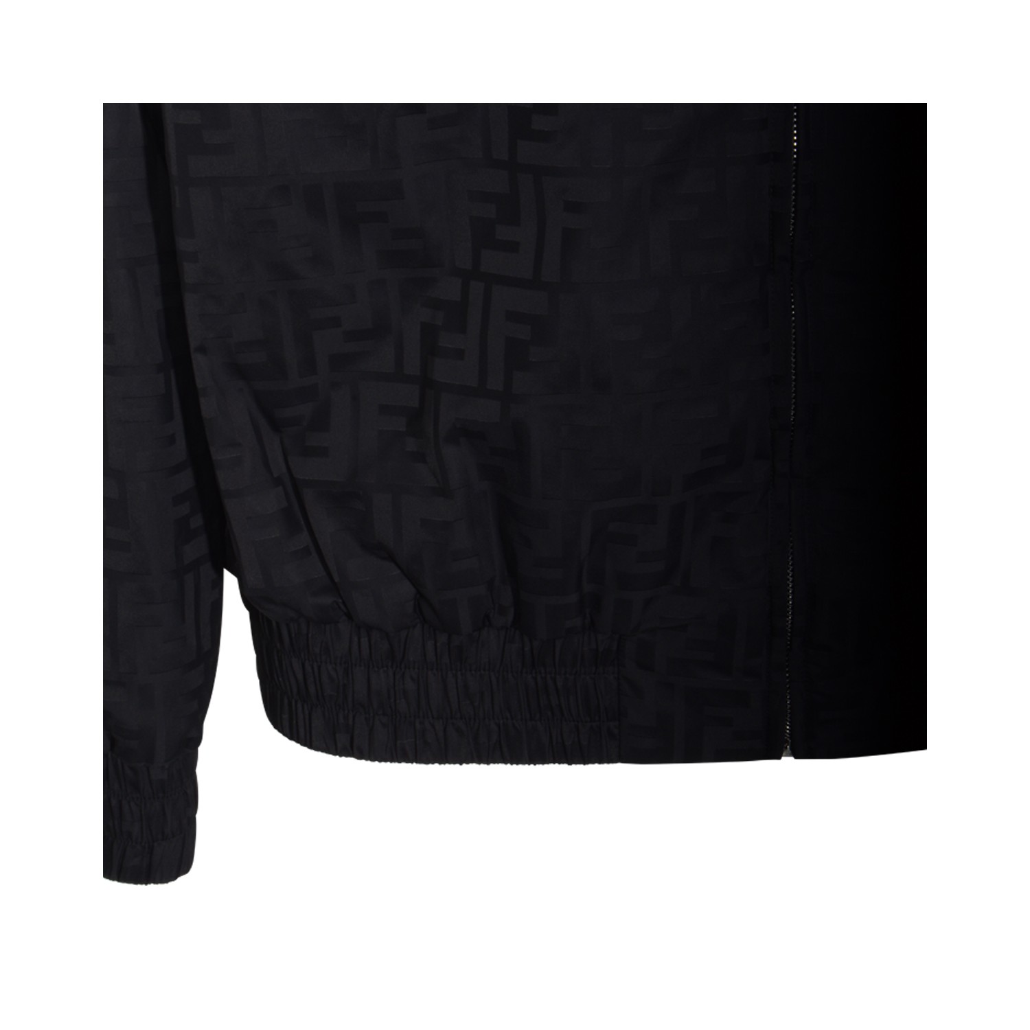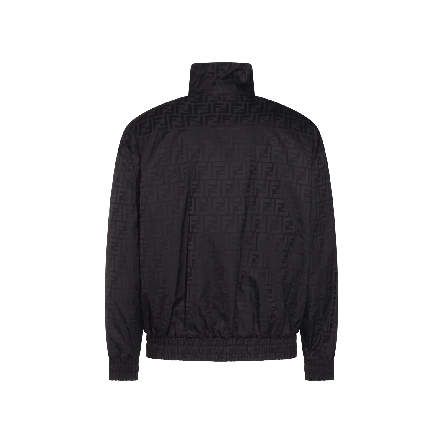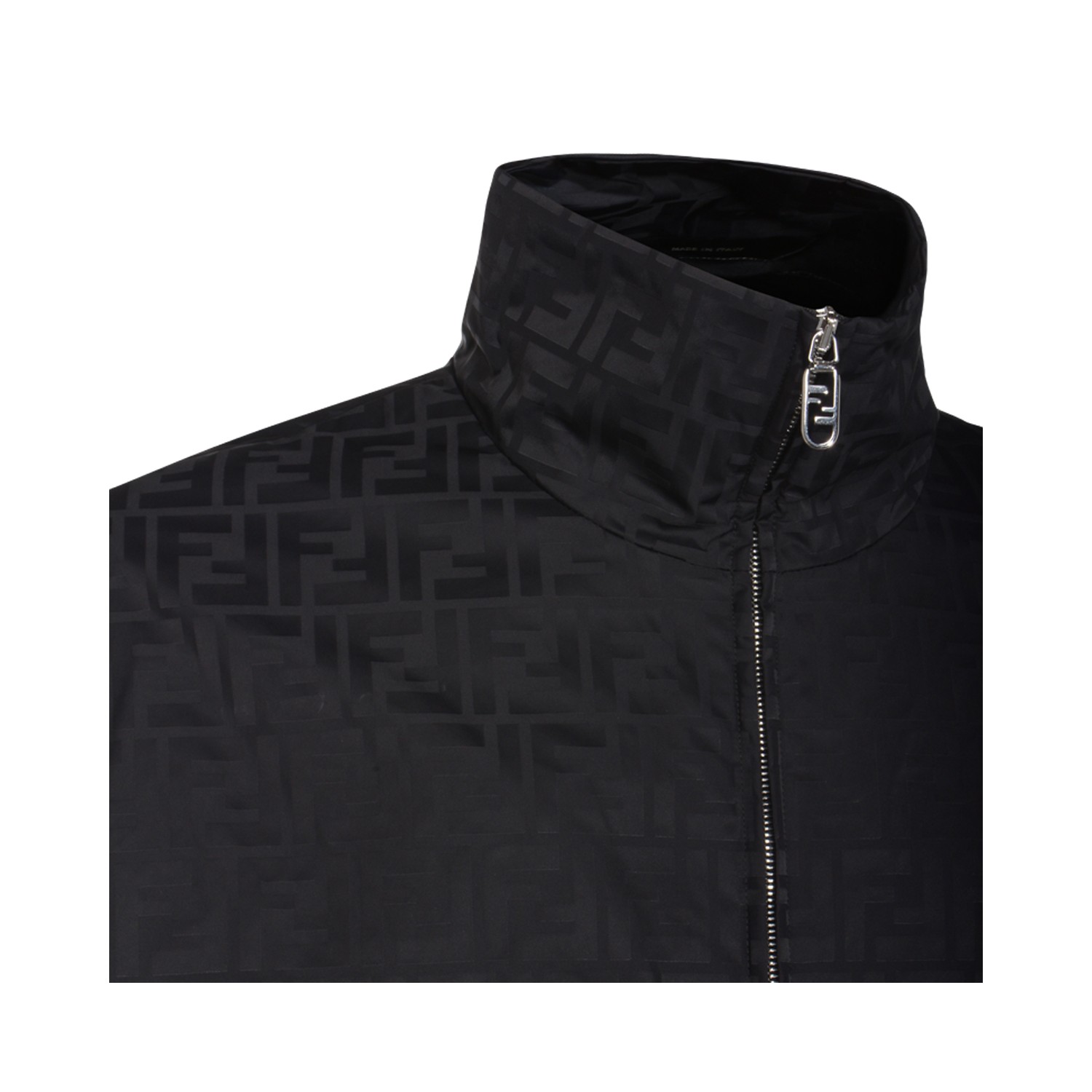 Black casual jacket from Fendi featuring high collar, long sleeves, zip fastening, all-over FF texture and regular vestibility.