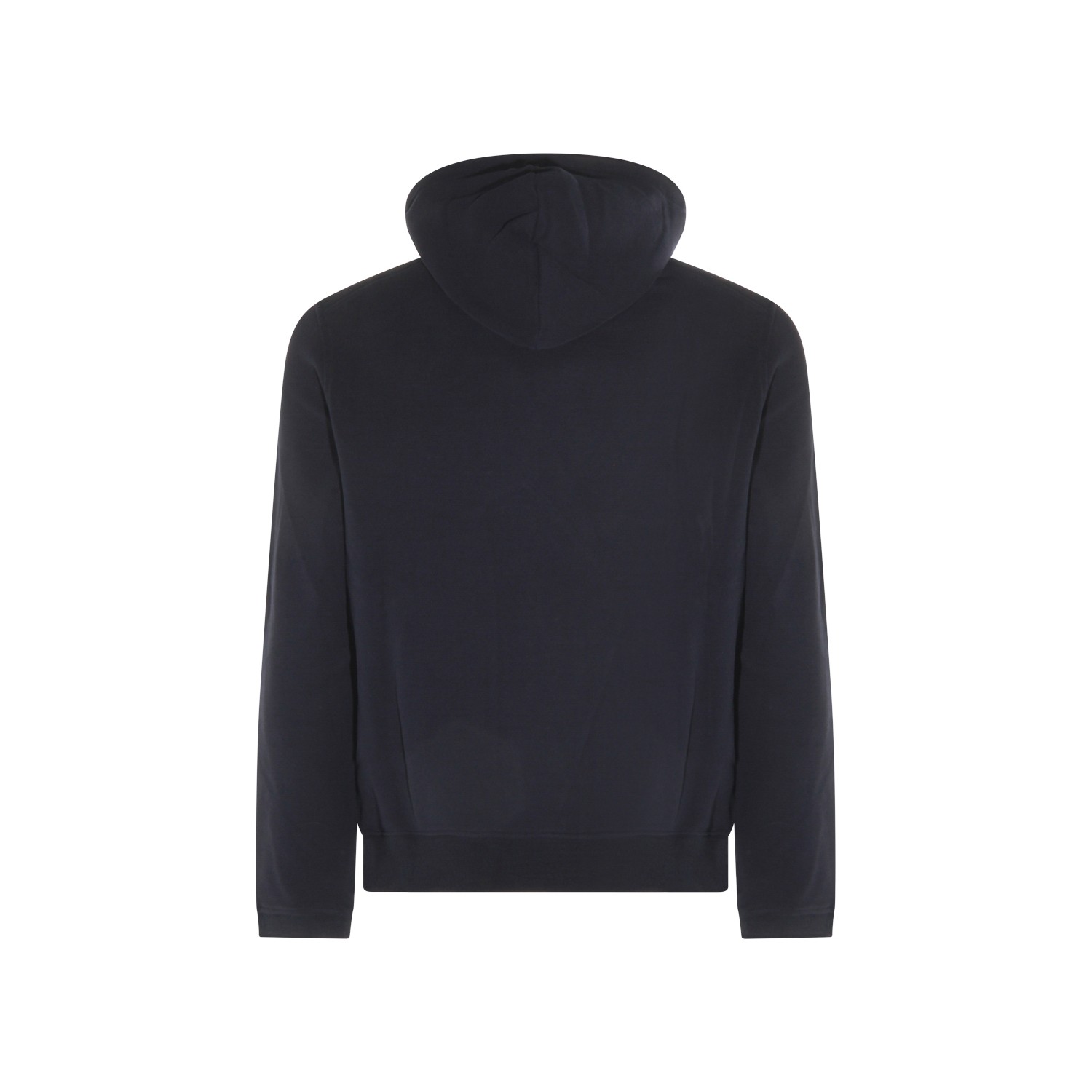 Blue cotton casual jacket from K-Way featuring high collar, hood, ribbed cuffs and hem and regular vestibility.