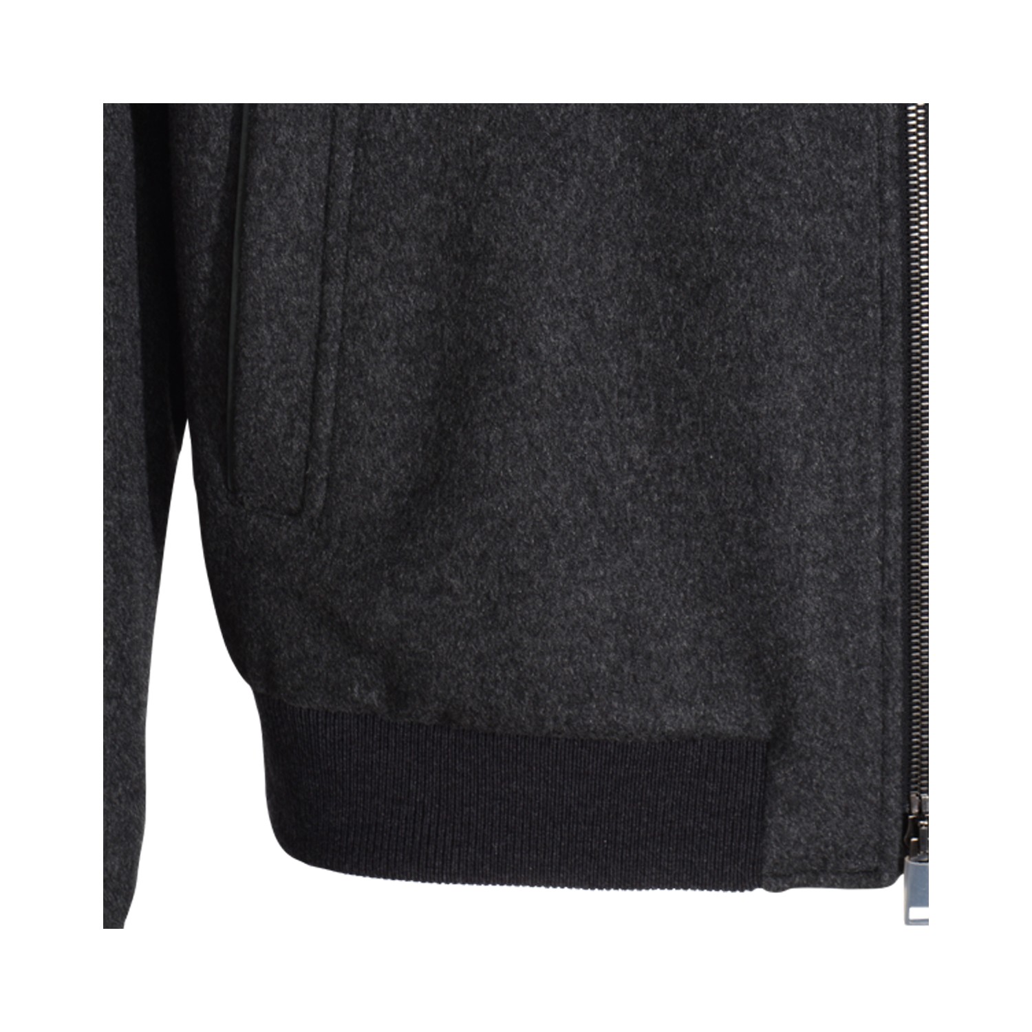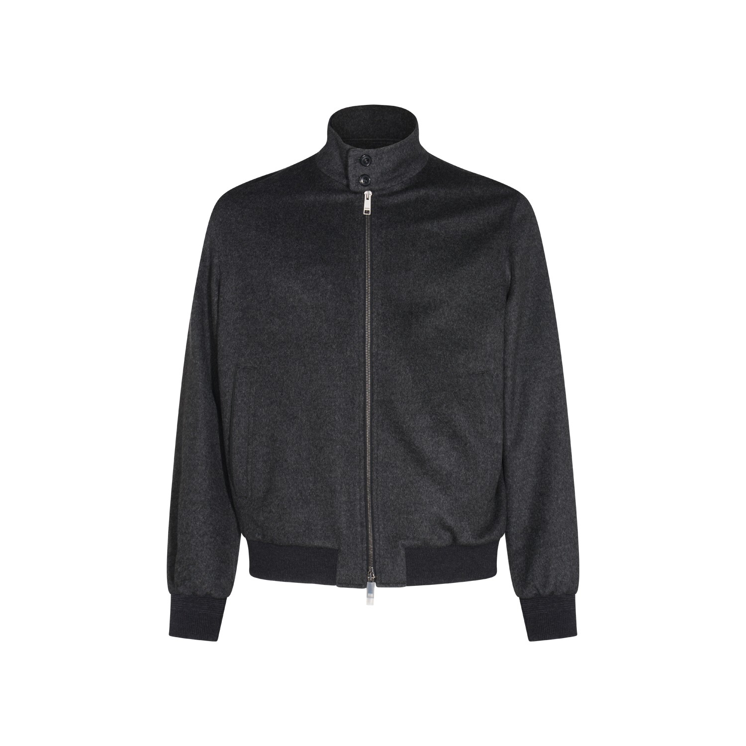 Dark grey wool casual jacket from Zegna featuring high collar, long sleeves, zip fastening, elasticated cuffs and hem and regular vestibility.