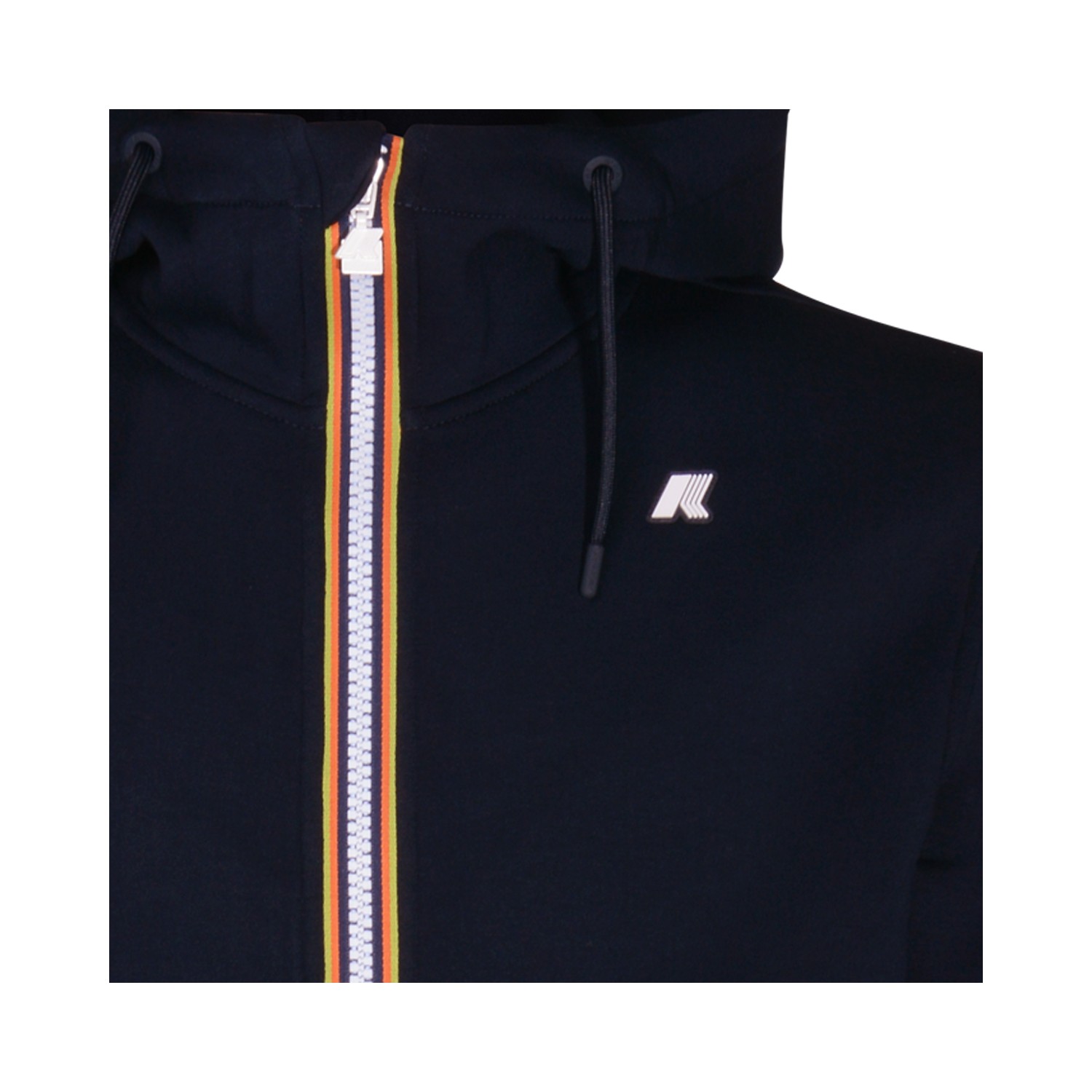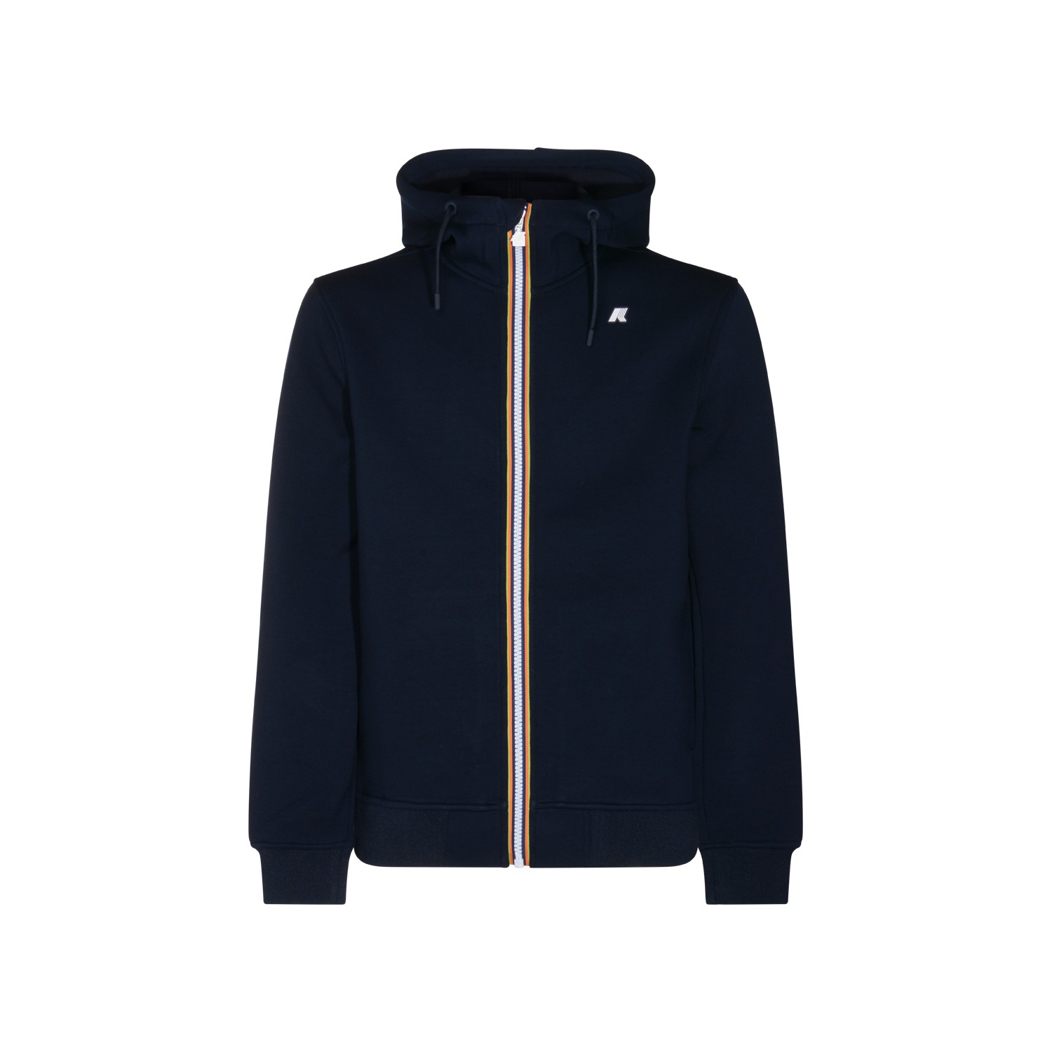 Dark blue Rainer Spacer casual jacket from K-Way featuring high collar, hood, long sleeves, zip fastening and regular vestibility.
