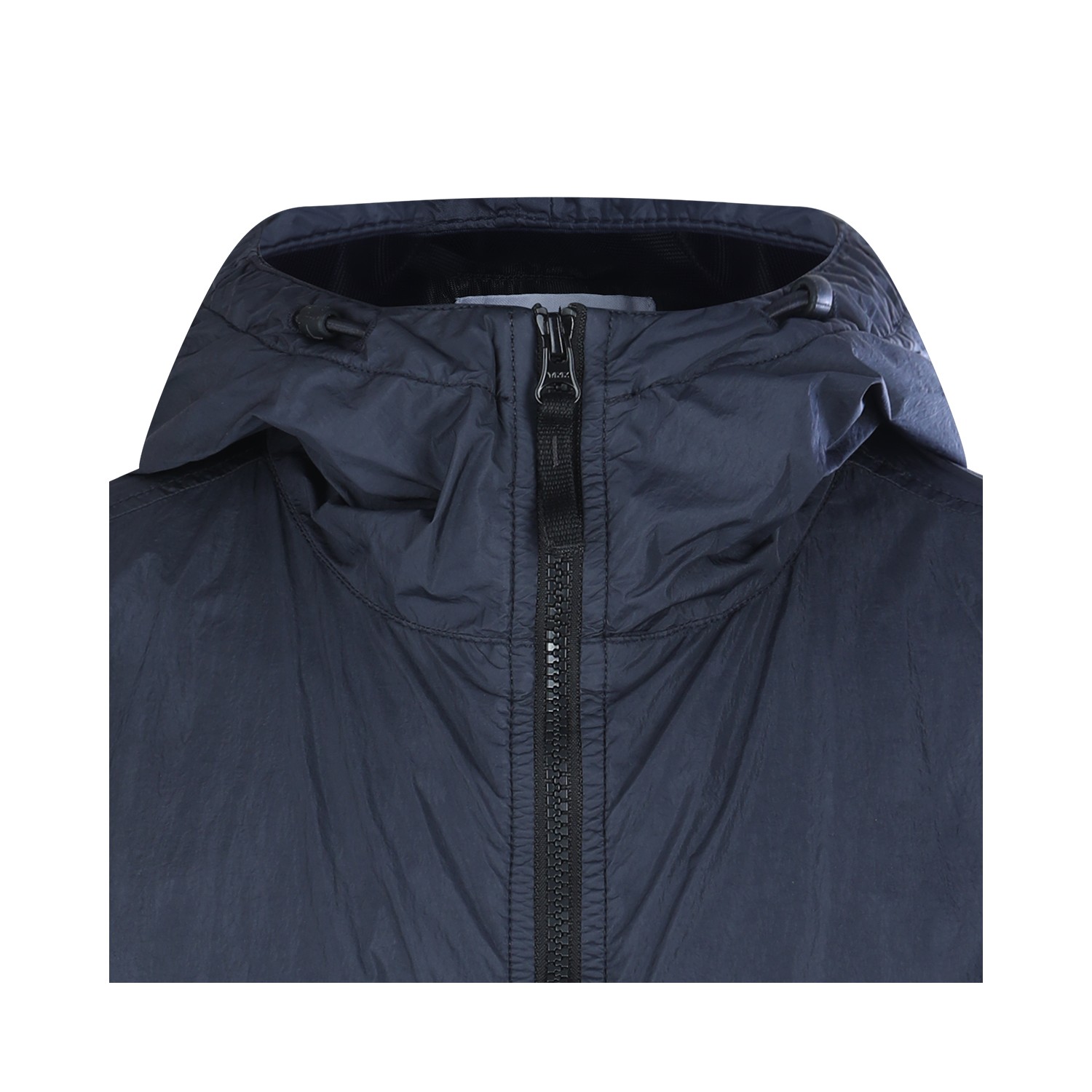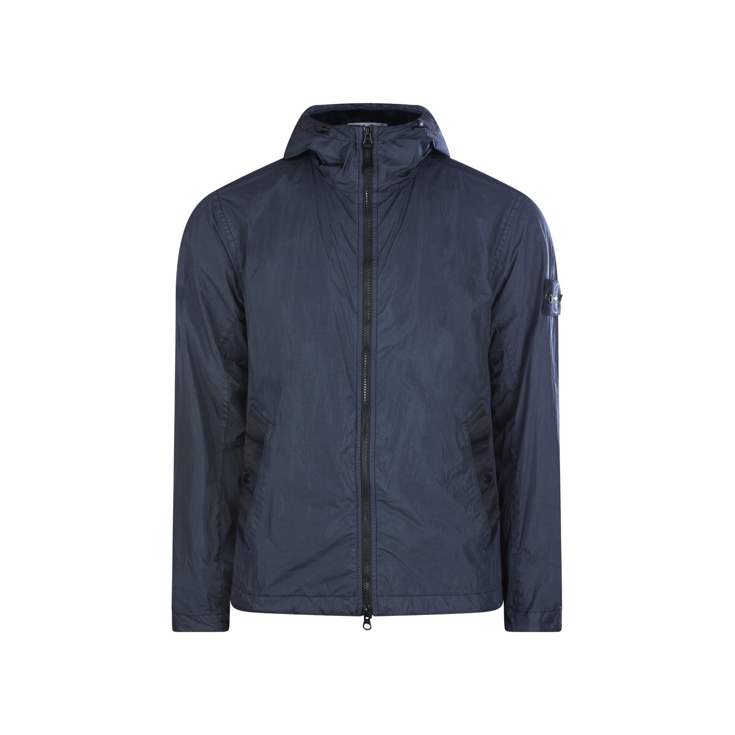 Navy blue casual jacket from Stone Island featuring hood, zip fastening, long sleeves, pockets, lateral logo patch and regular vestibility.