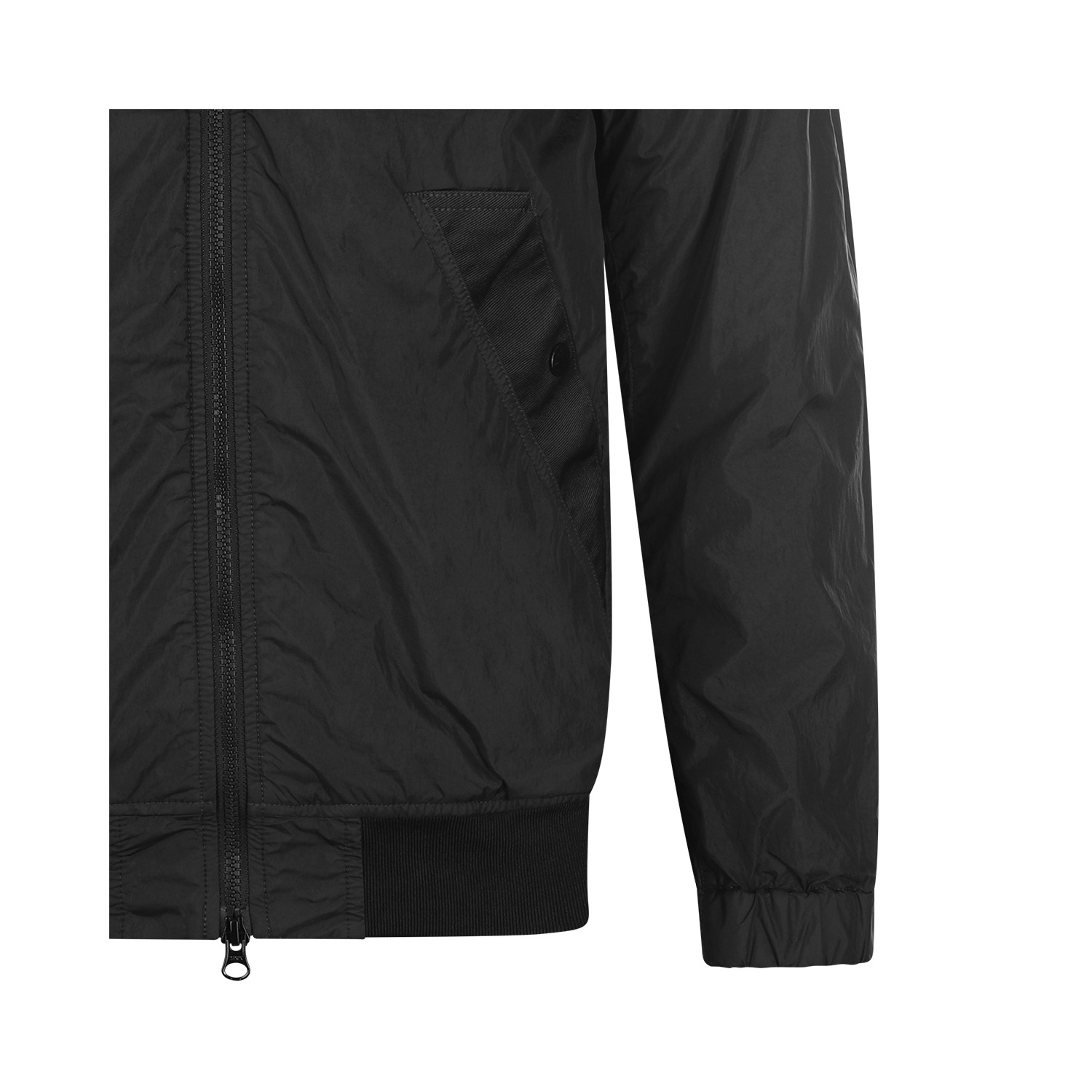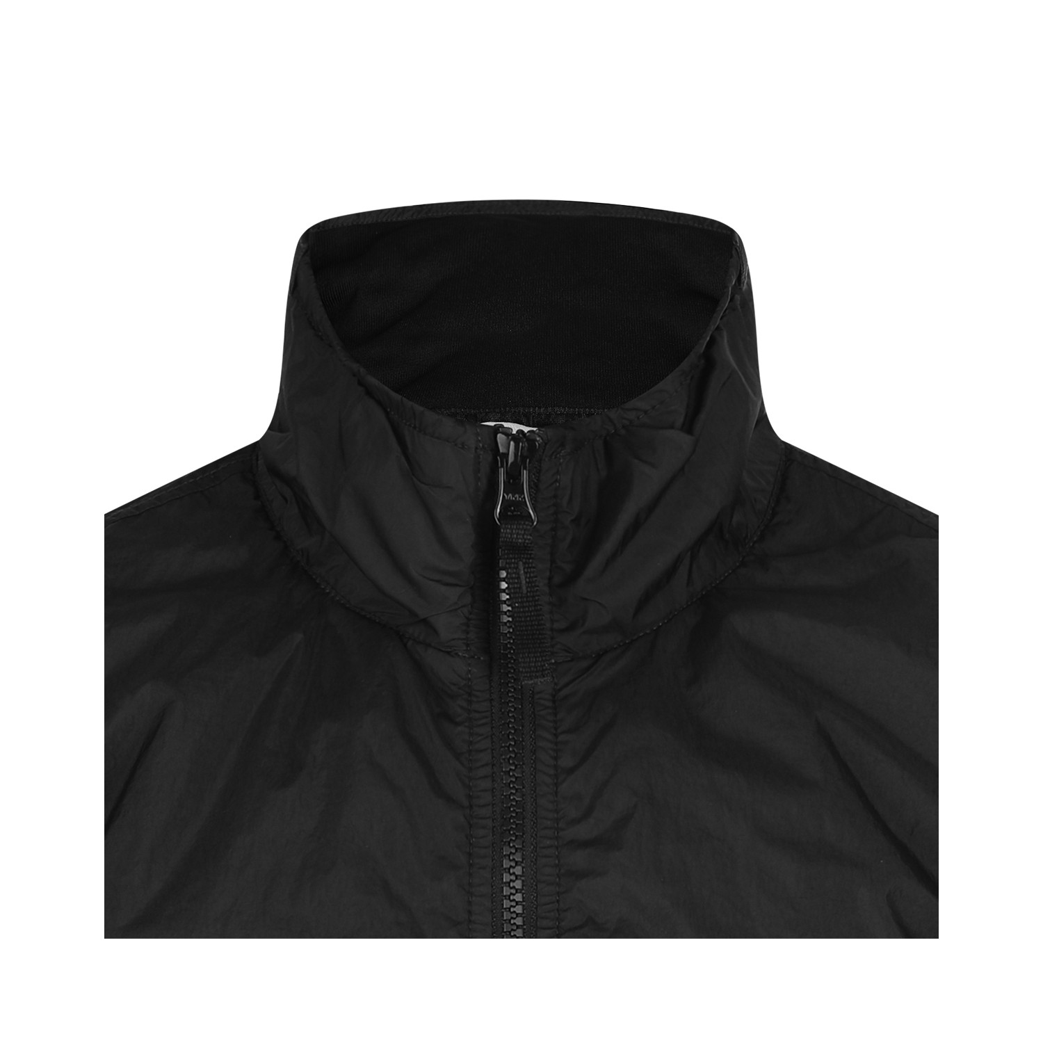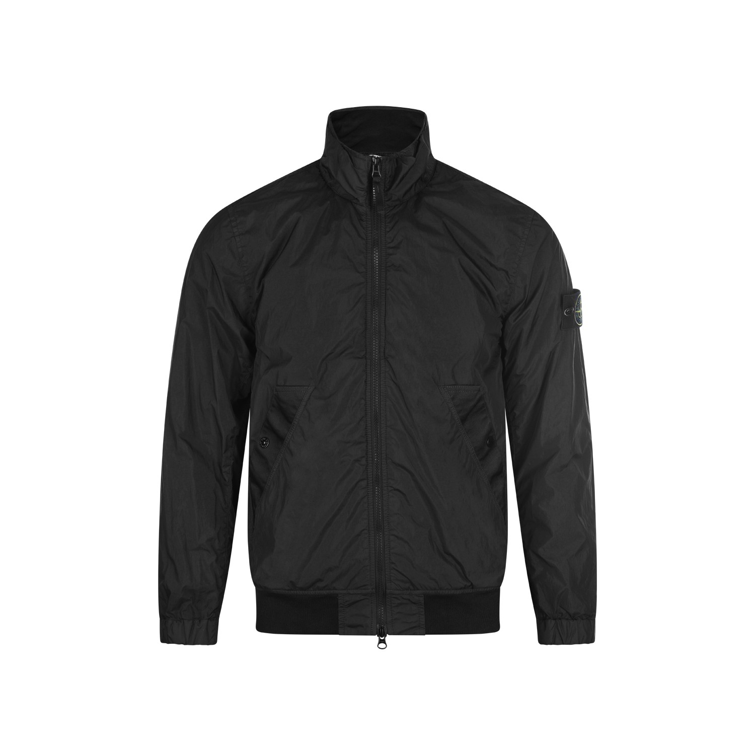 Black casual jacket from Stone Island featuring high neck, zip fastening, long sleeves, lateral logo patch, pockets and regular vestibility.
