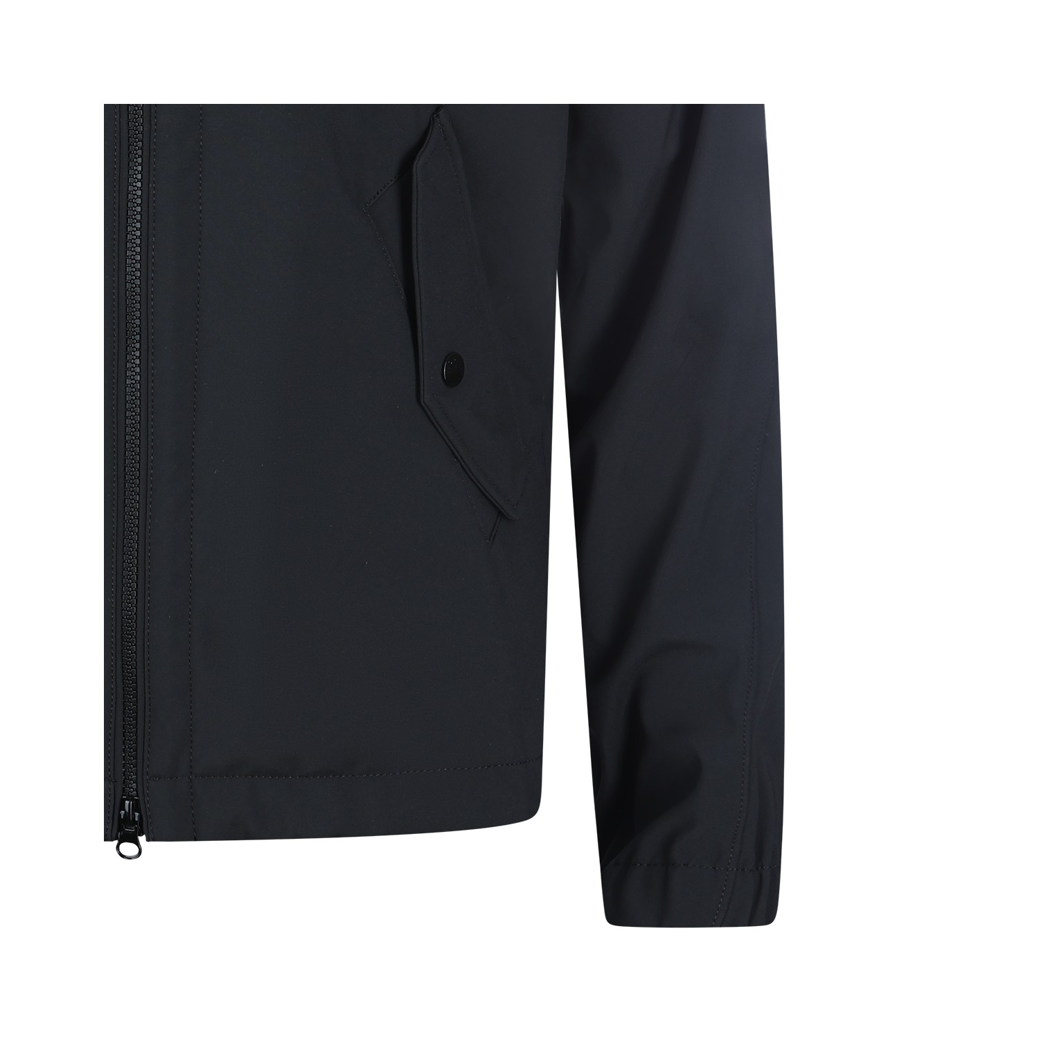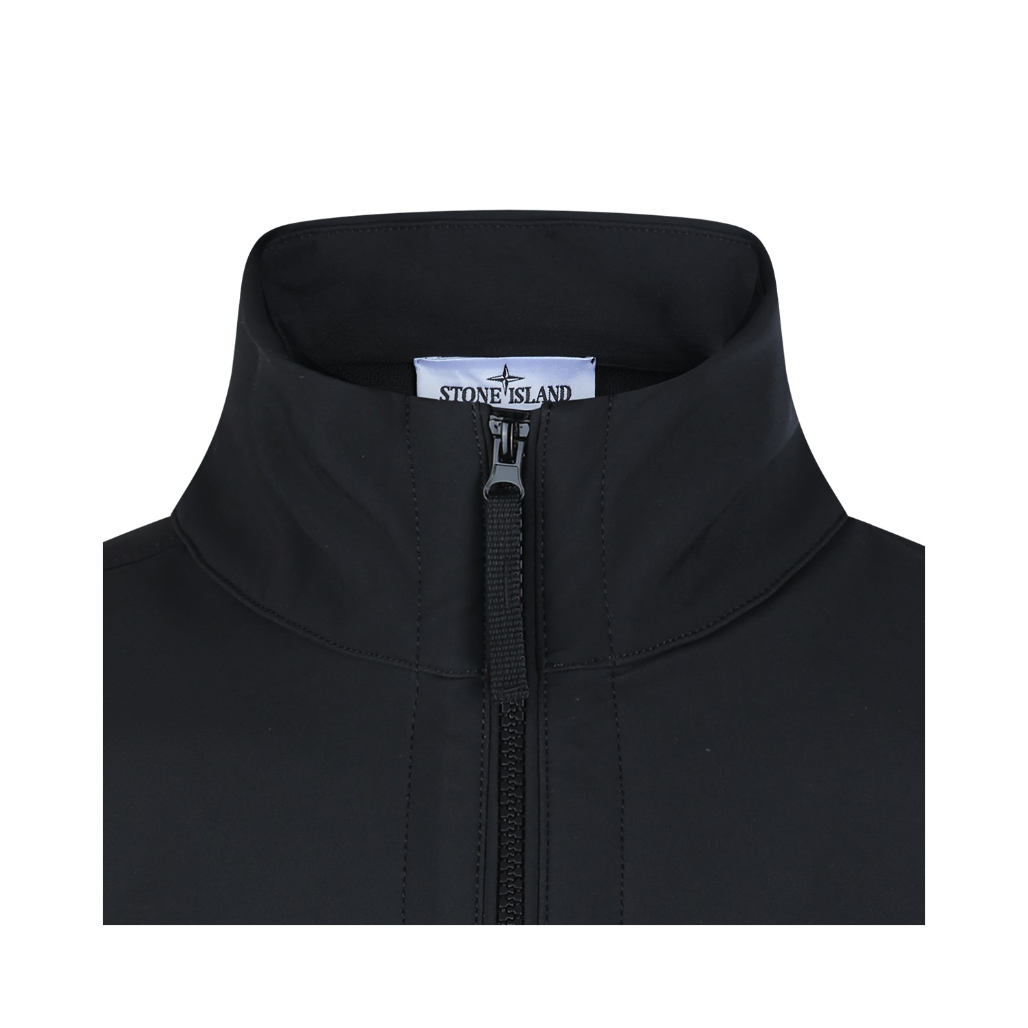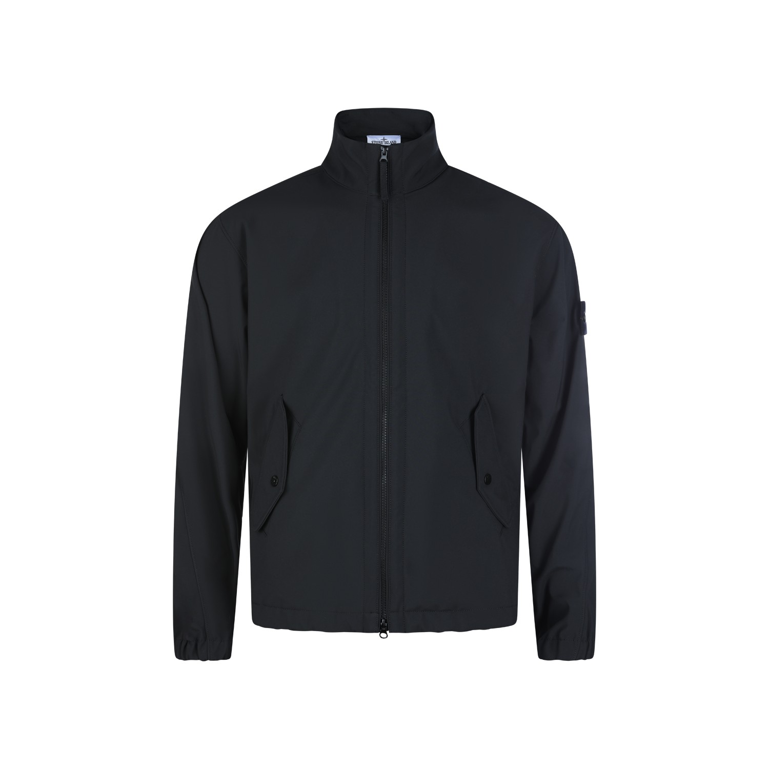 Black casual jacket from Stone Island featuring high colalr, zip fastening, long sleeves, lateral logo patch, pockets and regular vestibility.