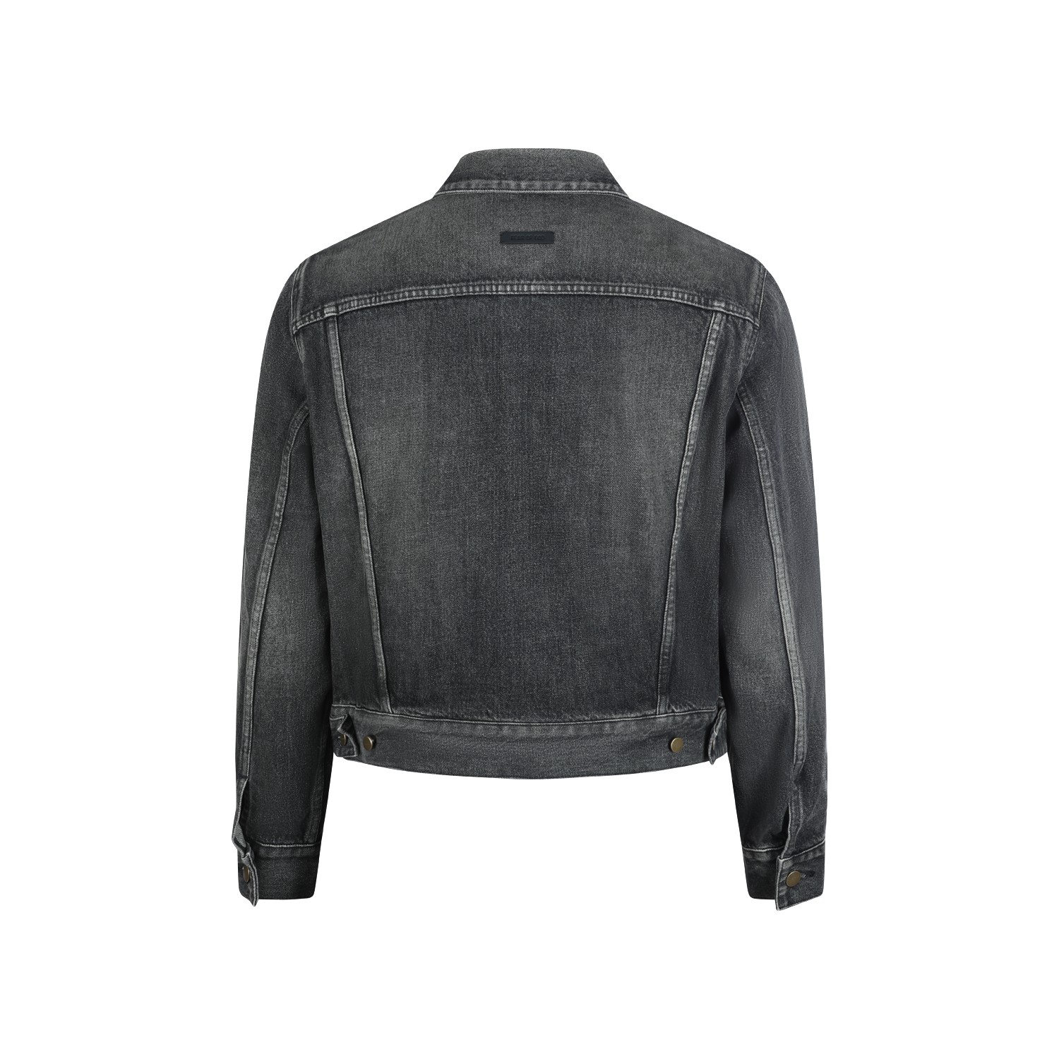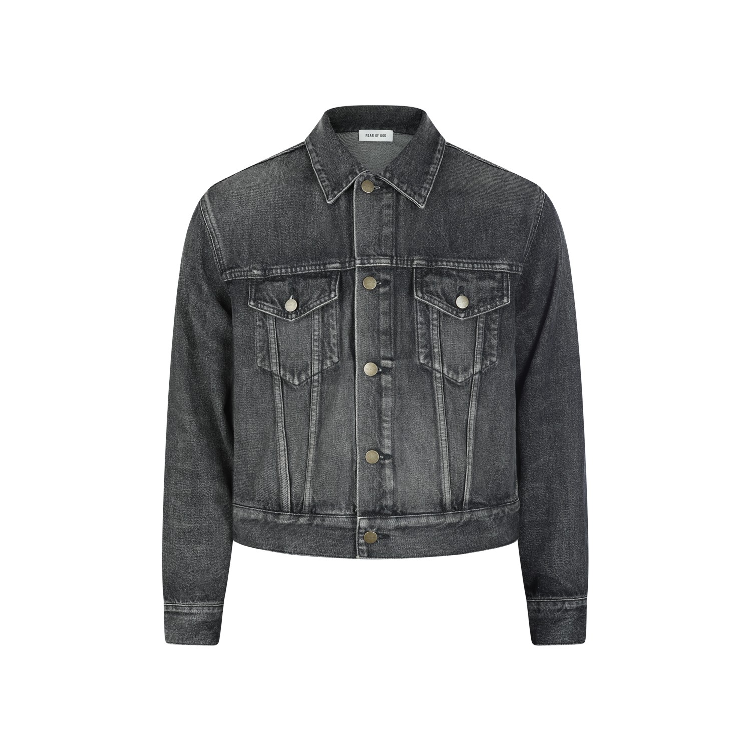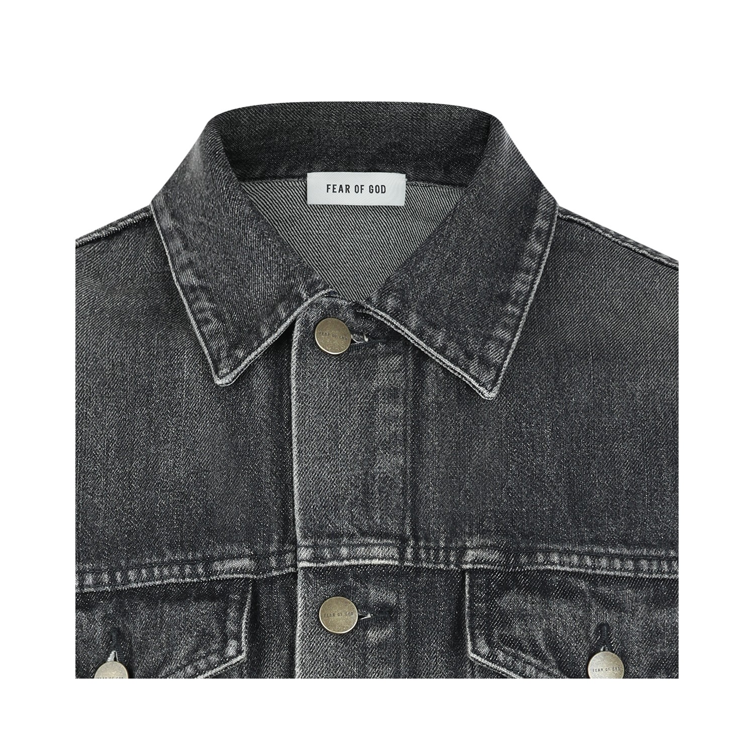Black cotton denim jacket from Fear Of God featuring shirt collar, buttons fastening, long sleeves, frontal chest pockets, stitching details and regular vestibility.