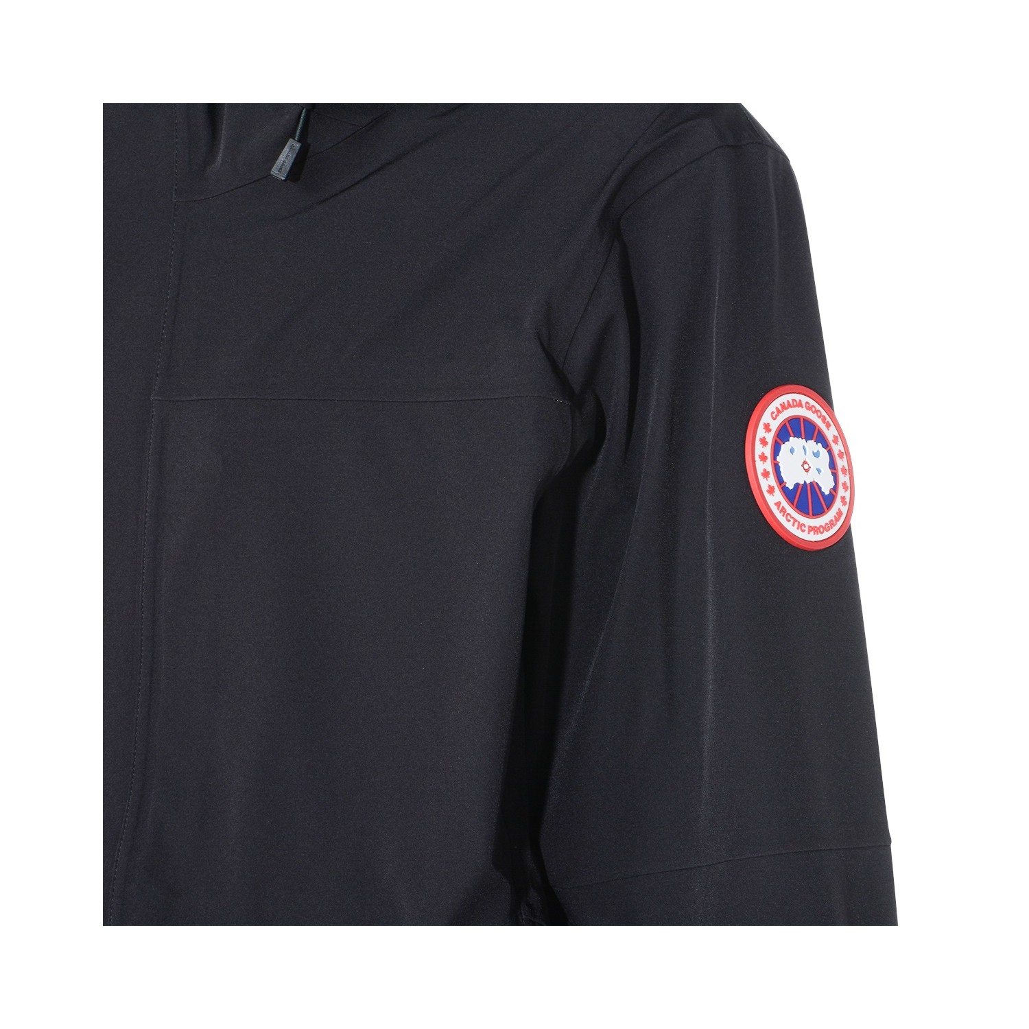 Black Rupert Rain down jacket from Canada Goose featuring high collar, hood, long sleeves, zip fastening, logo patch at the sleeve and regular vestibility.