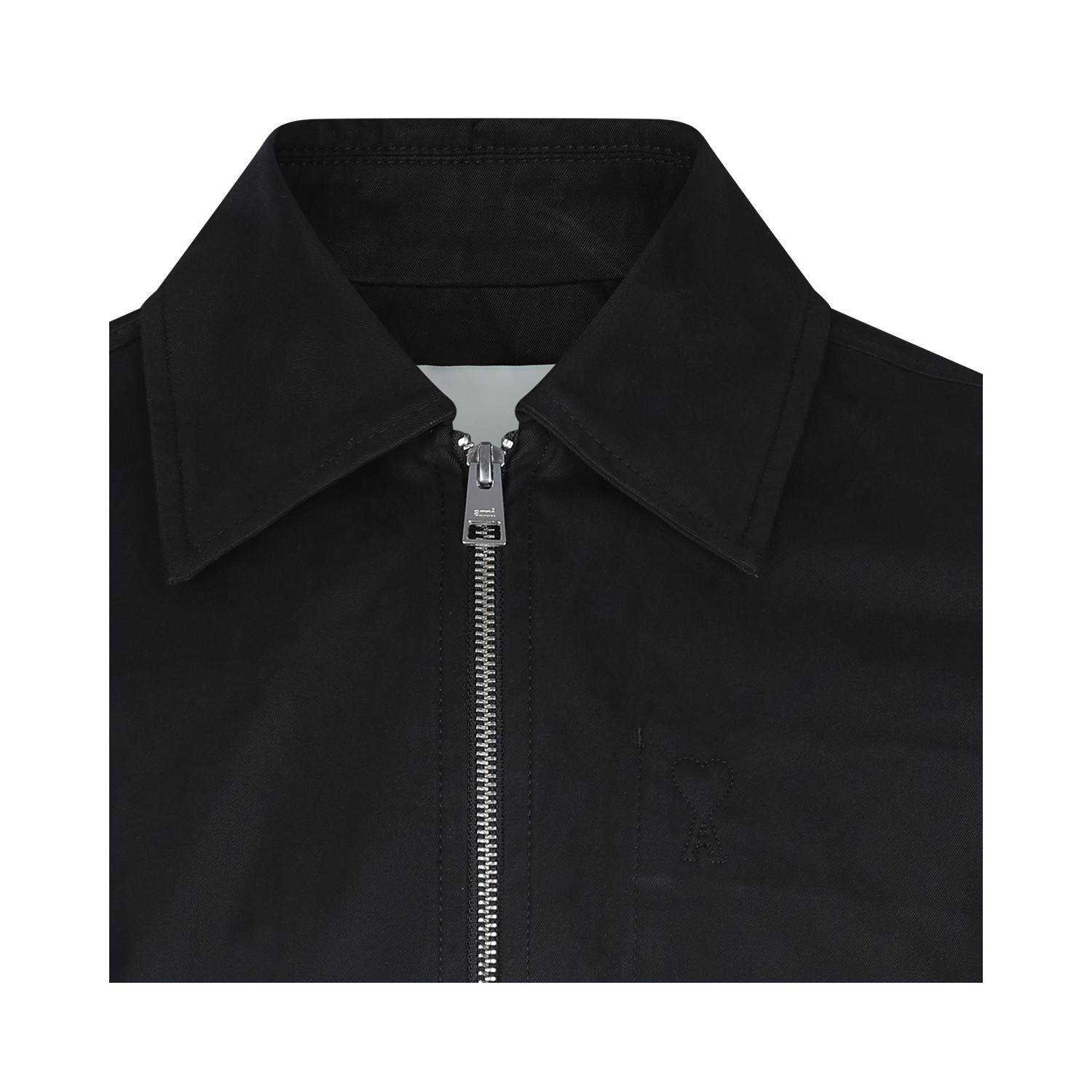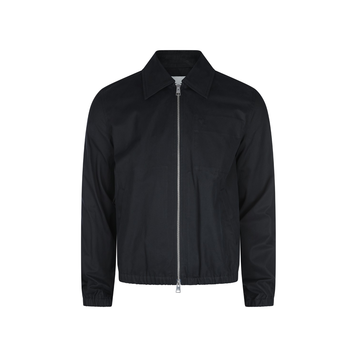 Black cotton casual jacket from Ami Paris featuring classic collar, long sleeves, zip fastening, buttoned pockets and regular vestibility.