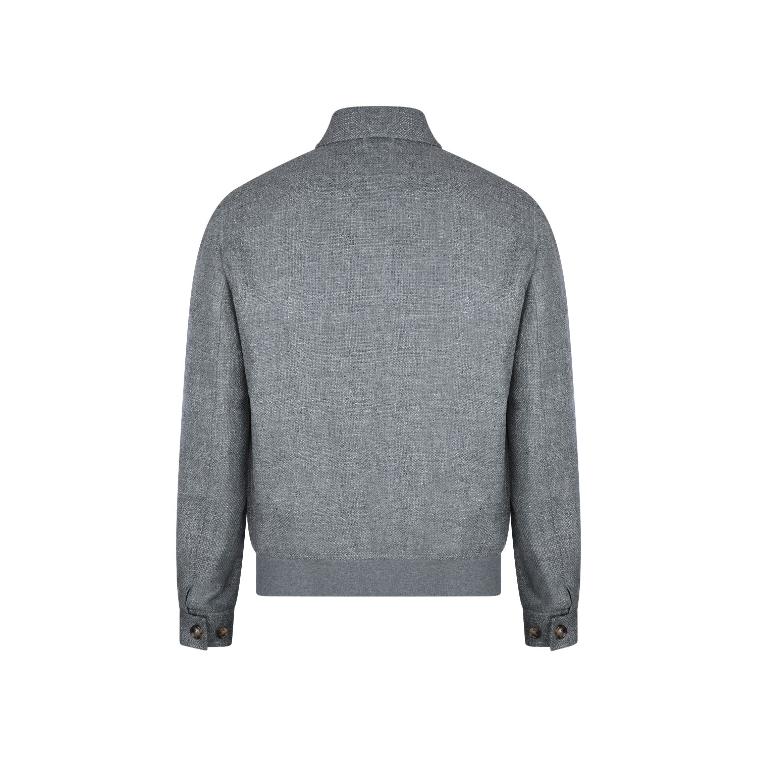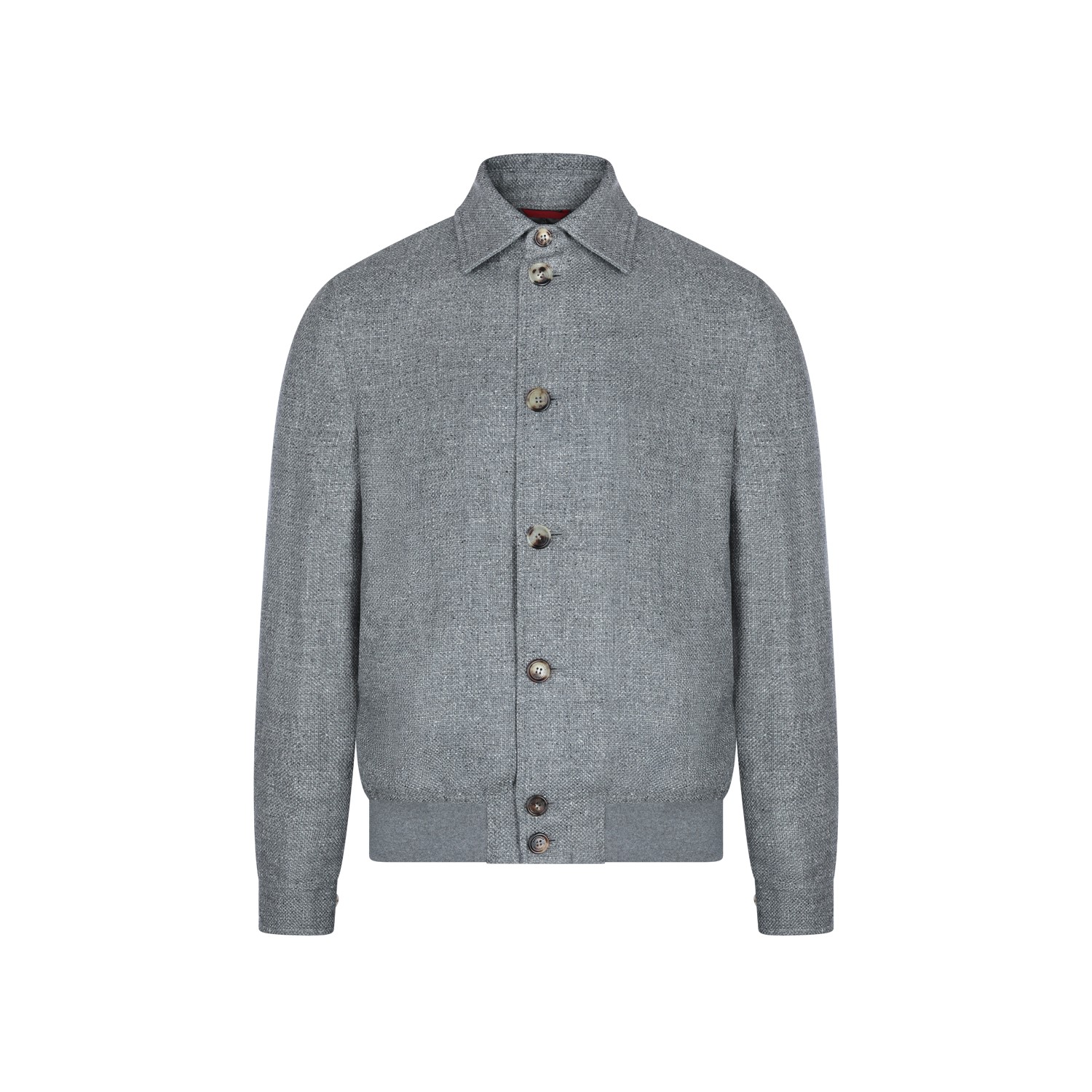 Grey silk linen blend casual jacket from Brunello Cucinelli featuring classic collar, long sleeves, frontal fastening, ribbed hem and regular fit.
