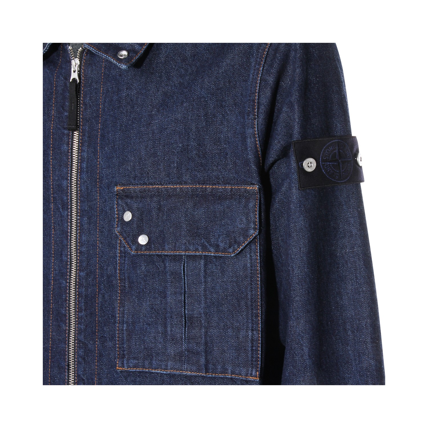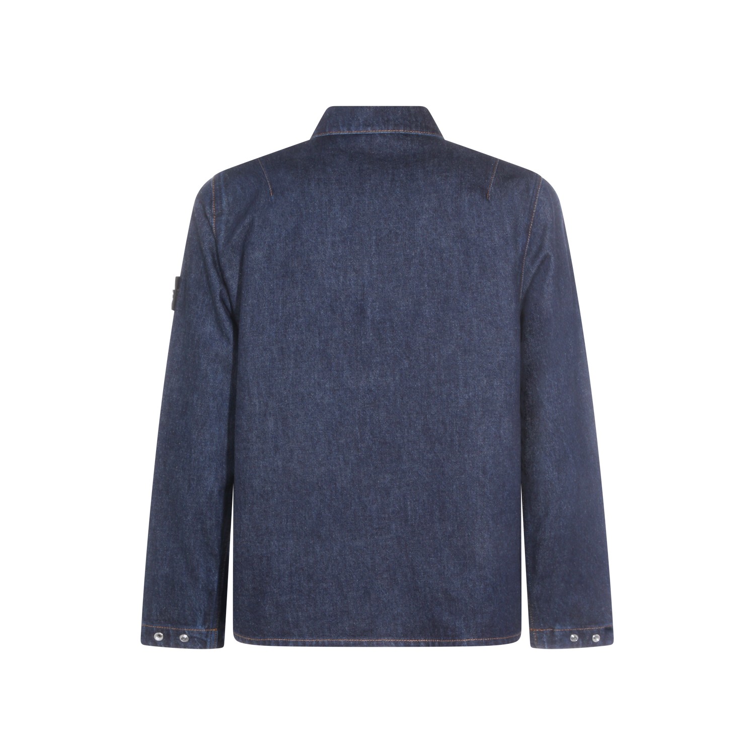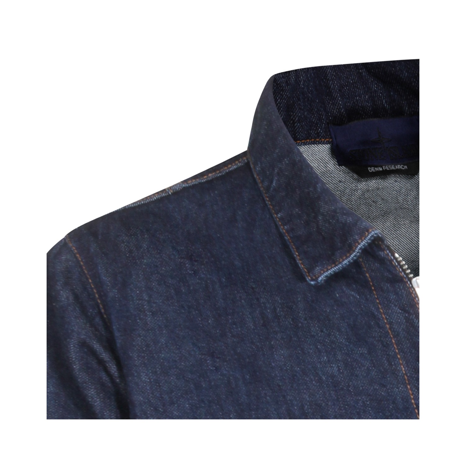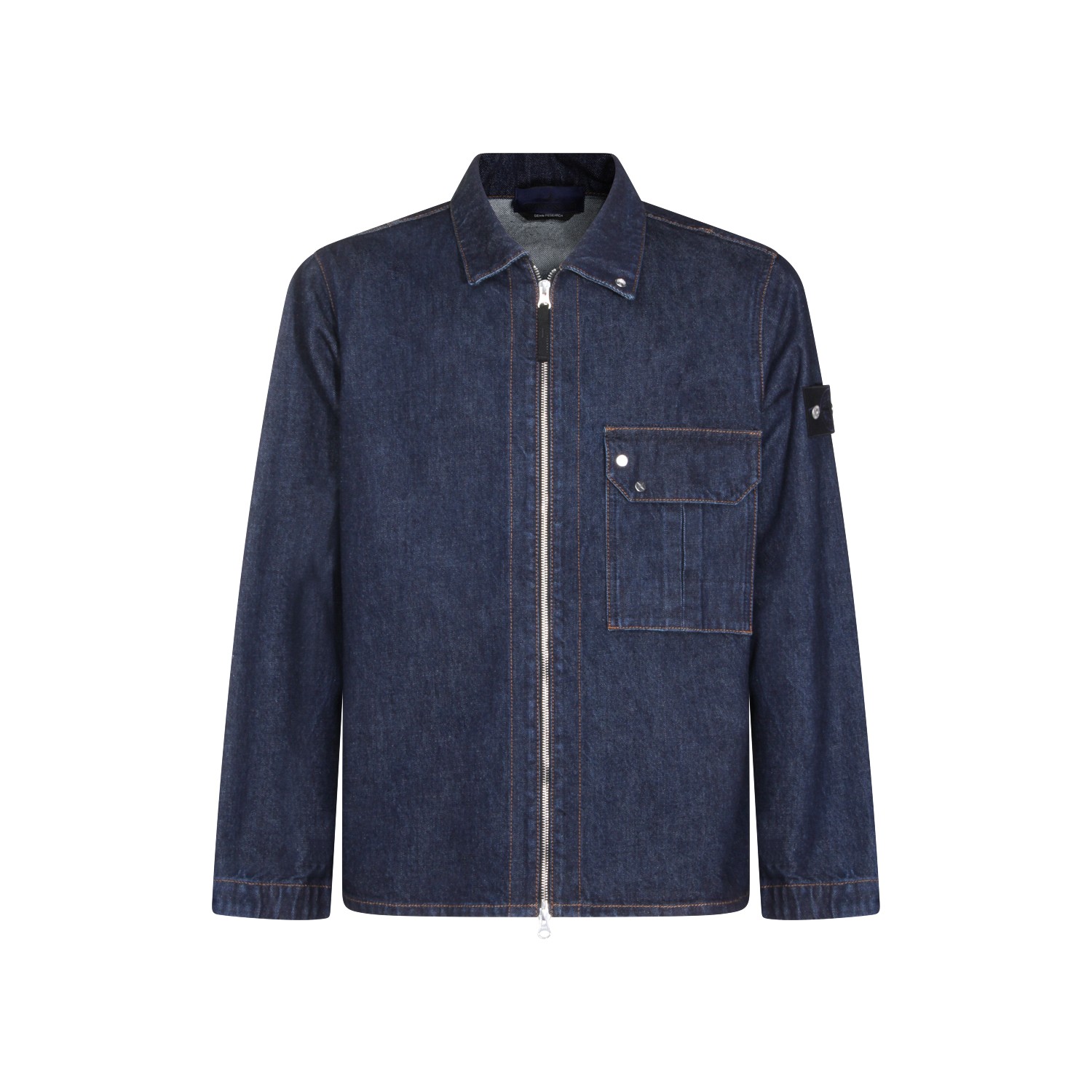 Blue cotton denim jacket from Stone Island featuring classic collar, long sleeves, zip fastening, chest pocket and regular vestibility.