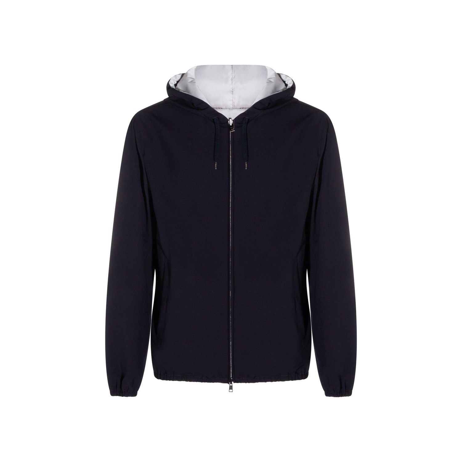 Navy casual jacket from Herno featuring hood, long sleeves, zip fastening and regular fit.