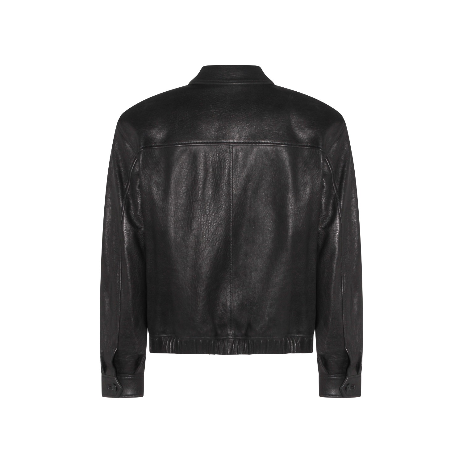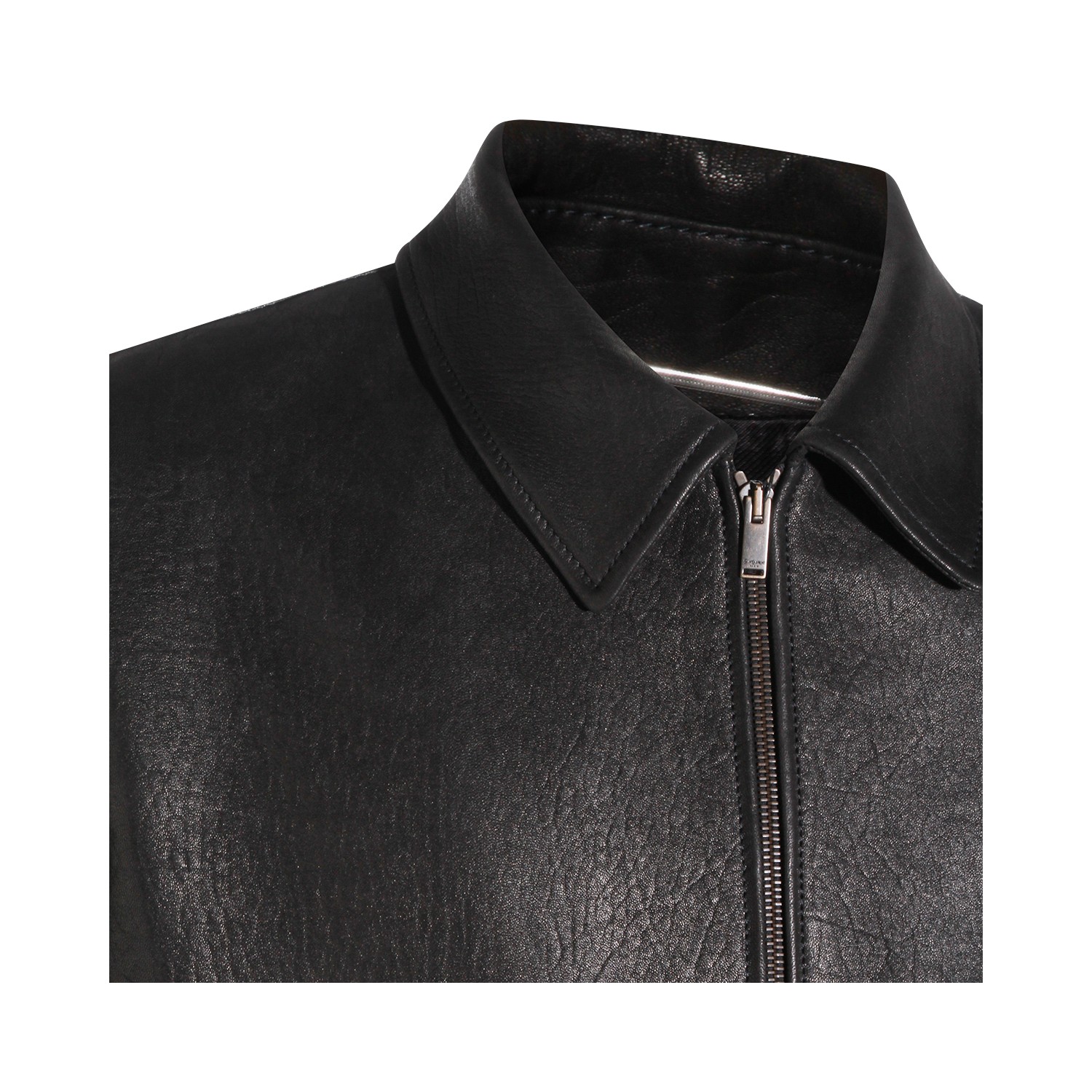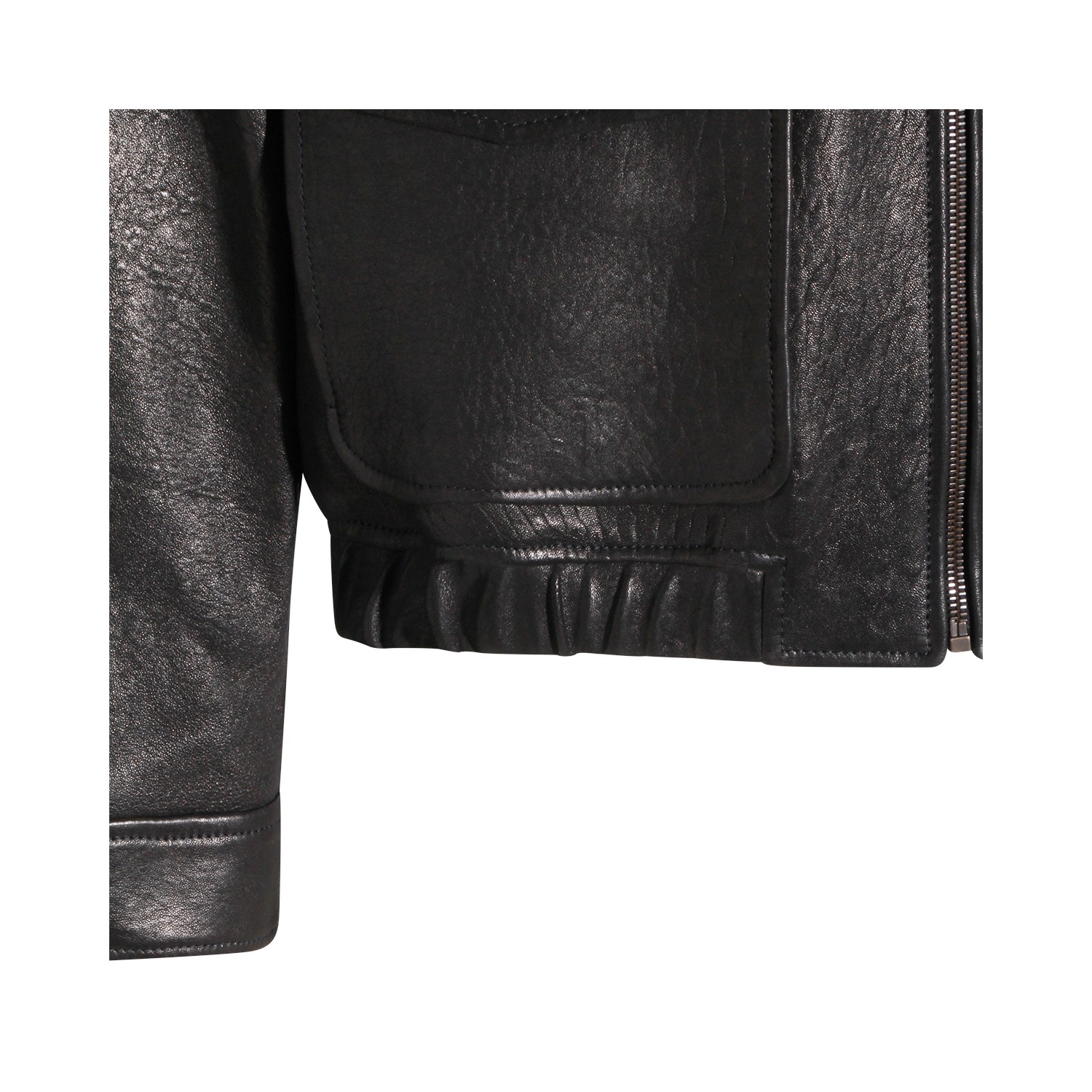 Black leather jacket from Saint Laurent featuring long sleeves, shirt collar, zip fastening, pockets and regular vestibility.