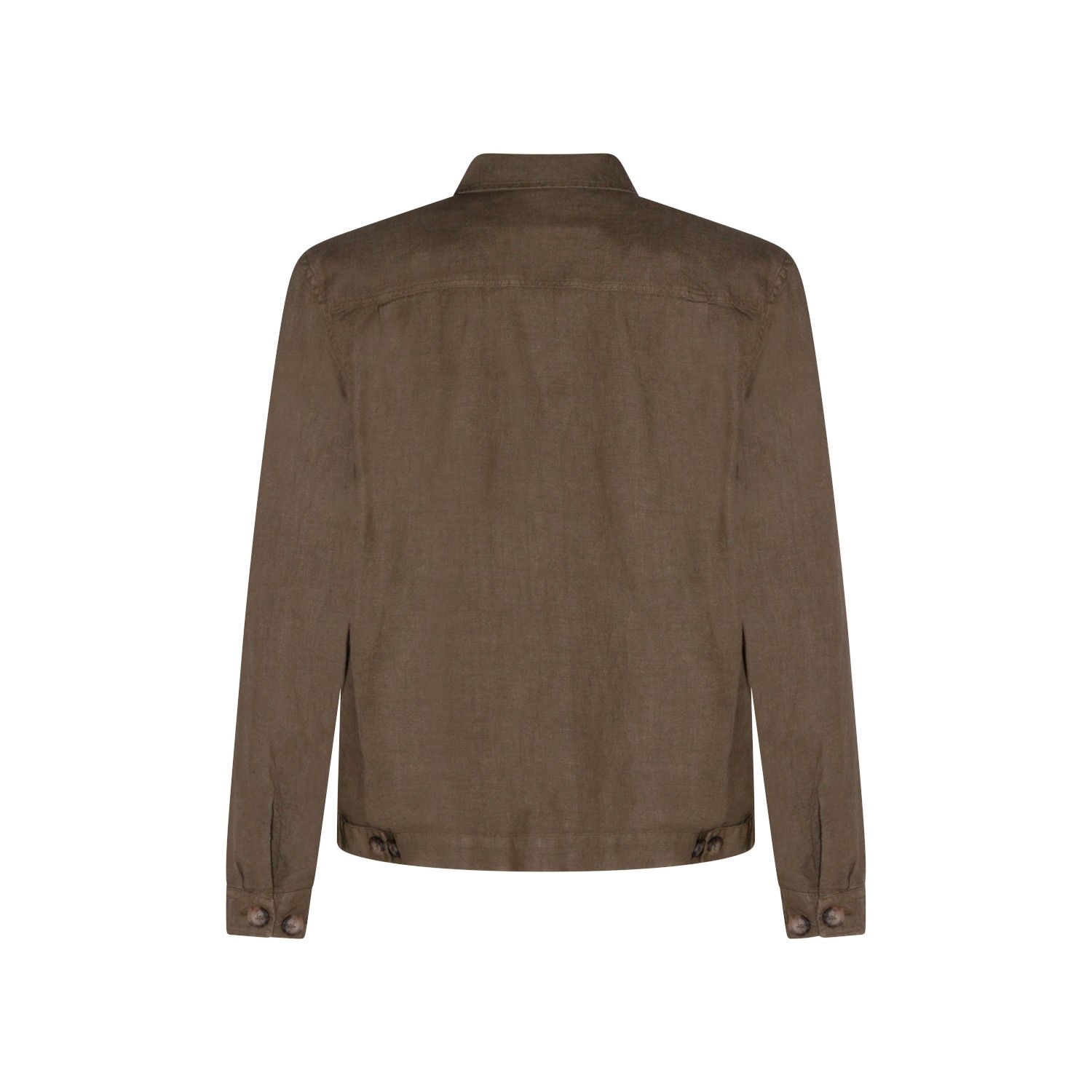 Green linen casual jacket from Altea featuring classic collar, long sleeves, buttons fastening and regular fit.