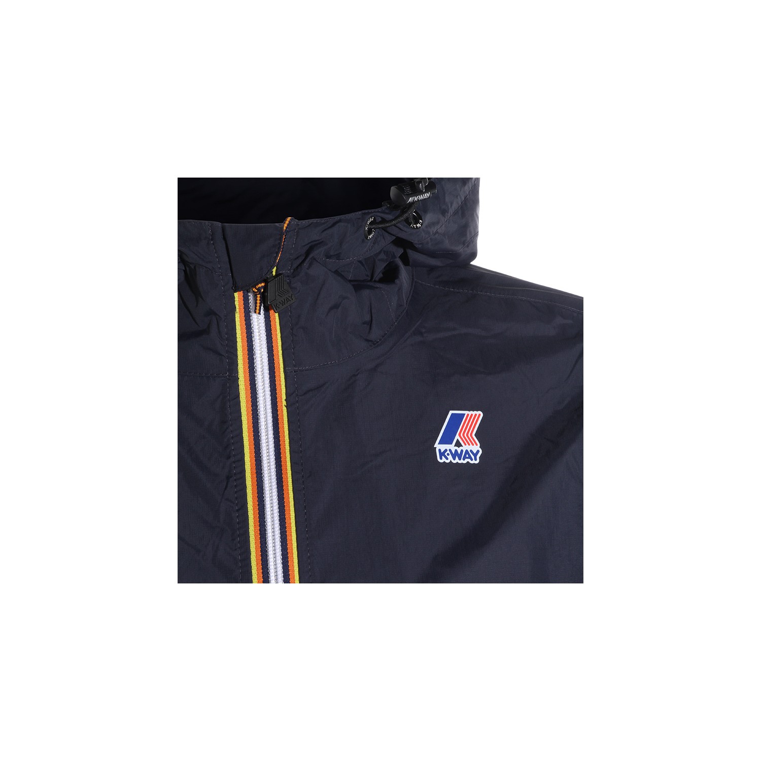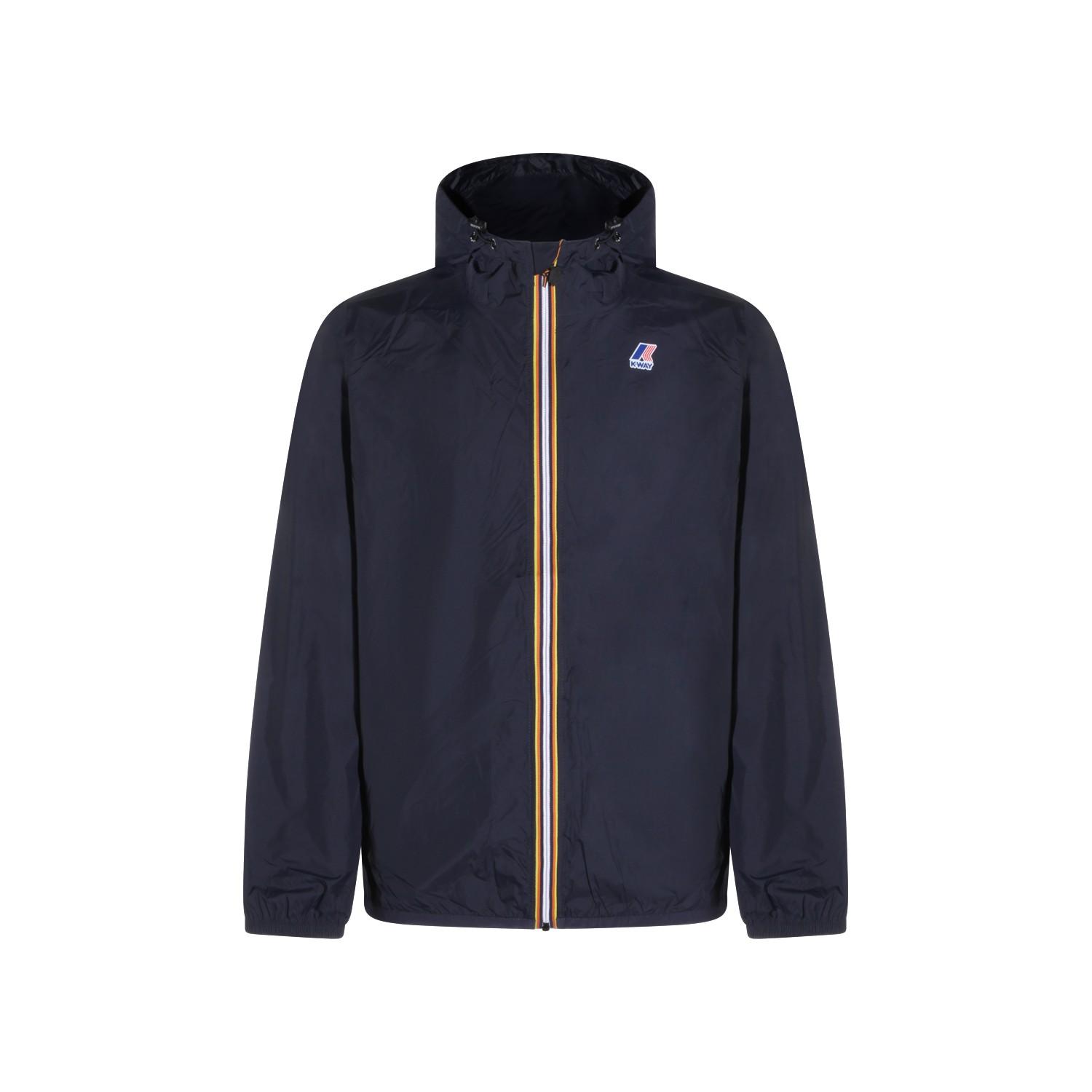 Blue depth Claudia casual jacket from K-Way featuring zip closure, high neck, logo patch at chest and ribbed hems.