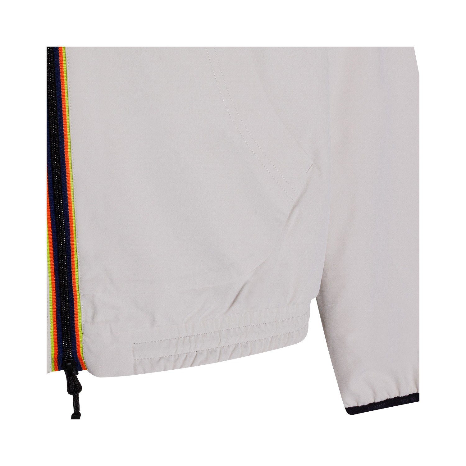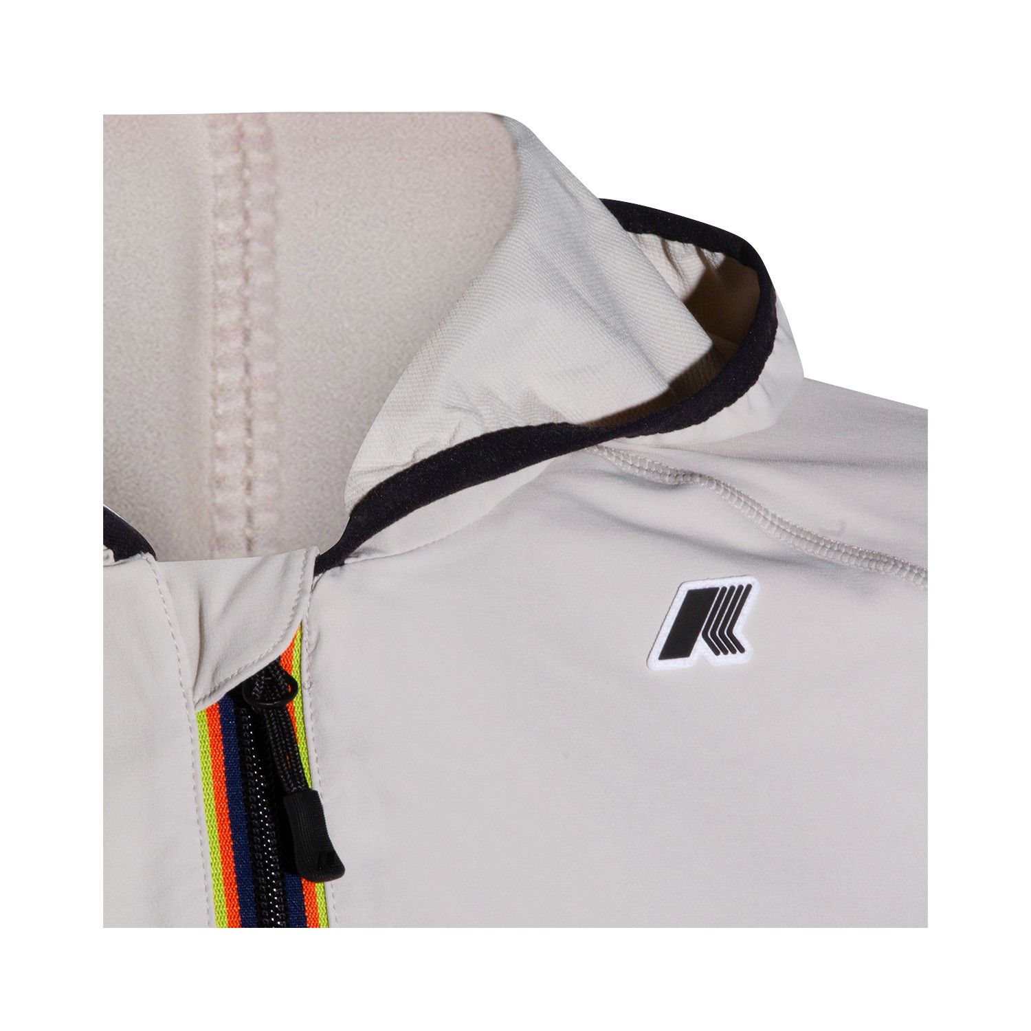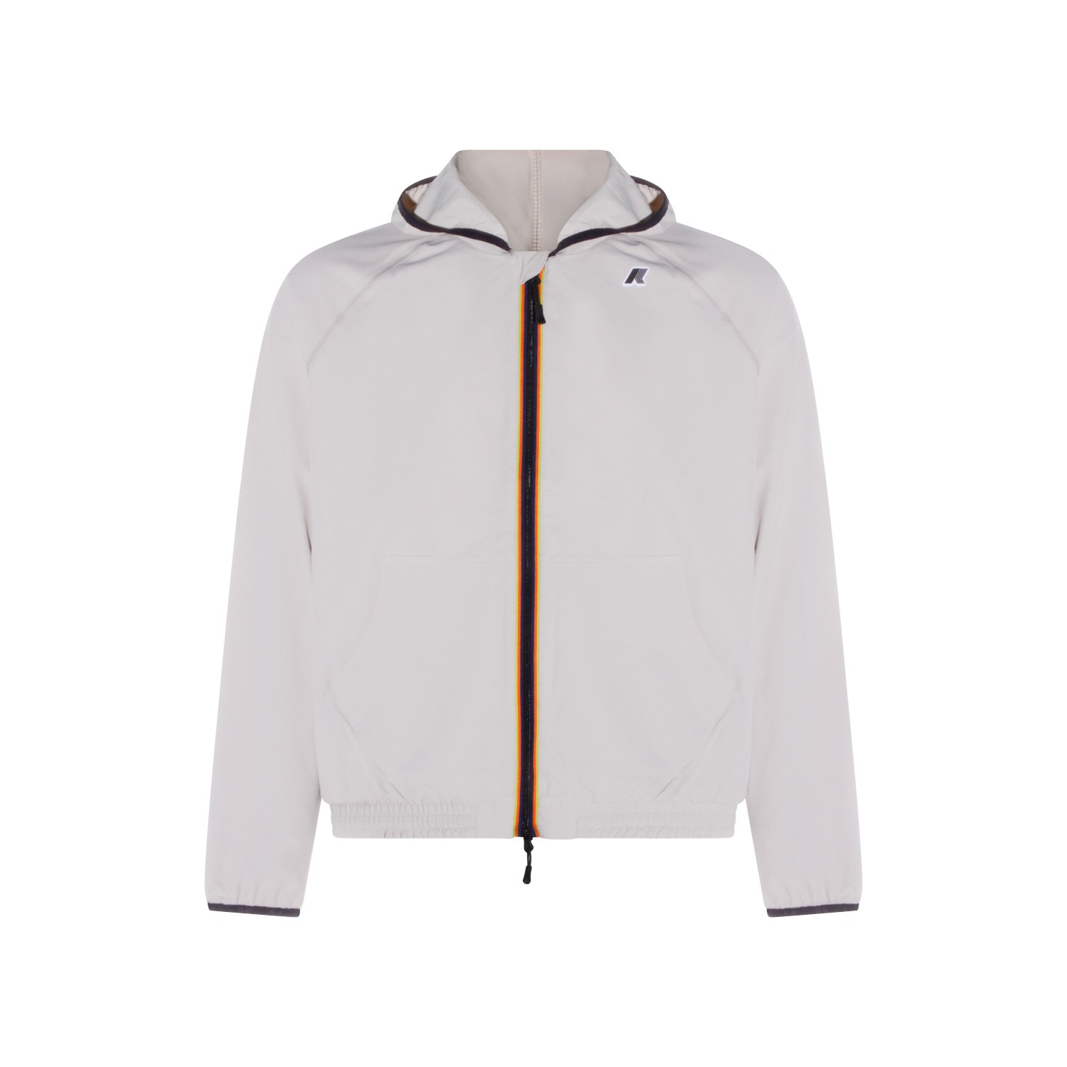 Beige Lt Sia casual jacket from K-Way featuring long sleeves, contrasting zip closure, hoodie, logo patch at chest and side pockets.