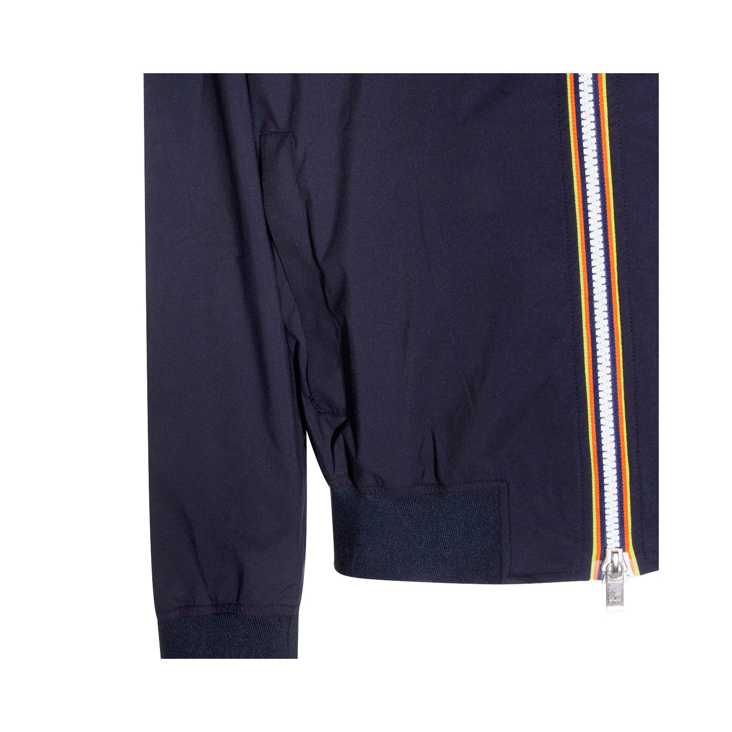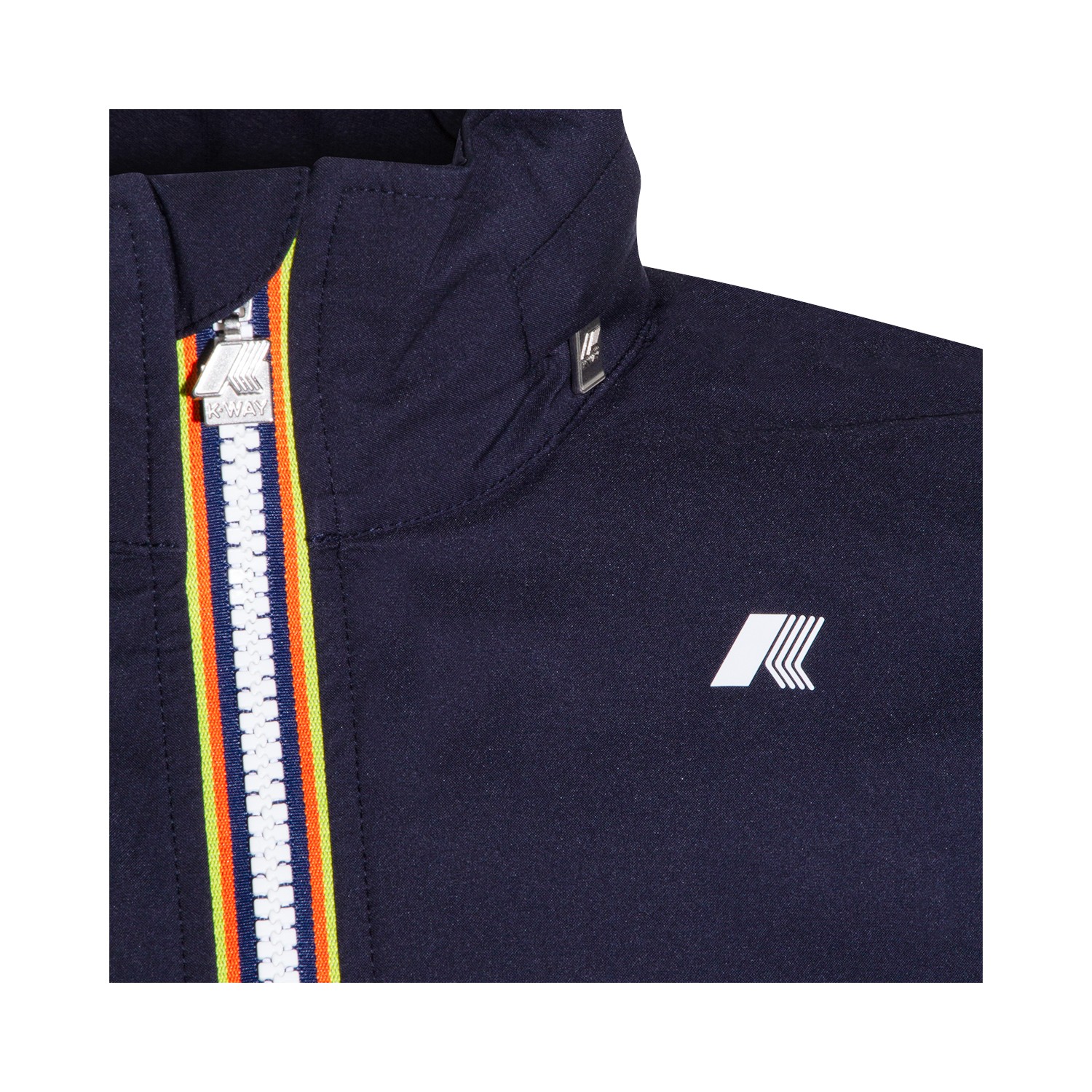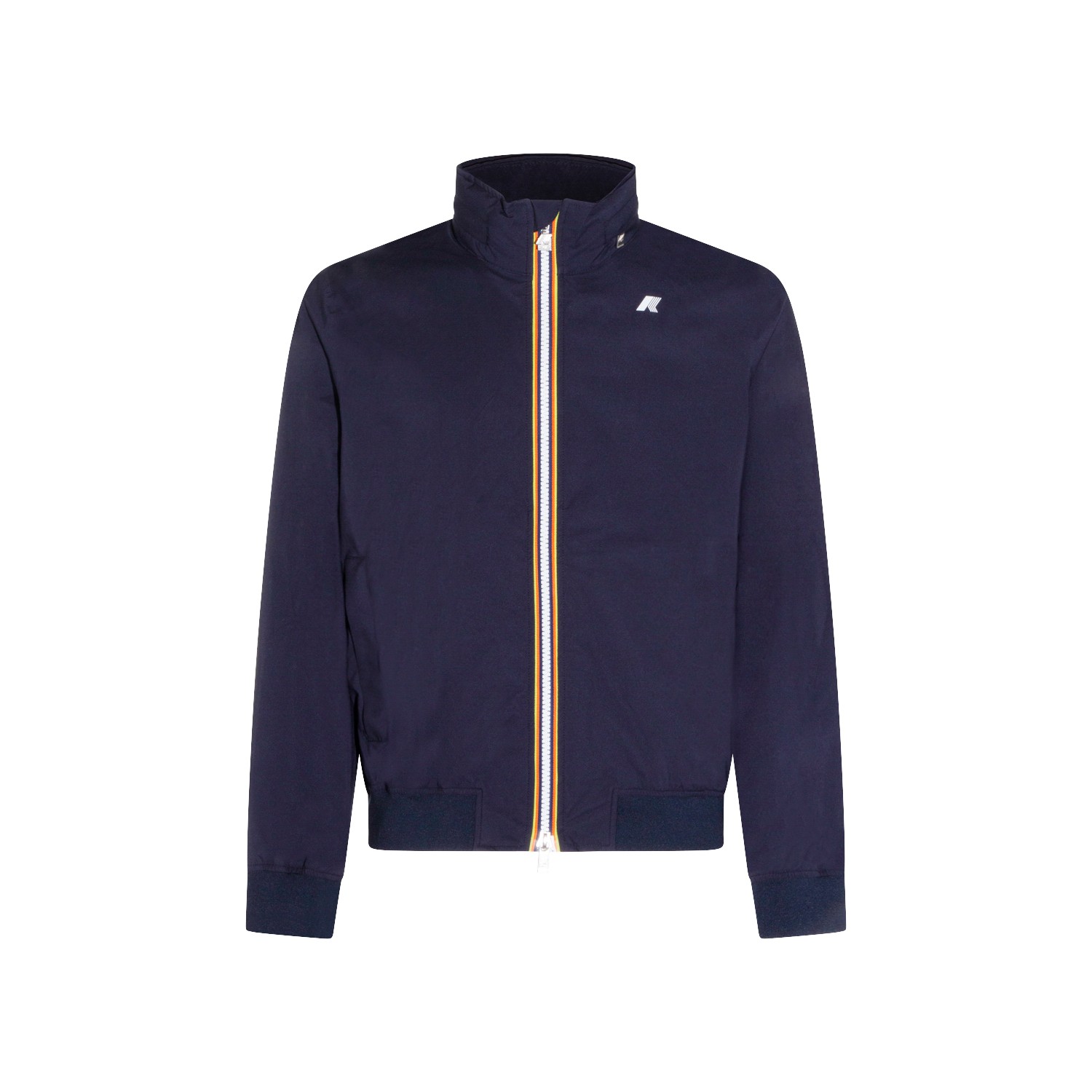 Blue depth Arsene casual jacket from K-Way featuring zip closure, high neck, contrasting zip detail and embroidered logo patch at chest.