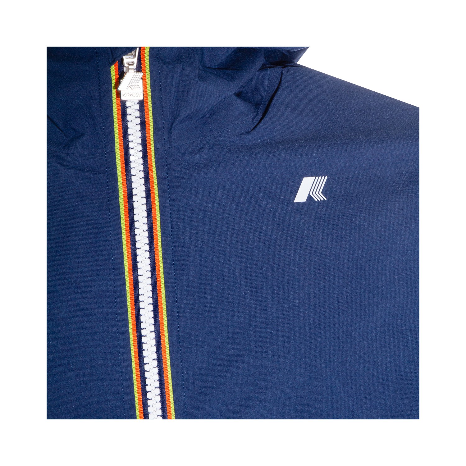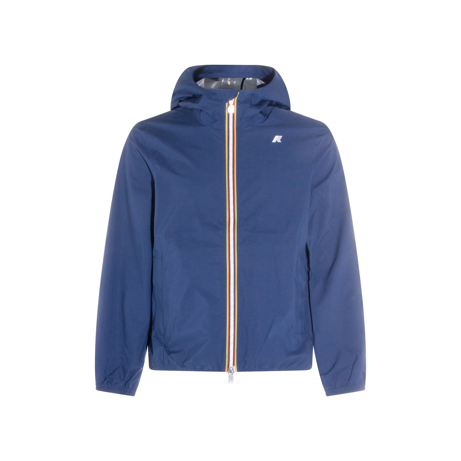 Blue Insignia Jack casual jacket from K-Way featuring long sleeves, hoodie, high neck, contrasting zip closure and logo patch at chest.