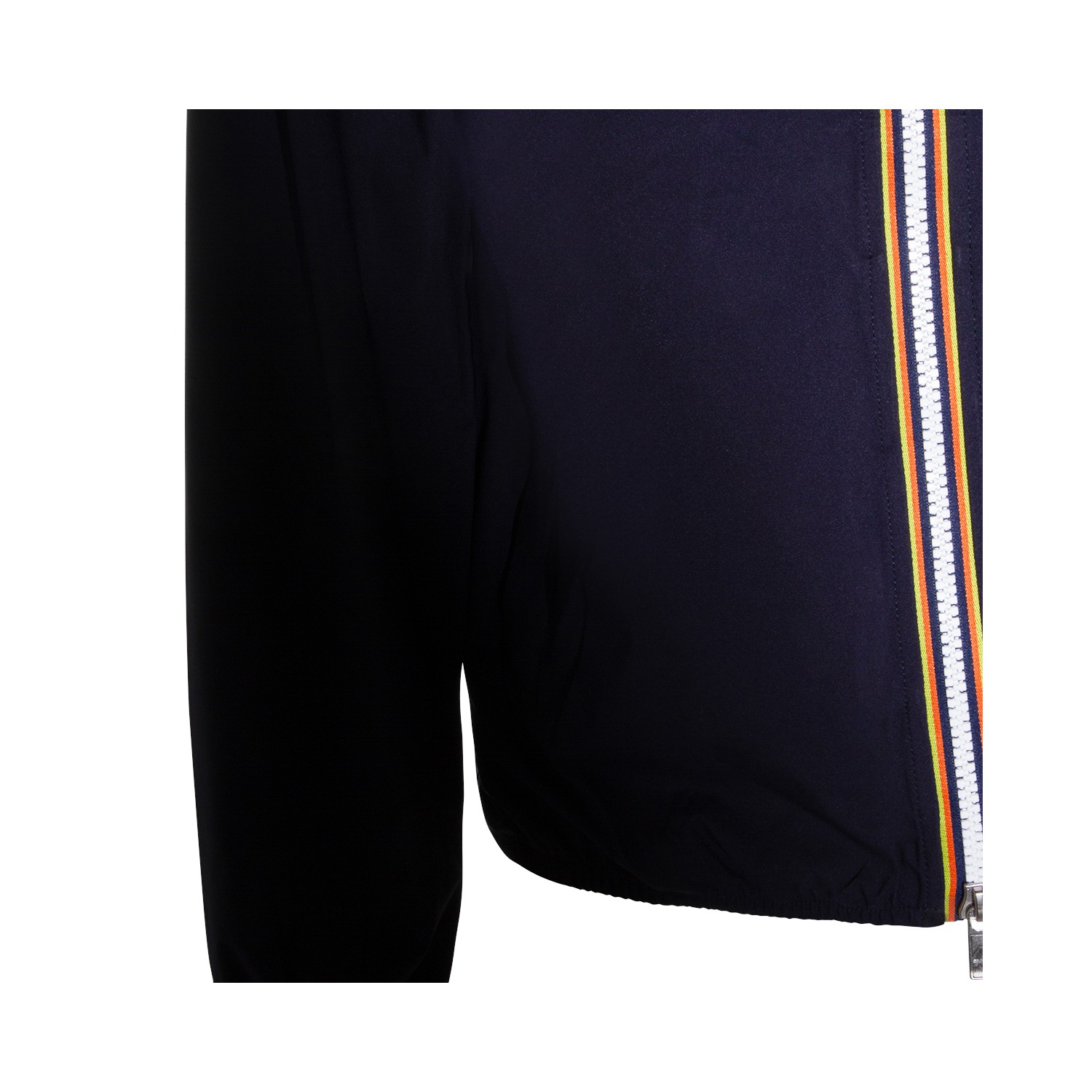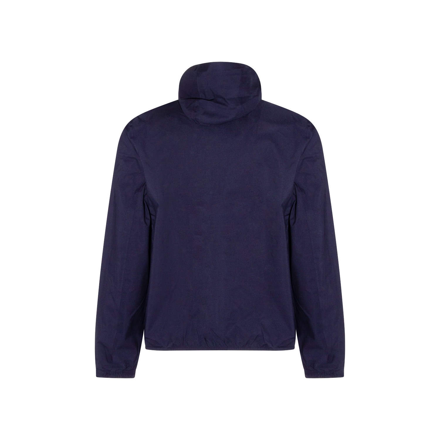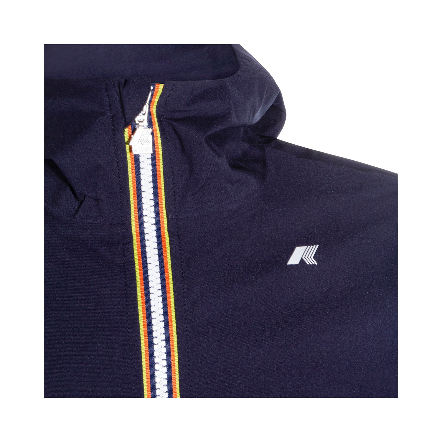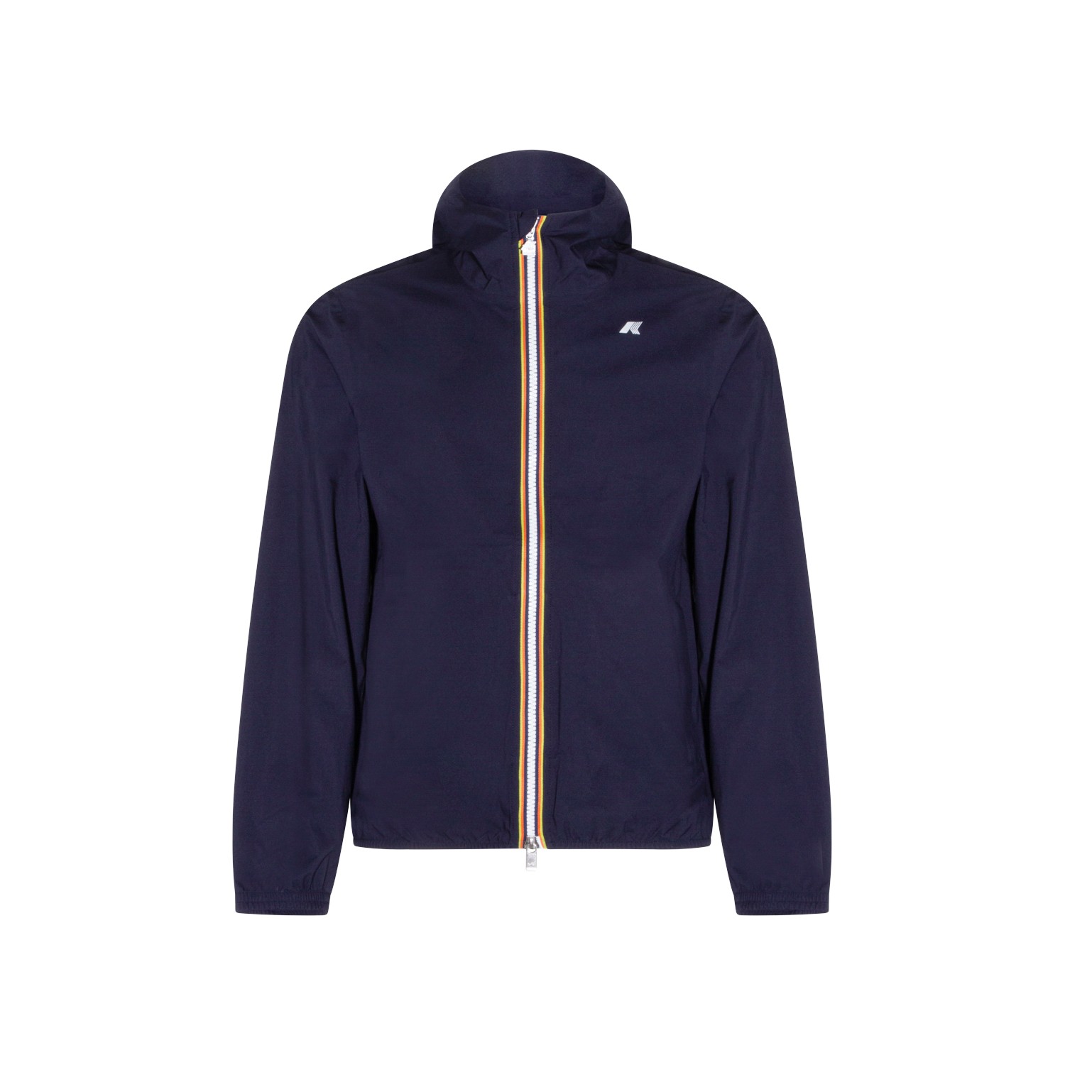 Blue Depth Jack casual jacket from K-Way featuring long sleeves, hoodie, high neck, contrasting zip closure and logo patch at chest.