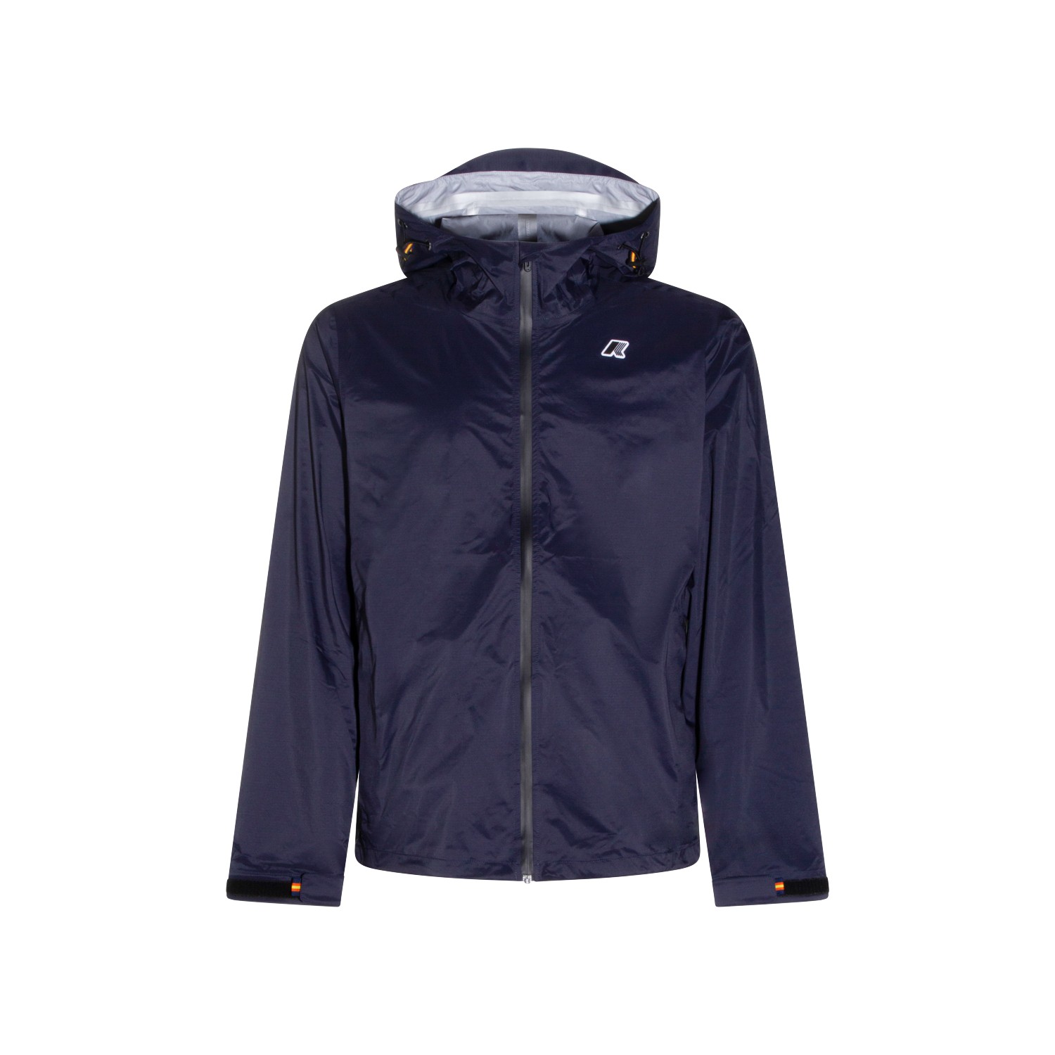 Blue depth Chairman casual jacket from K-Way featuring long sleeves, hoodie, high neck, side pockets and embroidered logo patch at chest.