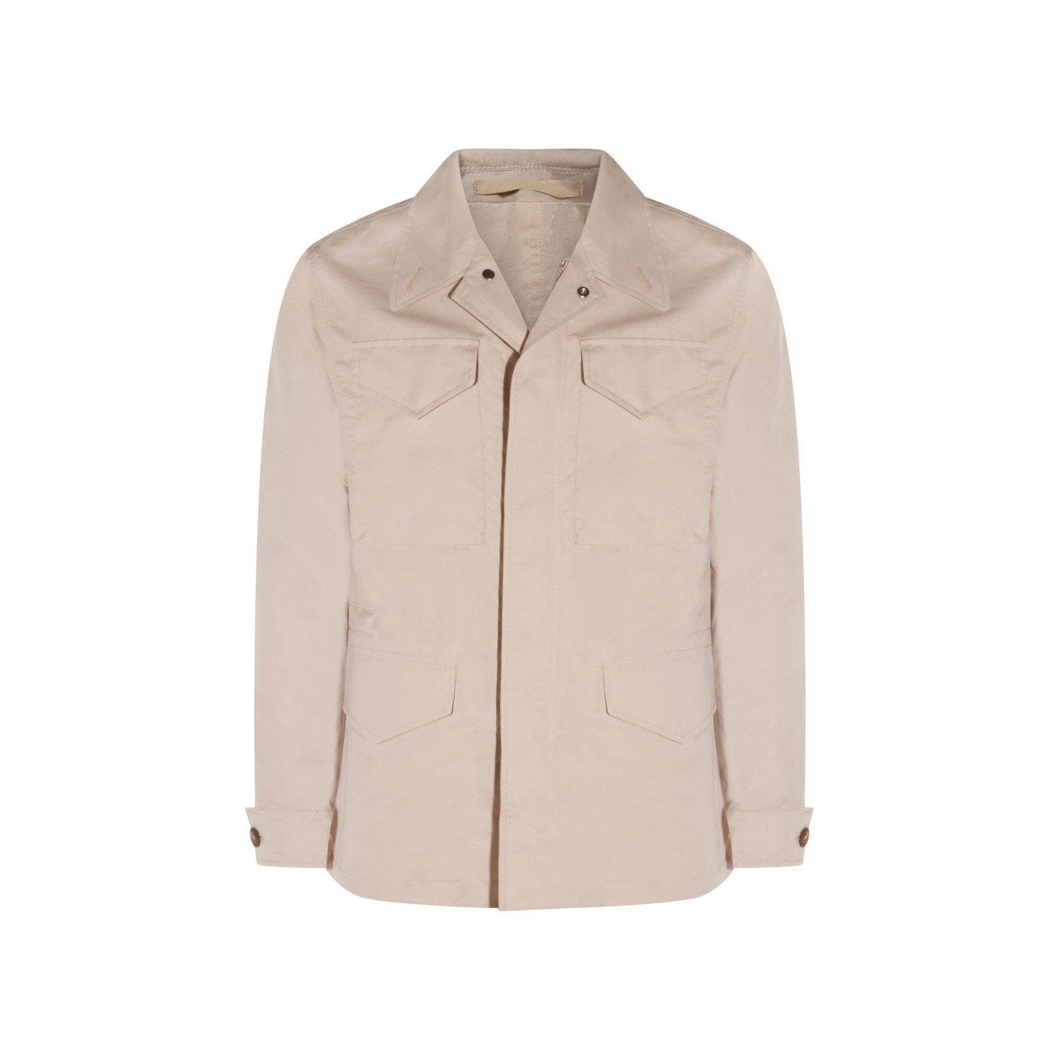 SAND COTTON AND SILK BLEND CASUAL JACKET