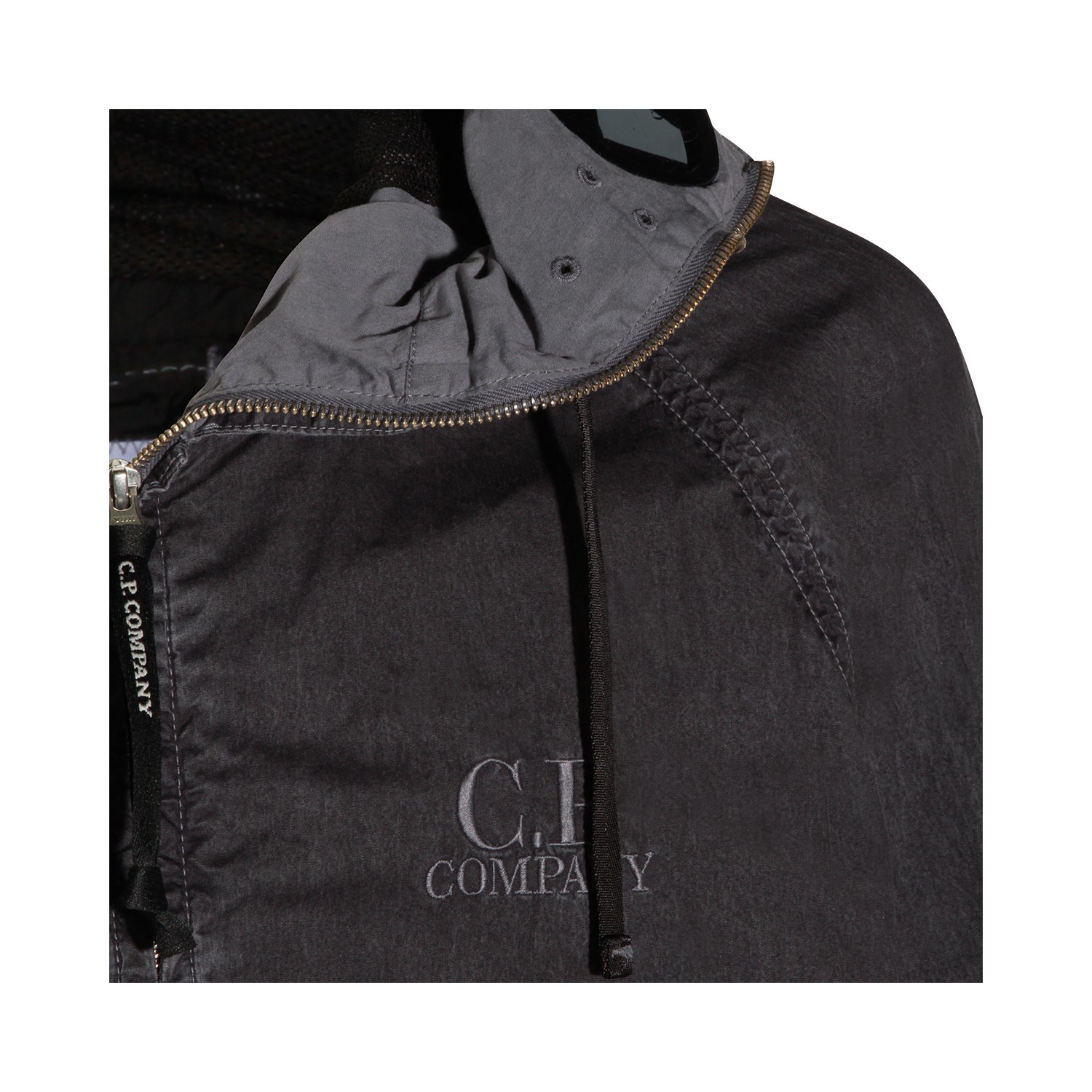 Black cotton casual jacket from CP Company featuring hoodie, long sleeves, button closure fastening, front pockets and regular fit.